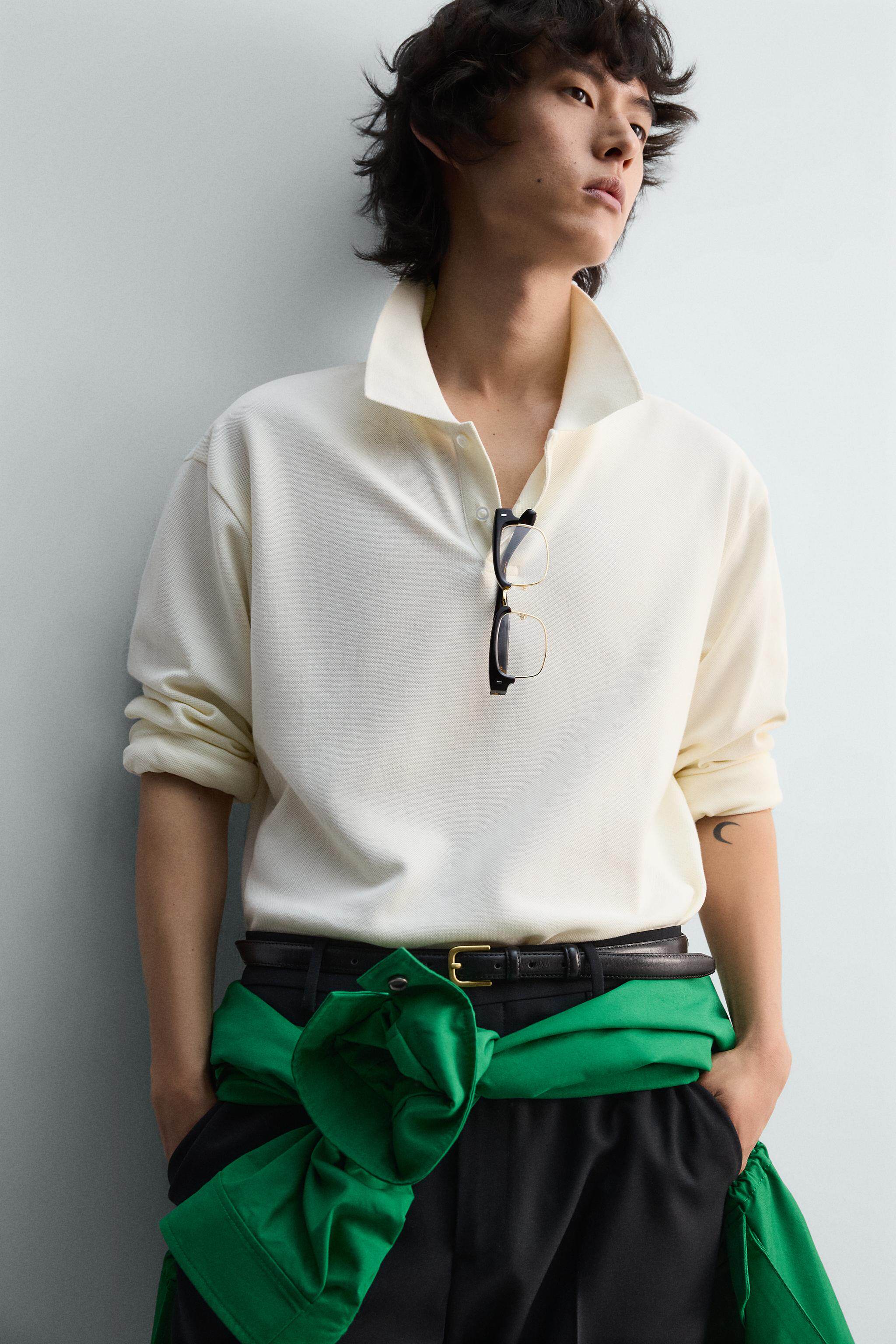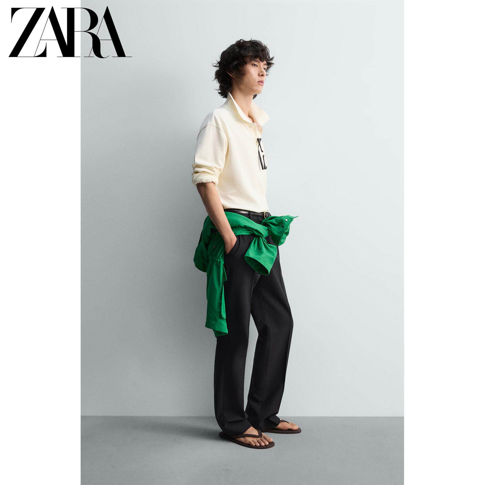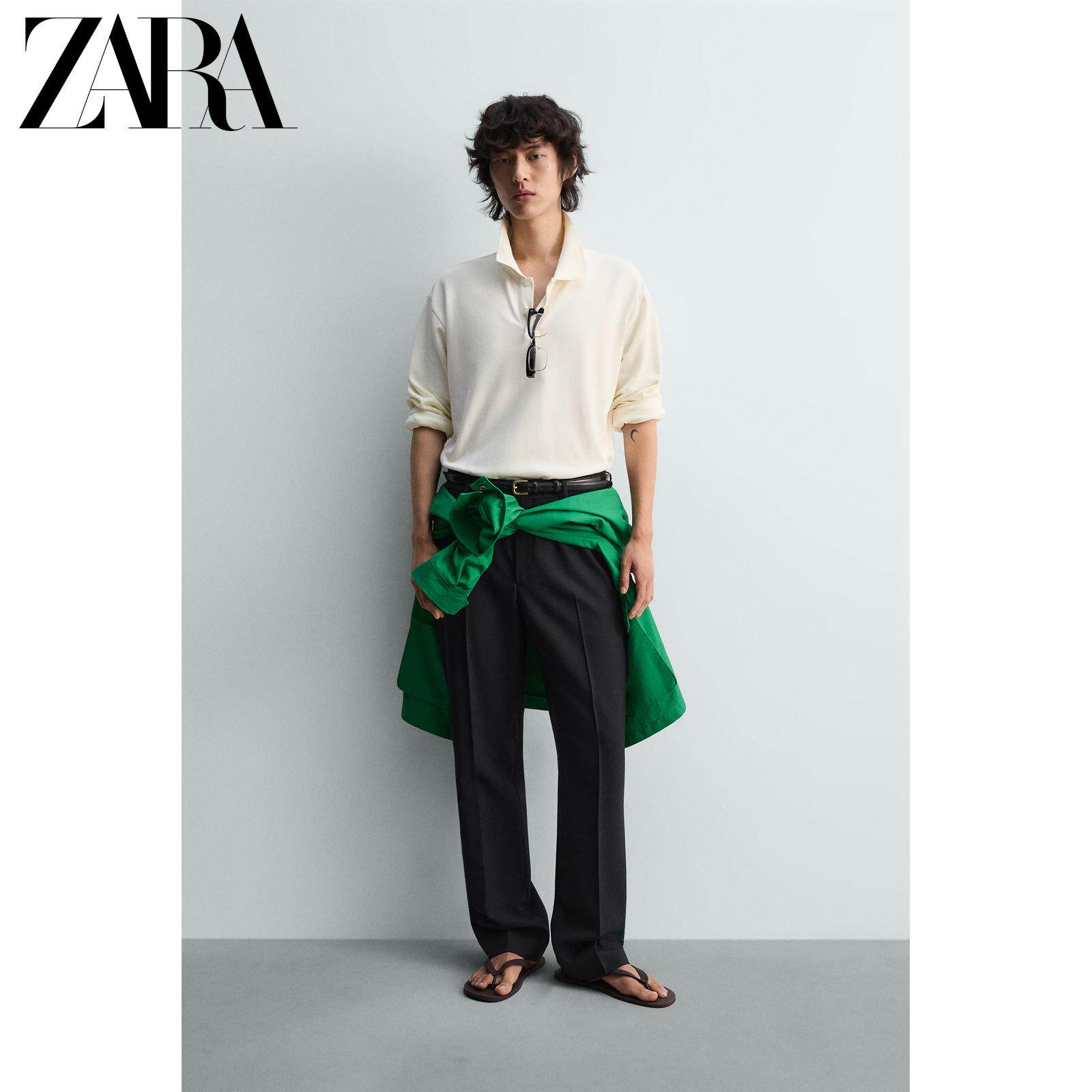 ZARA Новое поступление весны и лета 2026, мужская приталенная рубашка-поло прямого кроя с пике 4087404 251