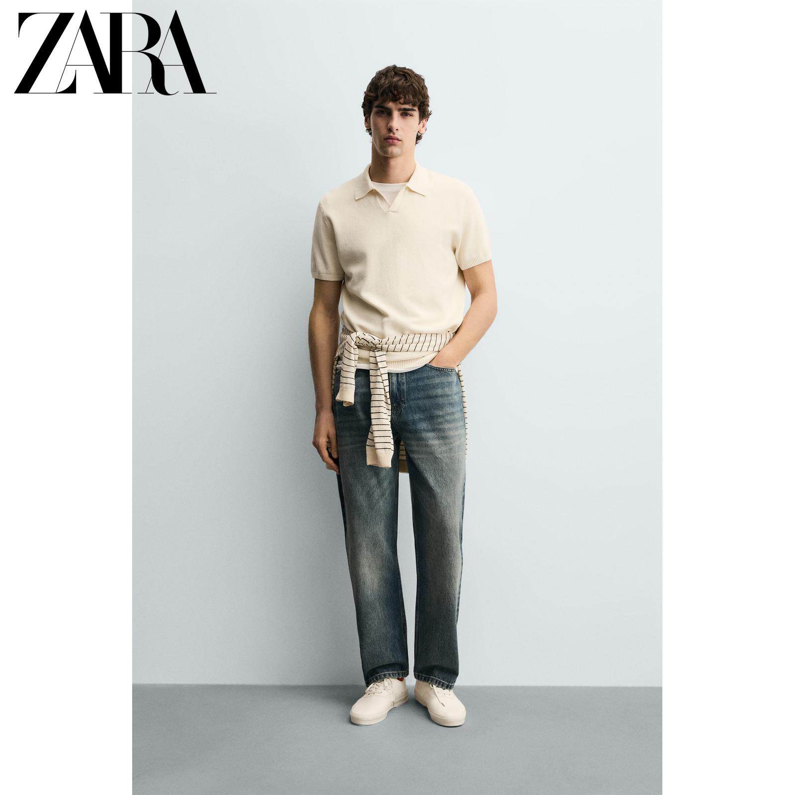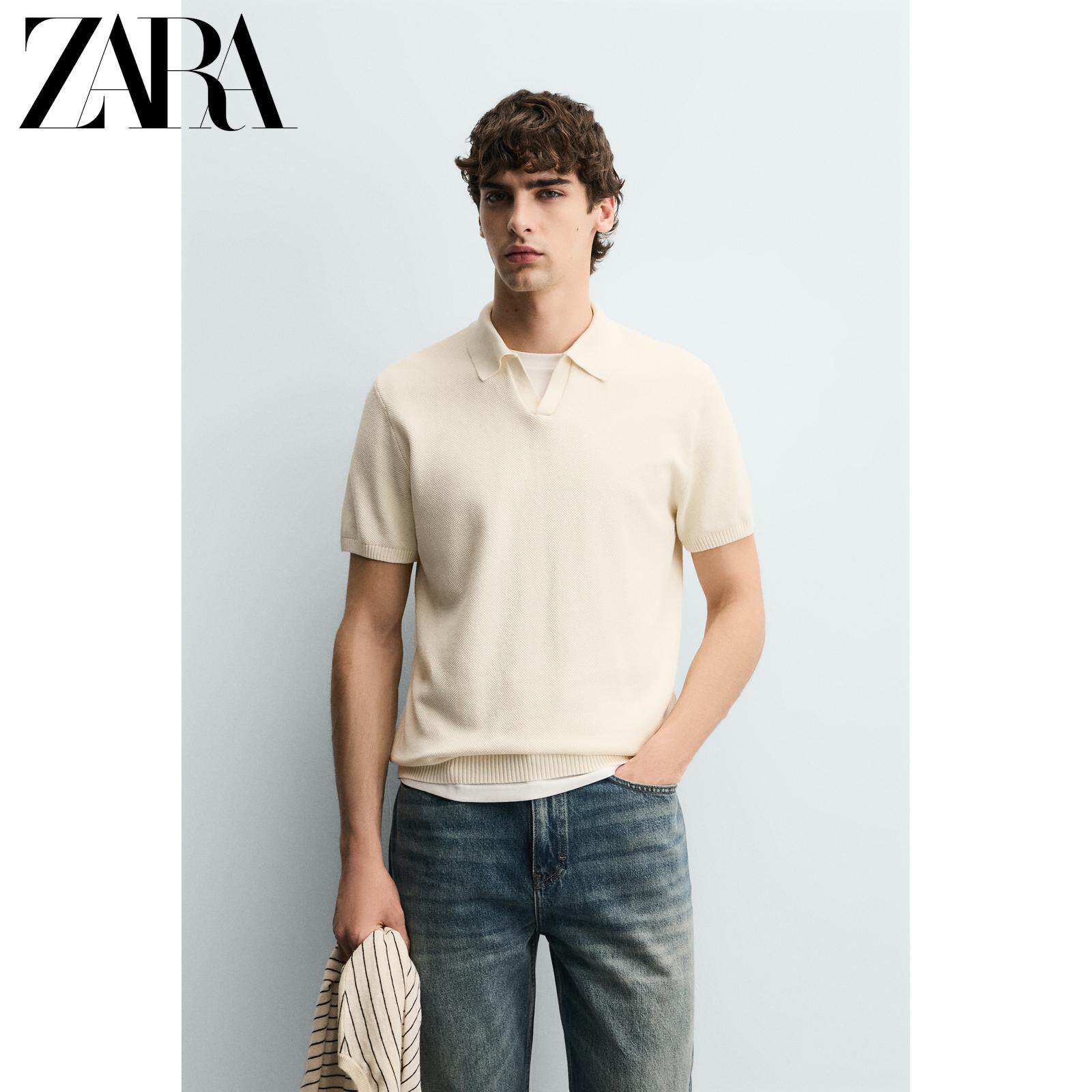 ZARA Новое поступление весны и лета 2026, мужская хлопковая тонкая прямая текстурированная трикотажная рубашка-поло 3332410 251