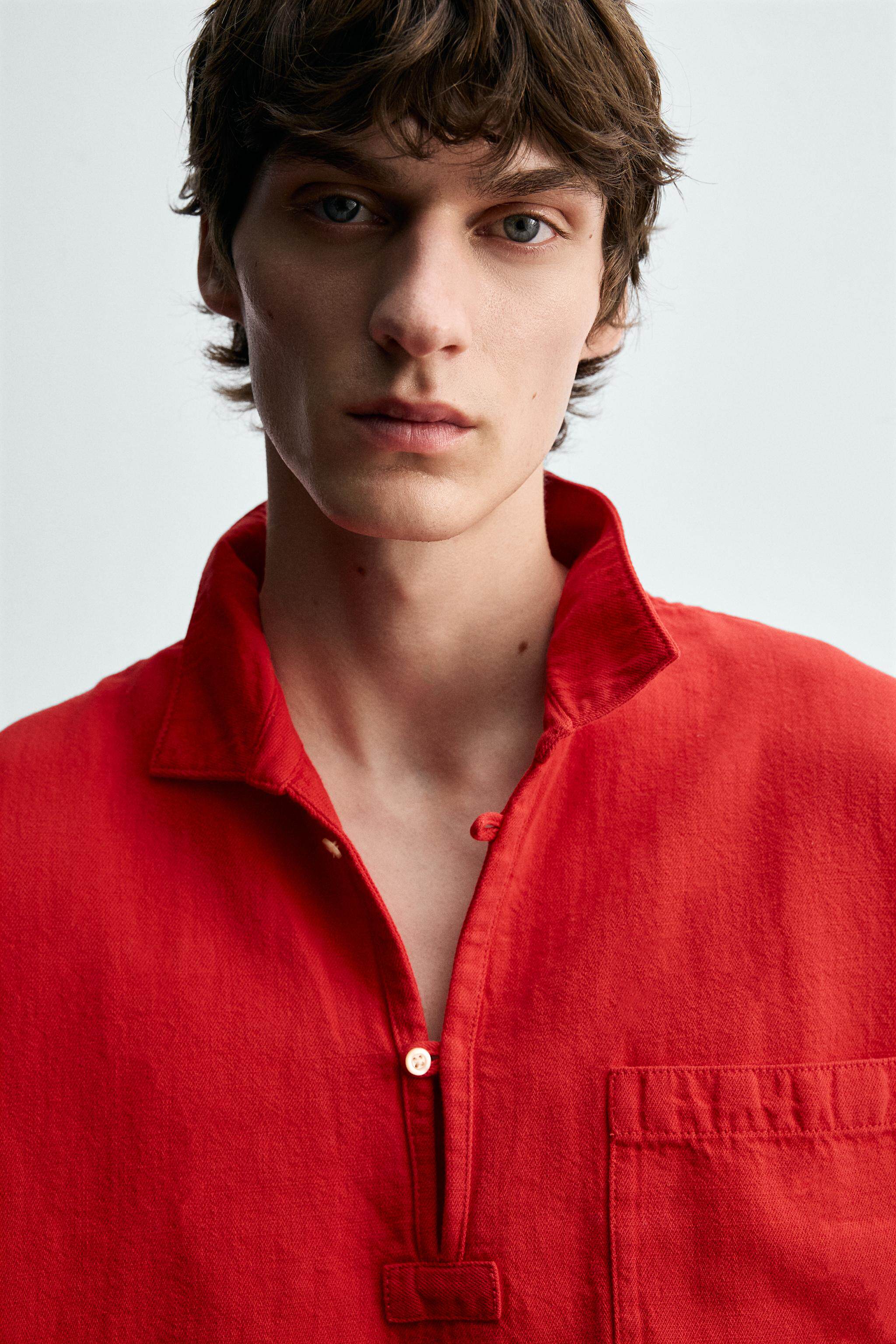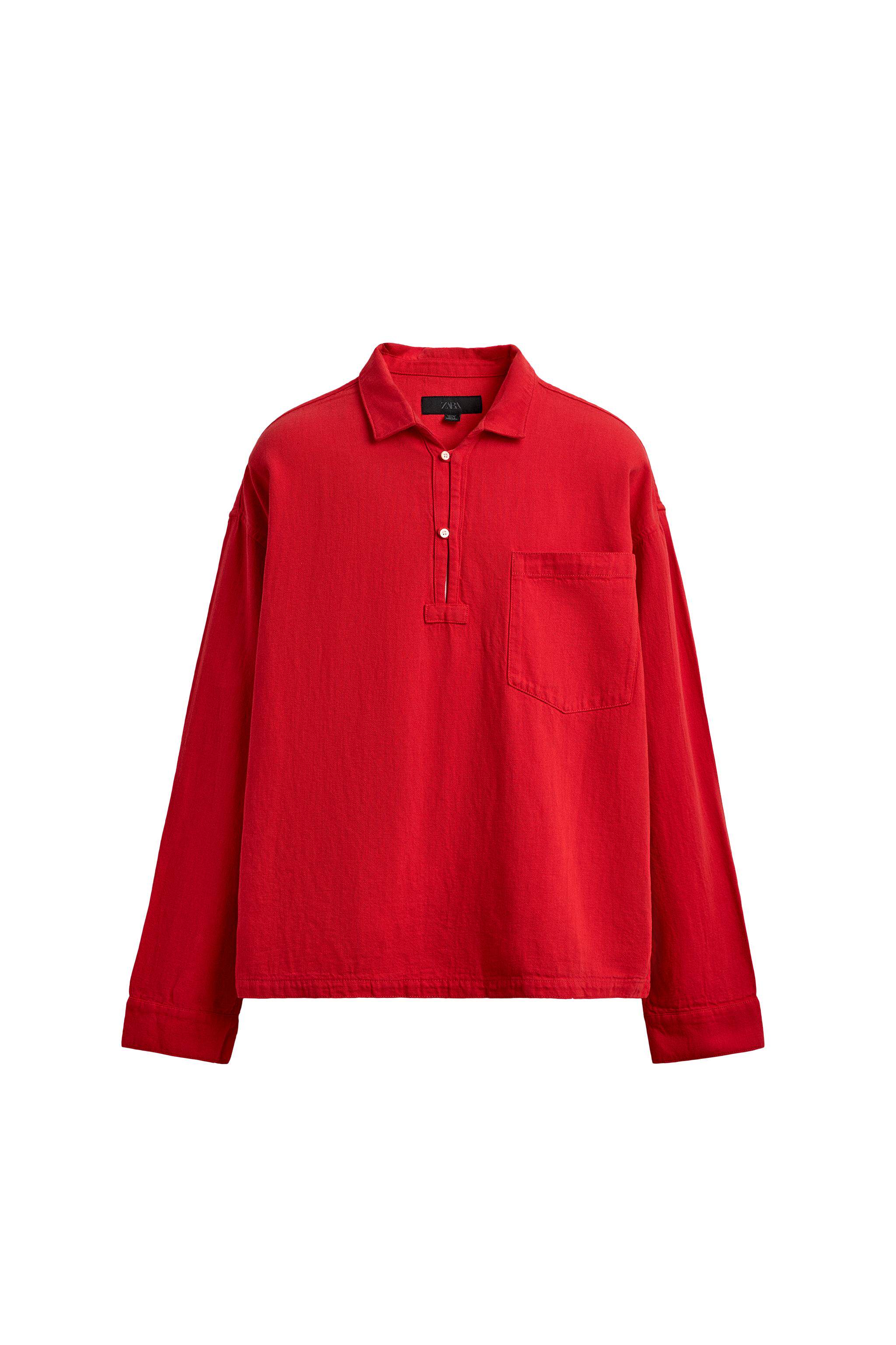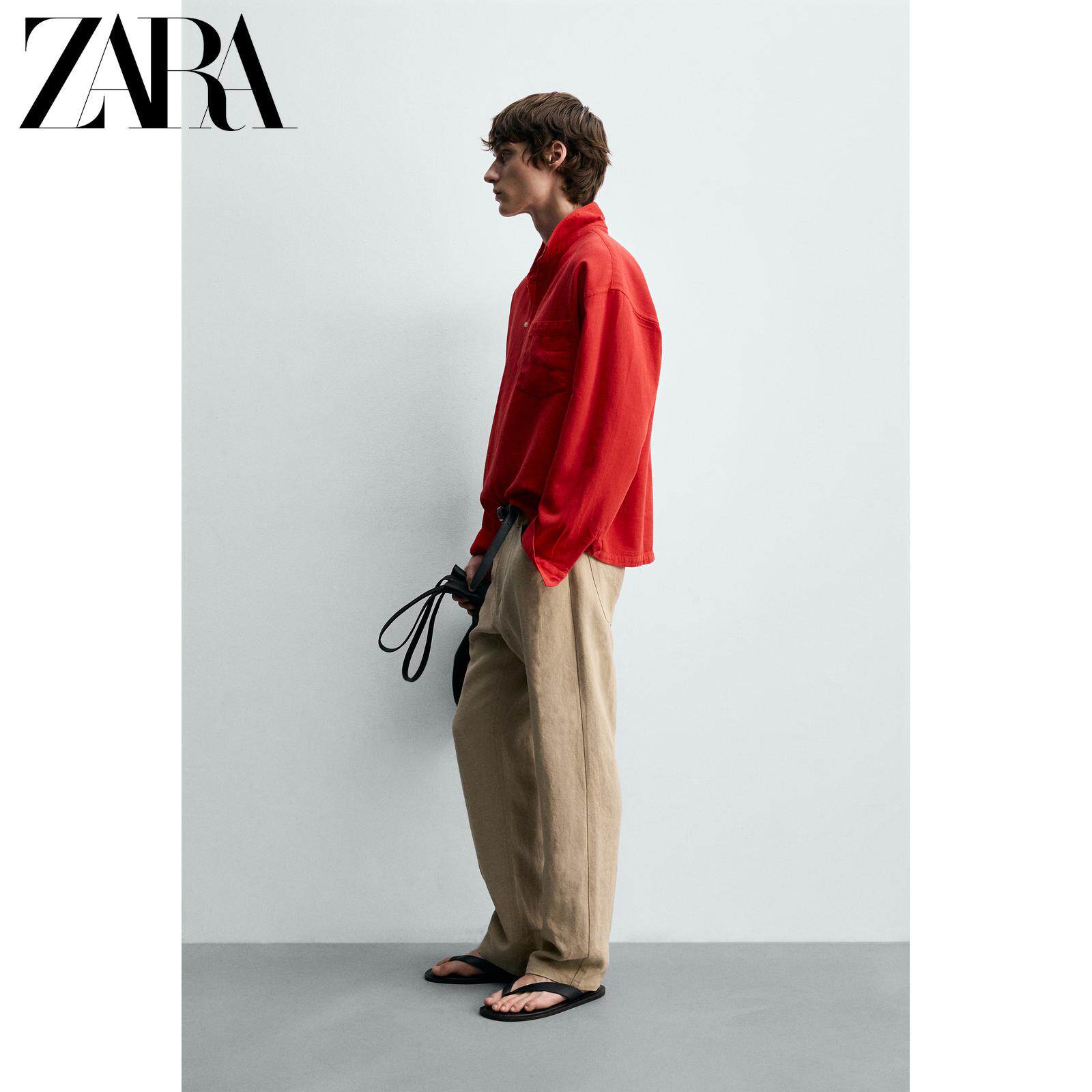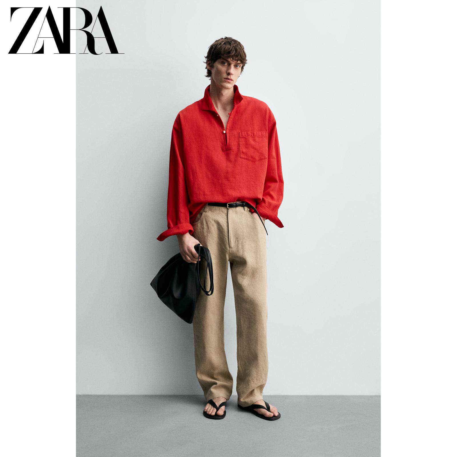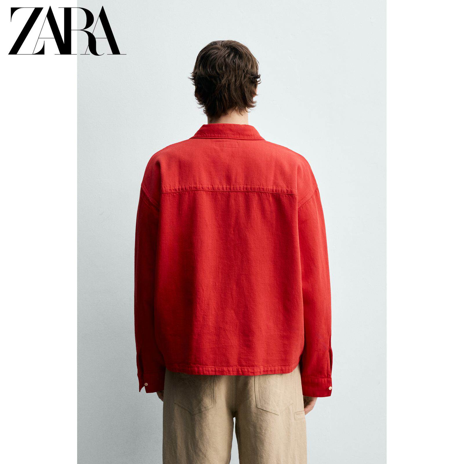 ZARA Новинки весны и лета 2026, мужская одежда из смеси хлопка и льна, свободная рубашка ПОЛО с длинными рукавами с лацканами 1820430 600