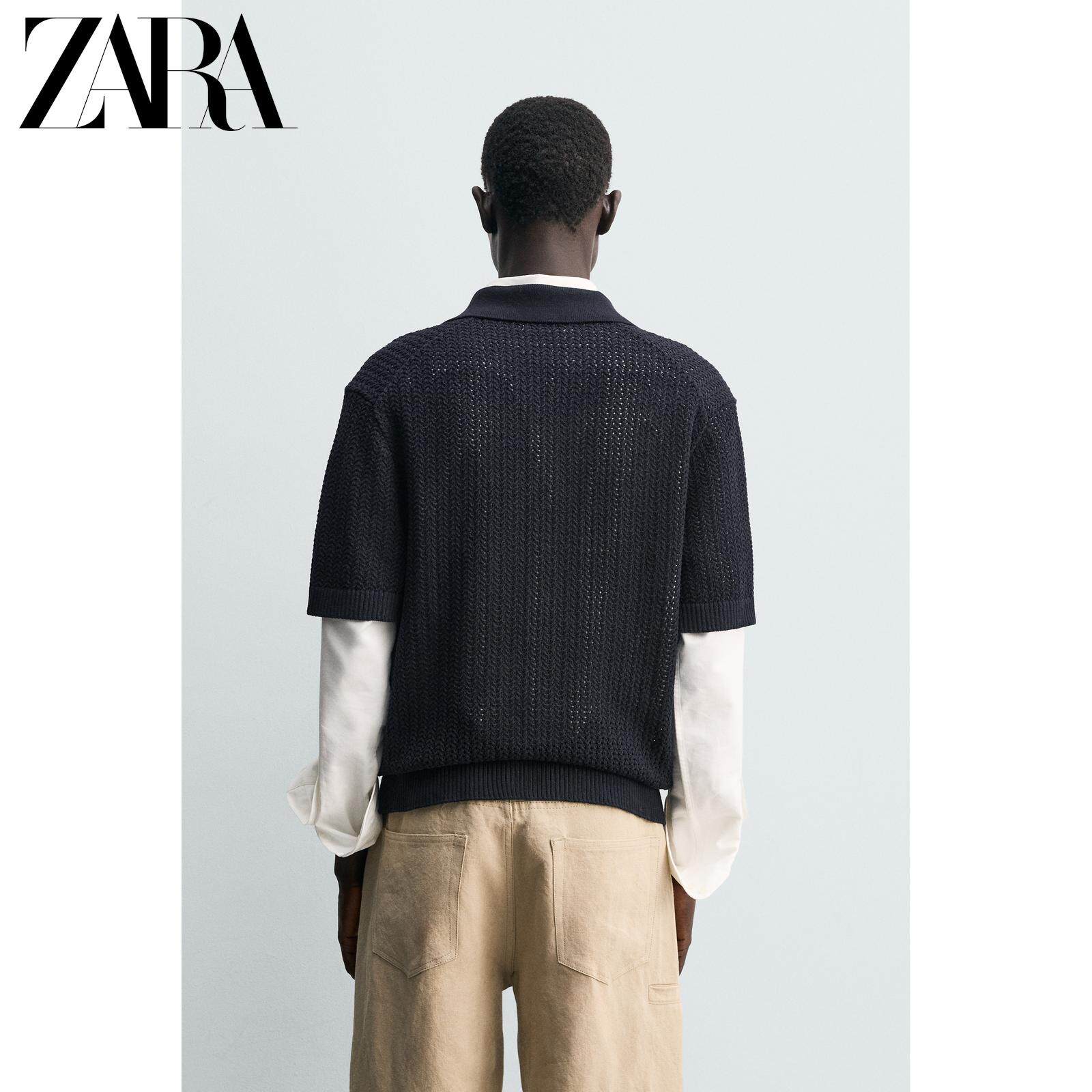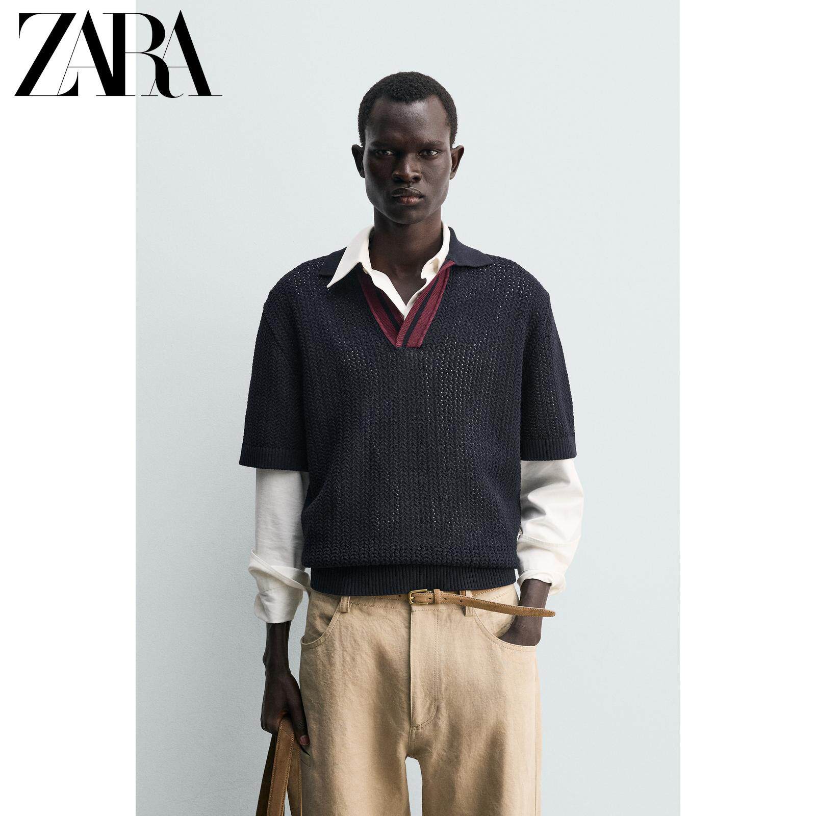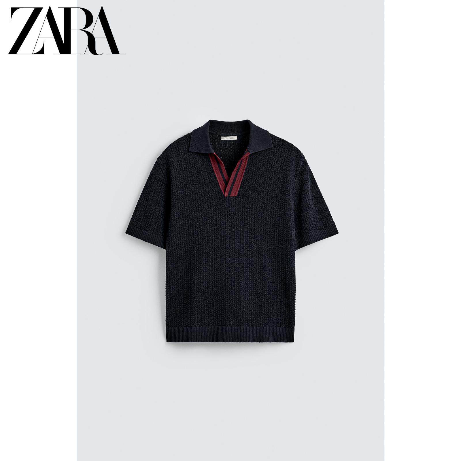 ZARA Новинка весны и лета 2026, мужская хлопковая рубашка поло контрастного цвета, прямая трикотажная рубашка поло 4938431 401