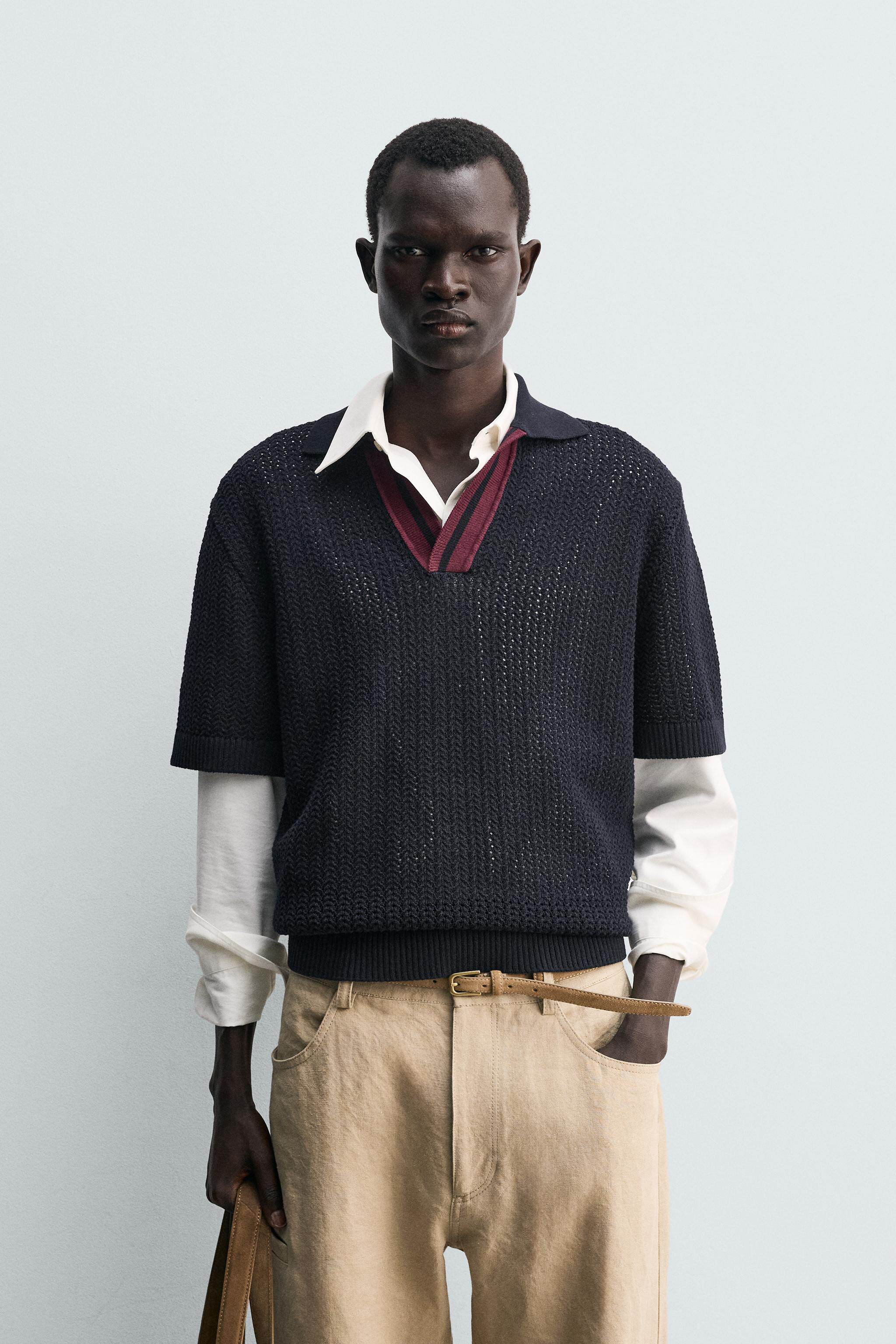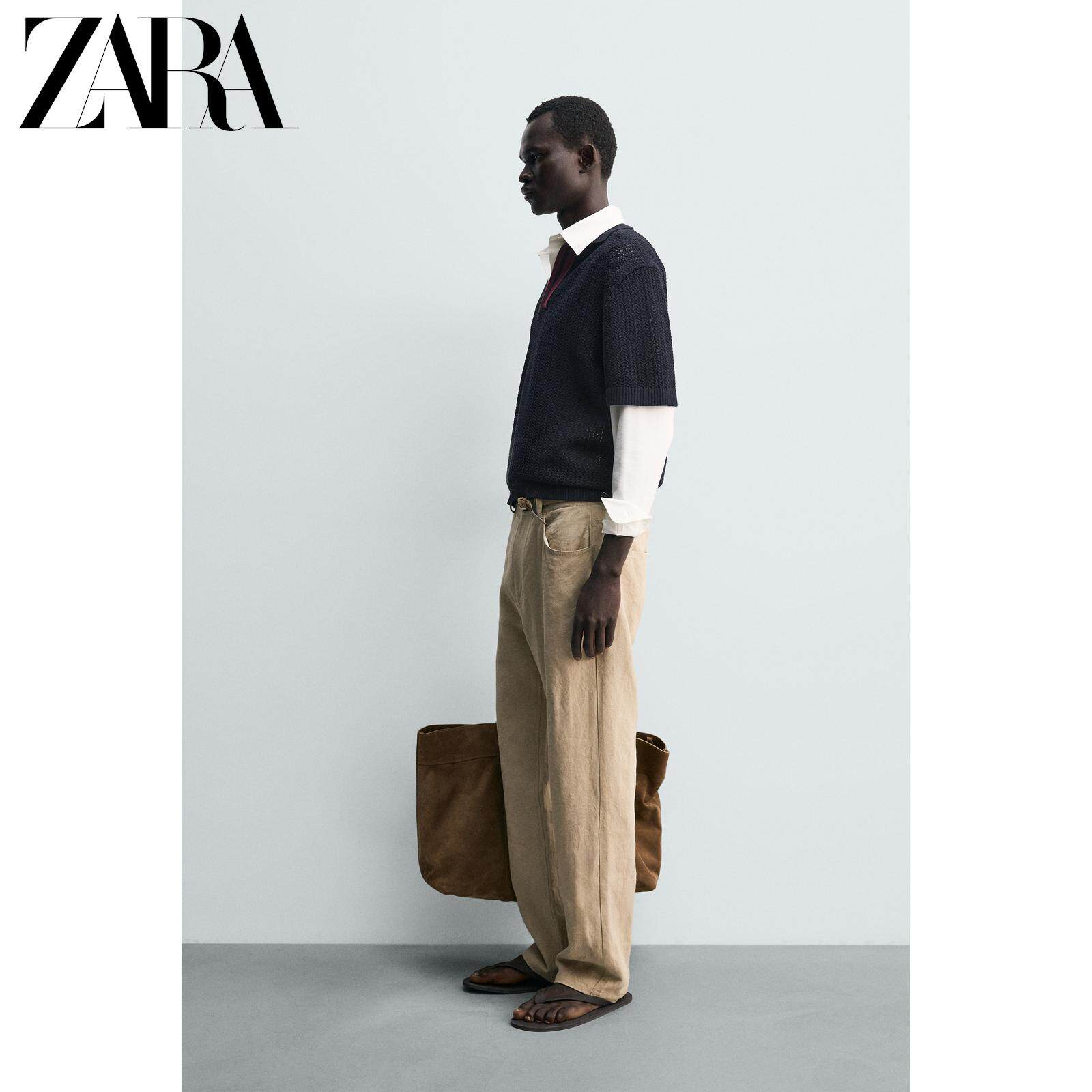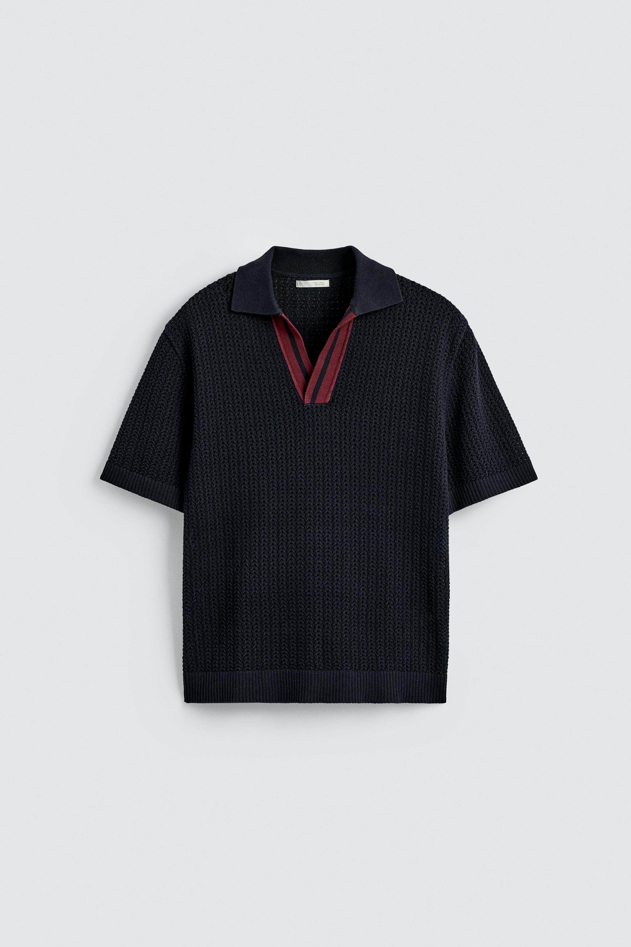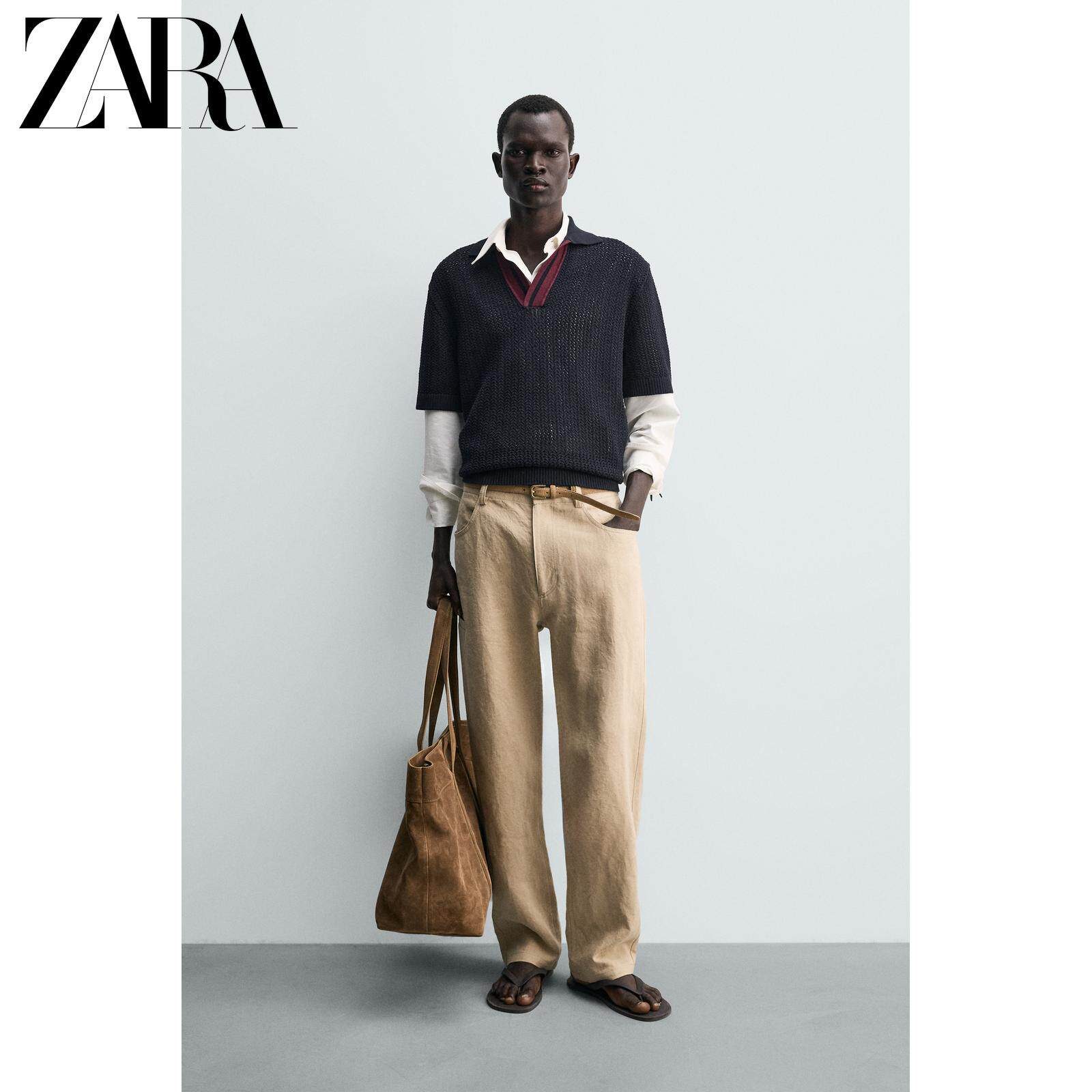 ZARA Новинка весны и лета 2026, мужская хлопковая рубашка поло контрастного цвета, прямая трикотажная рубашка поло 4938431 401
