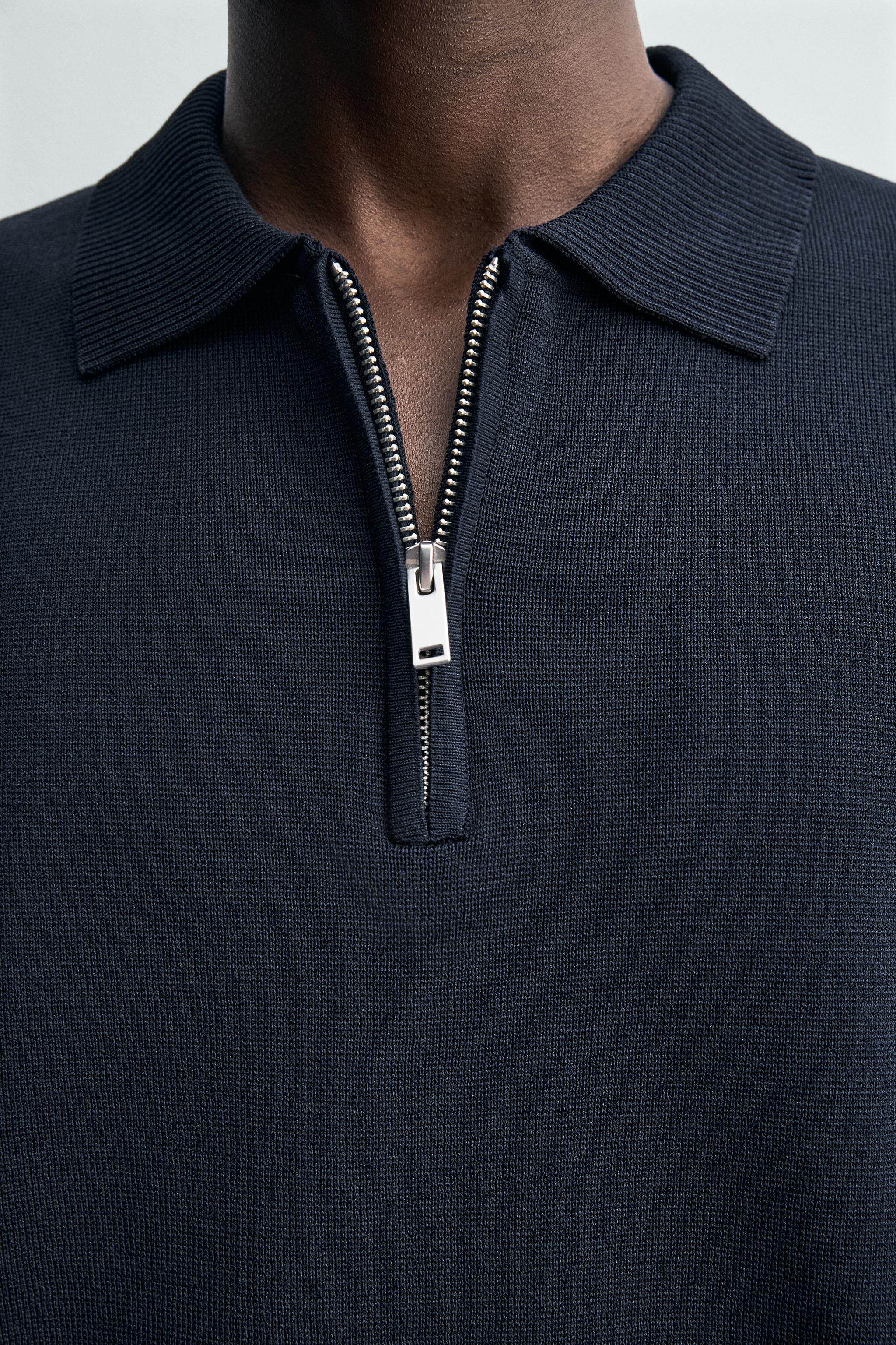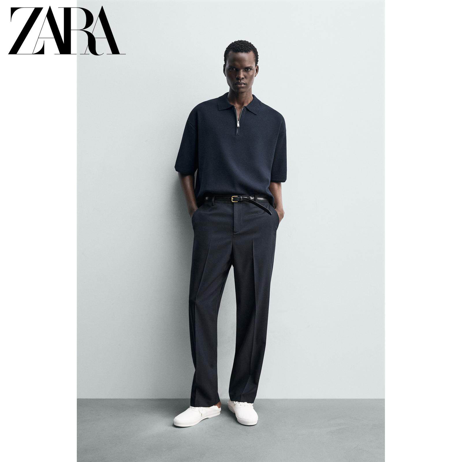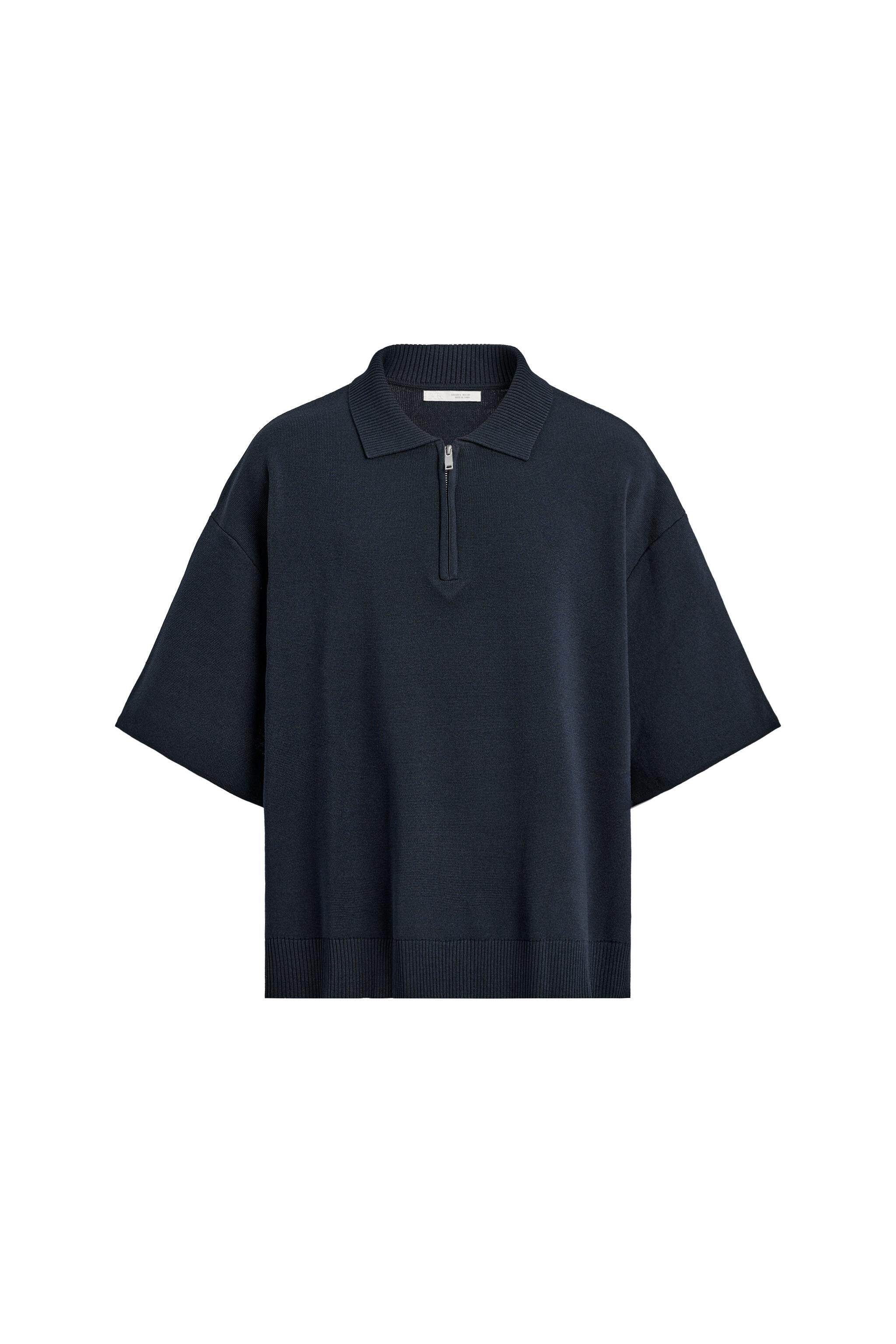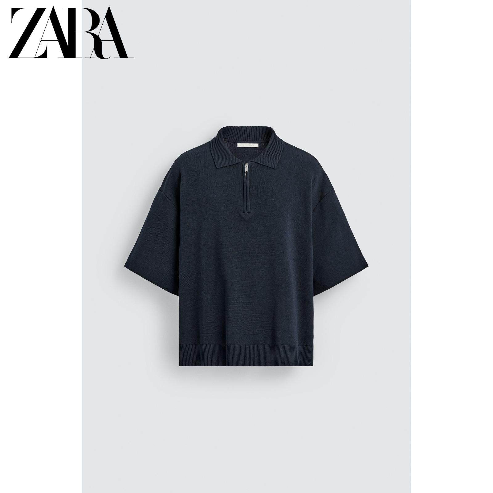 ZARA Летняя короткая трикотажная футболка polo с молнией, короткий рукав