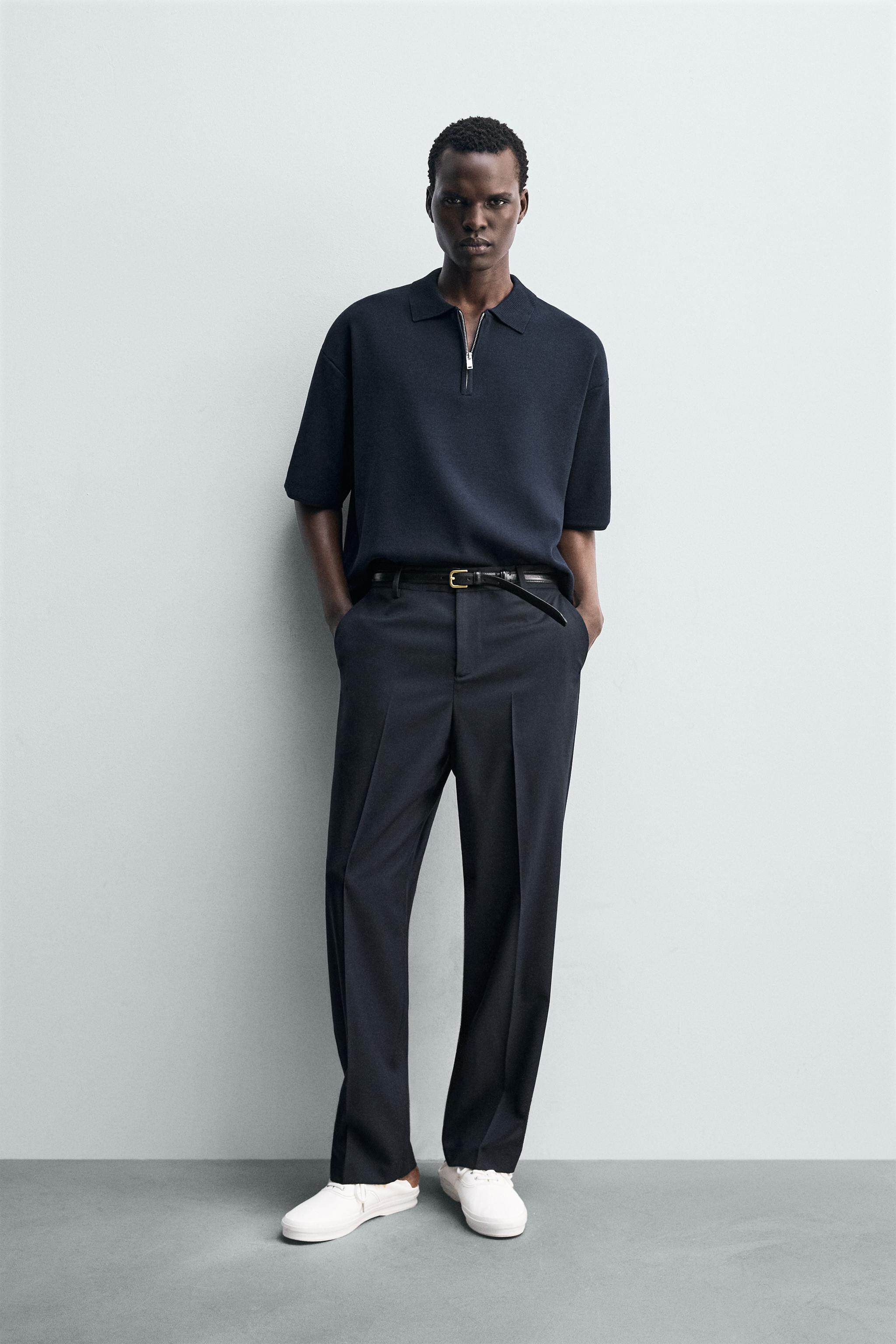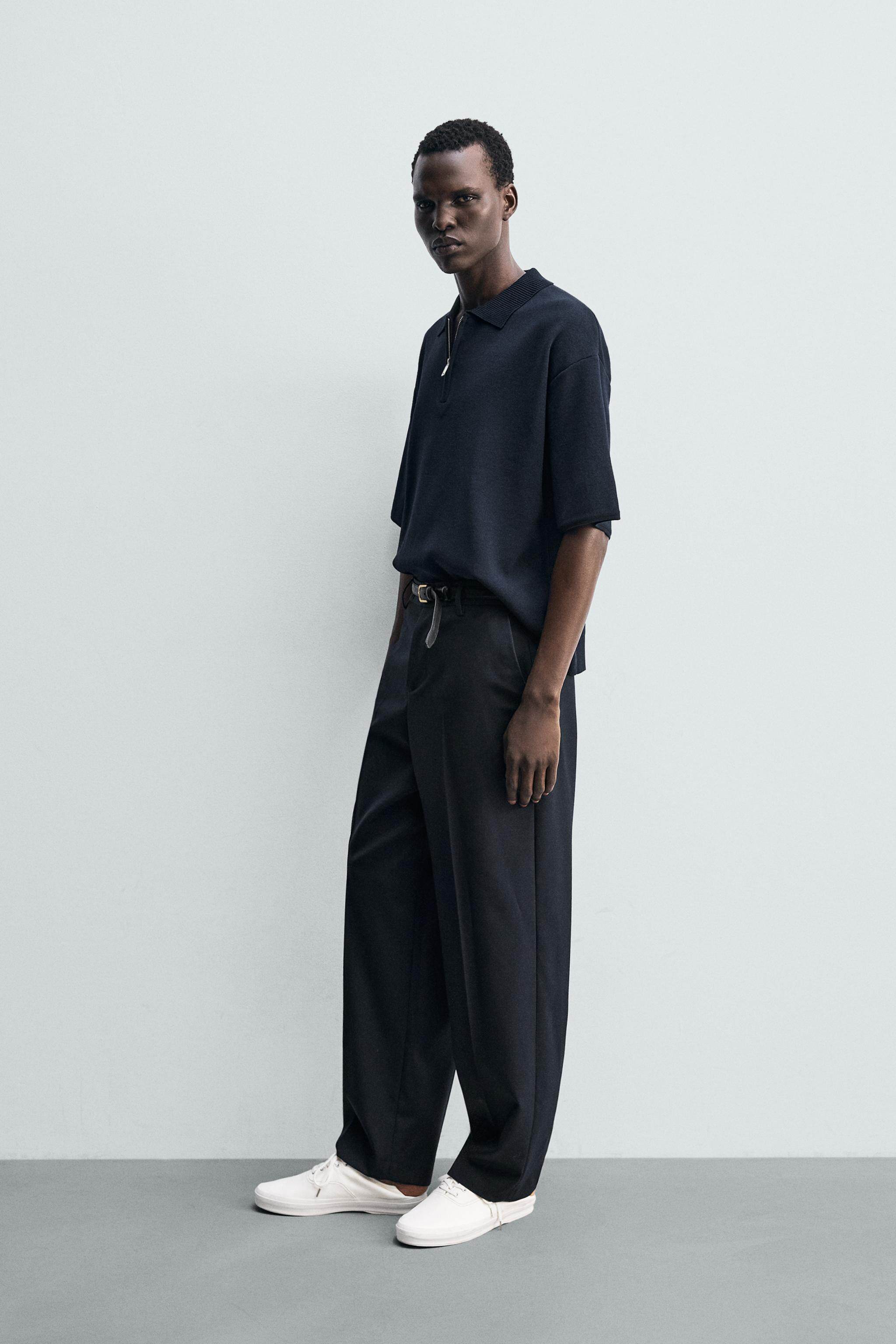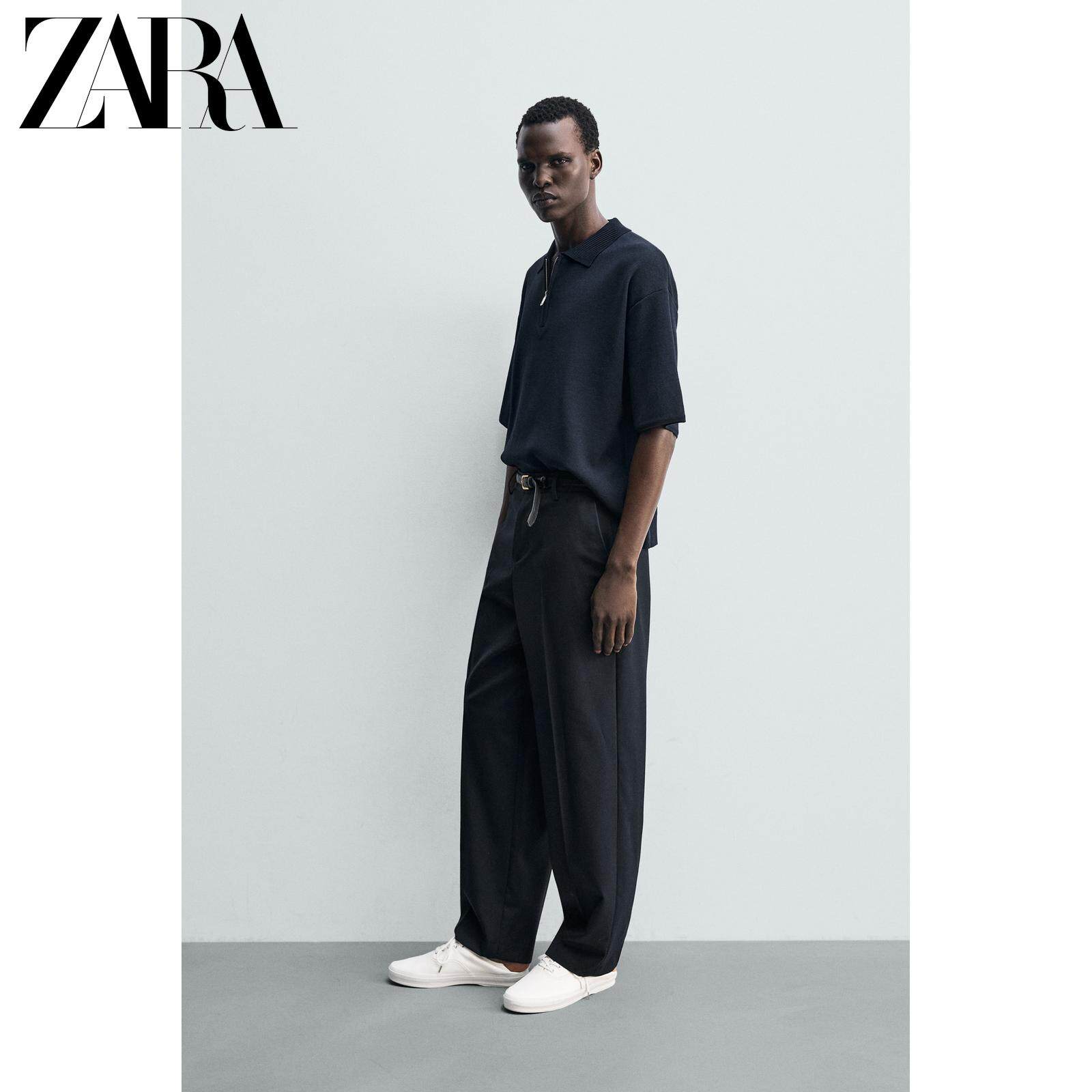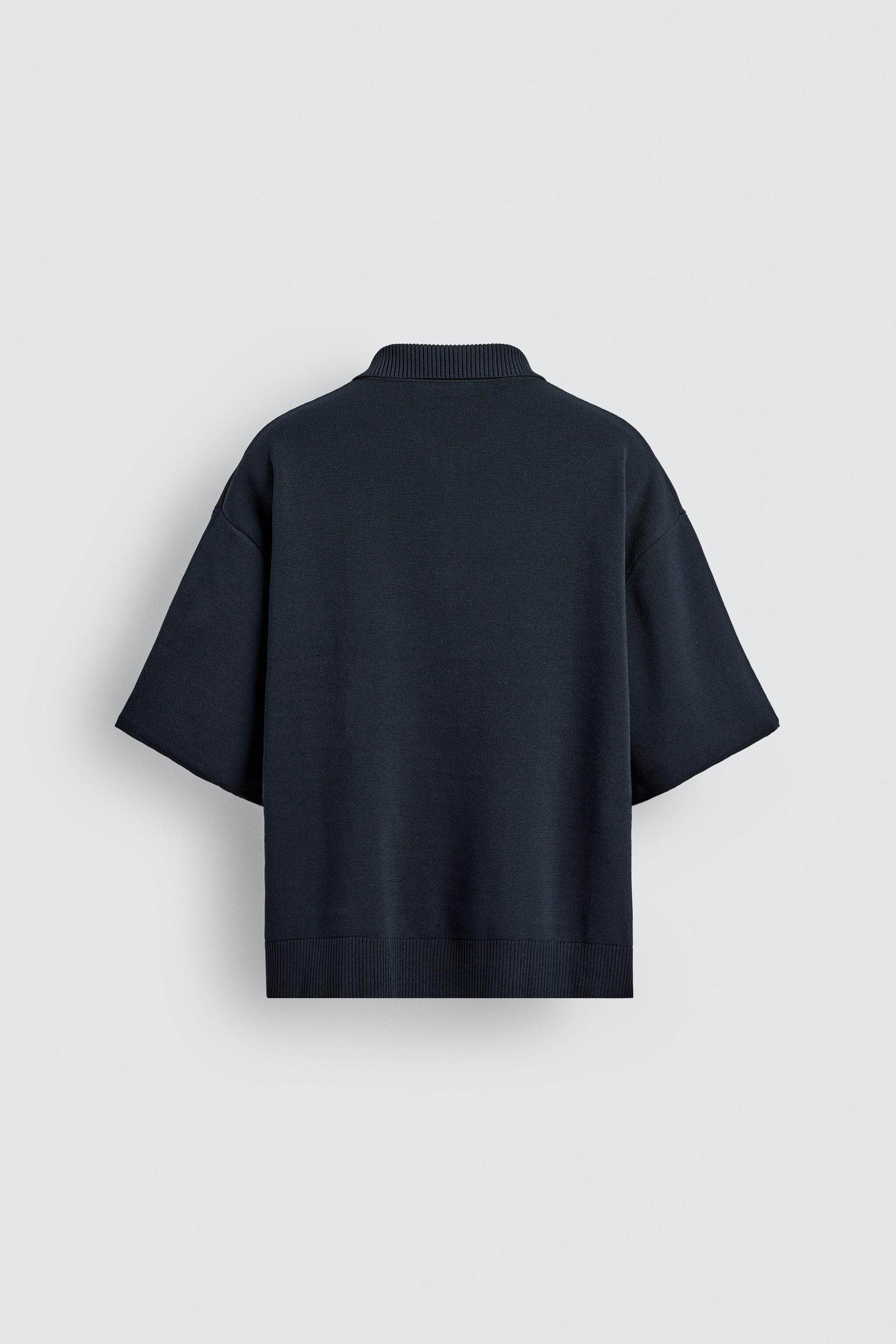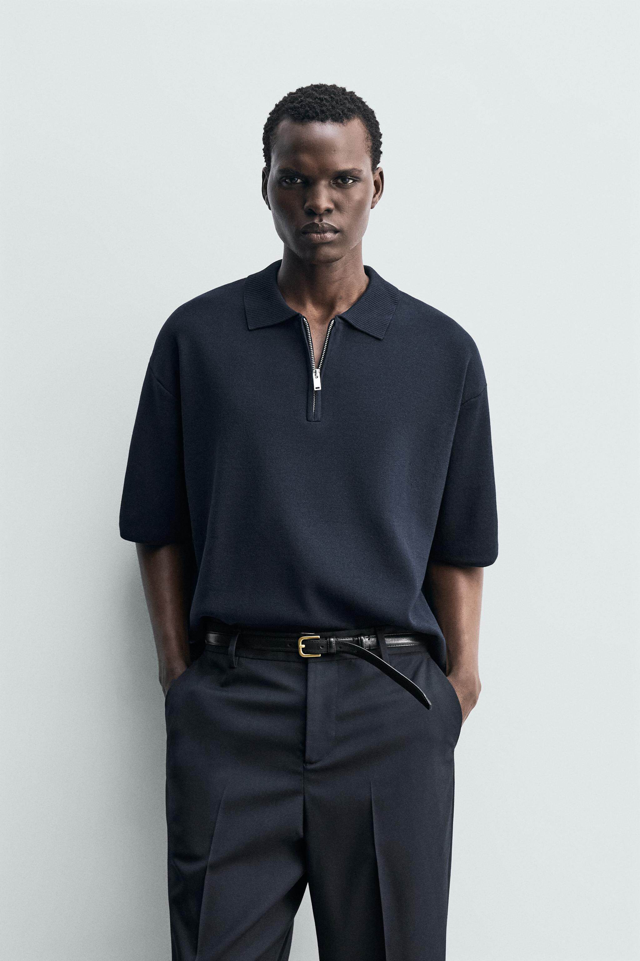 ZARA Летняя короткая трикотажная футболка polo с молнией, короткий рукав
