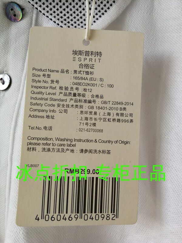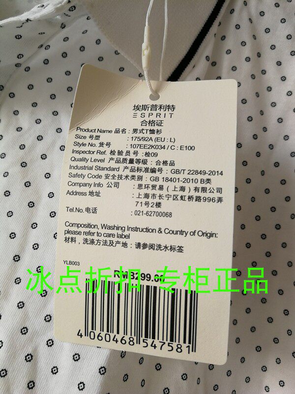 ESPRIT Counter подлинное 076EE2K042/048EO2K007 Мужское лето -повседневное белое шорт -шорт -рубашка поло