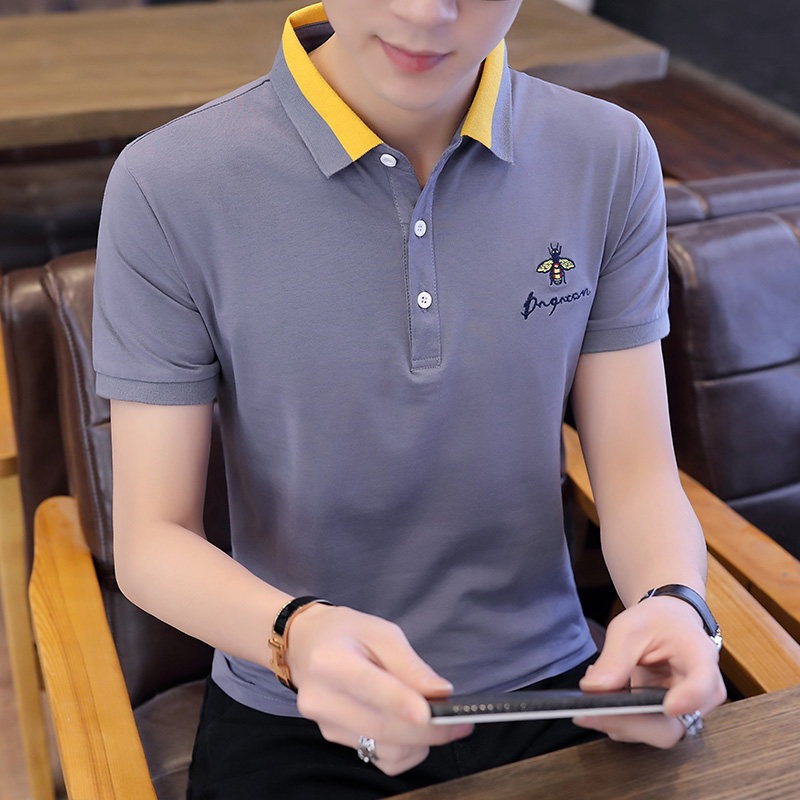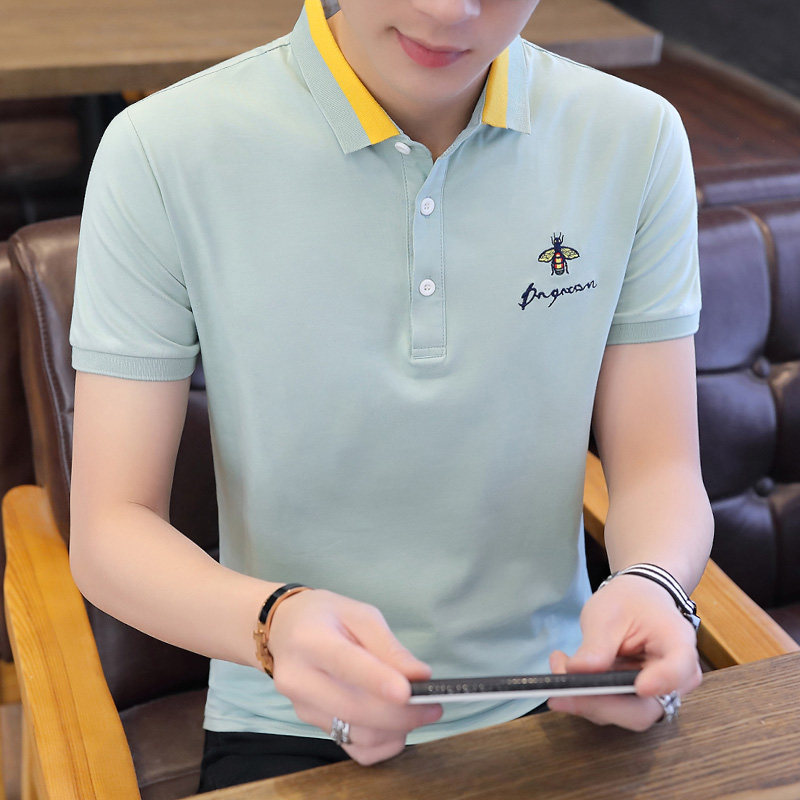 Летняя хлопковая тонкая футболка с коротким рукавом, футболка polo, рубашка, высокий воротник