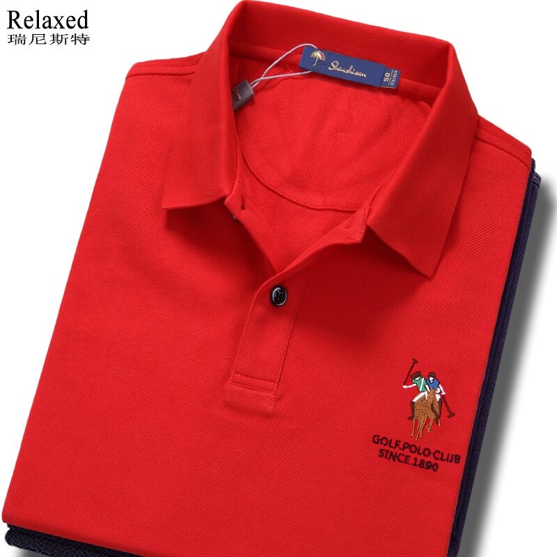 Красная летняя футболка polo, футболка с коротким рукавом, тонкий галстук, высокий воротник