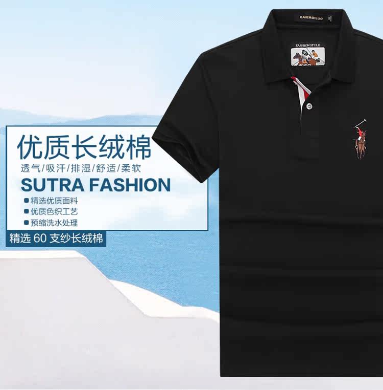 Черная футболка polo, летний галстук, короткий рукав, свободный крой
