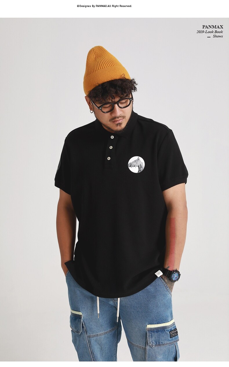 Черная футболка polo, короткий рукав, свободный крой