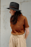 Профсоюз ретро вязаная короткая рубашка полота с цветочным ткацким плетением