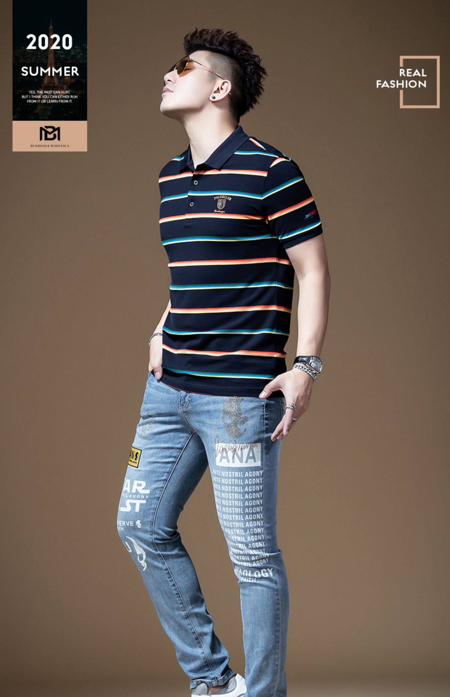 Спортивная футболка polo в английском стиле, облегающий крой, с вышивкой, принт