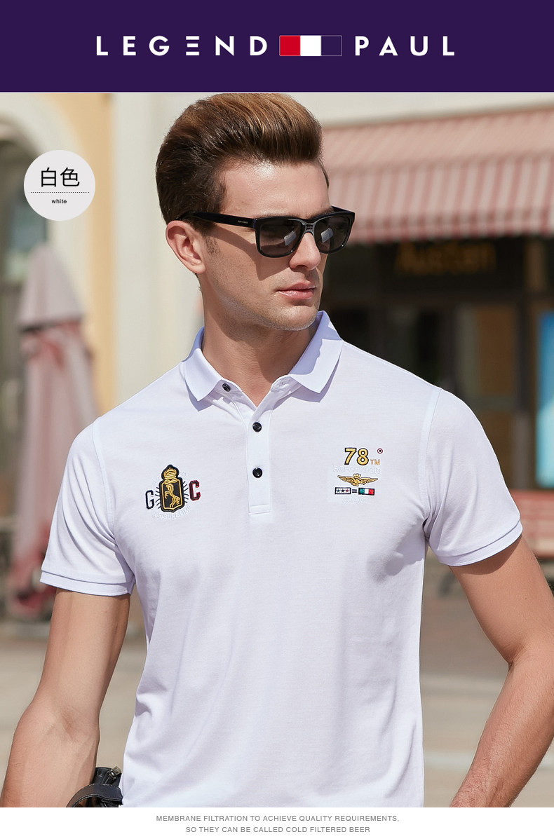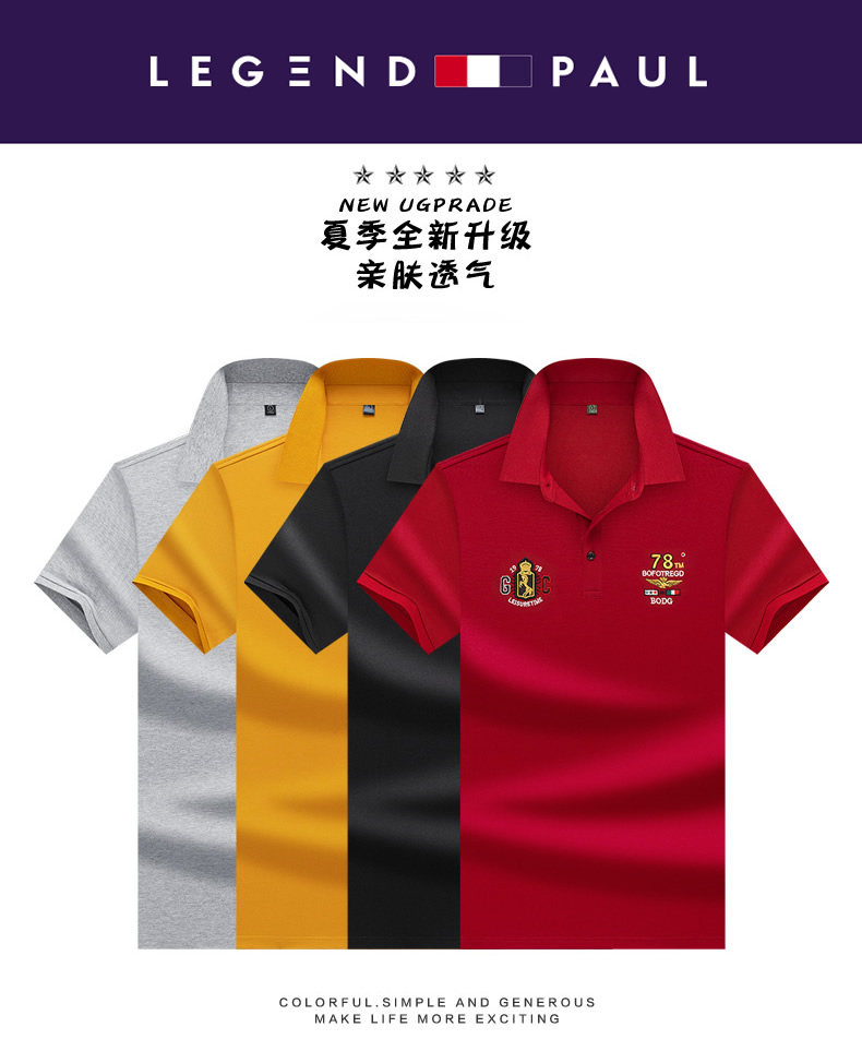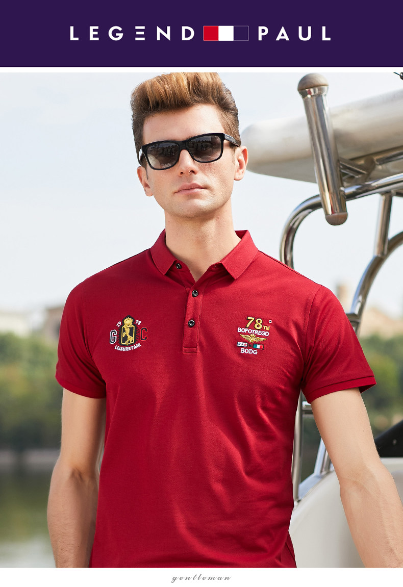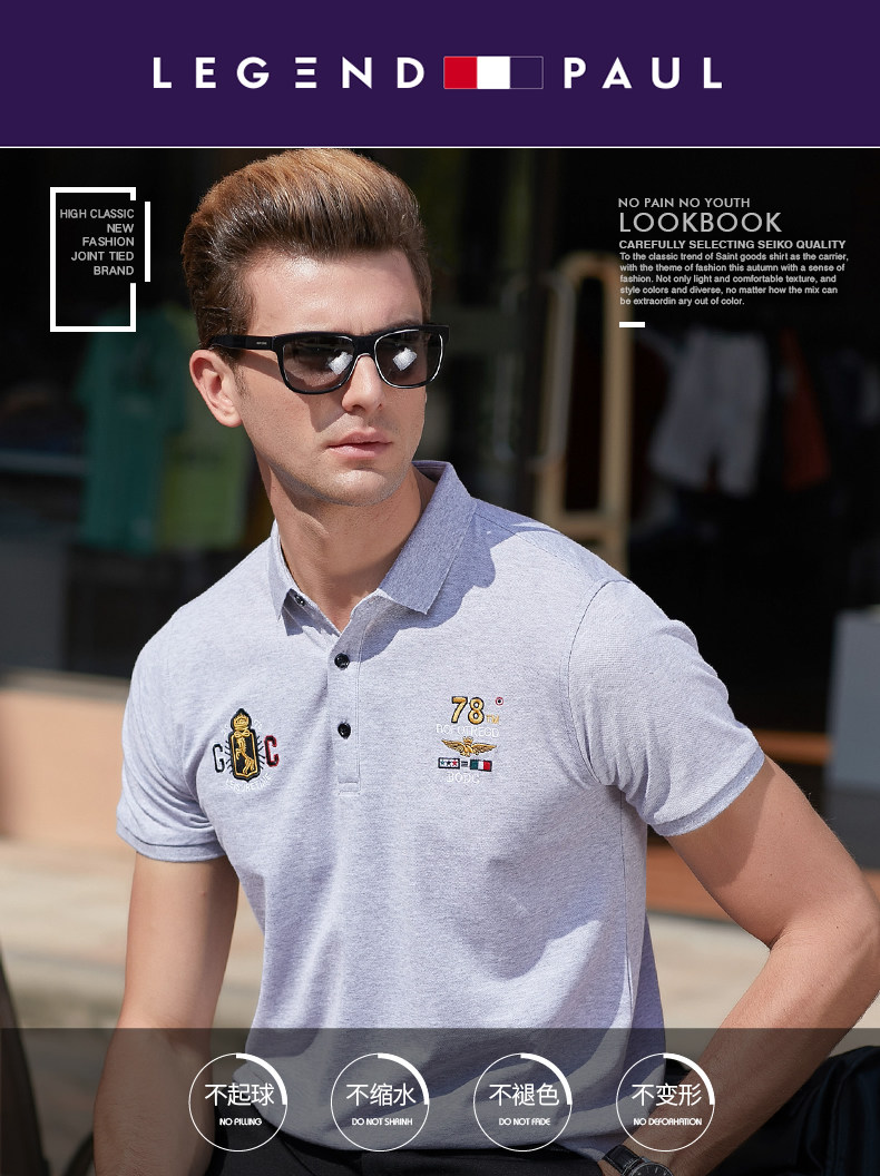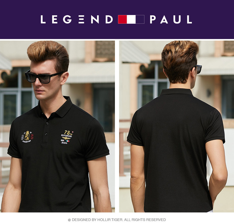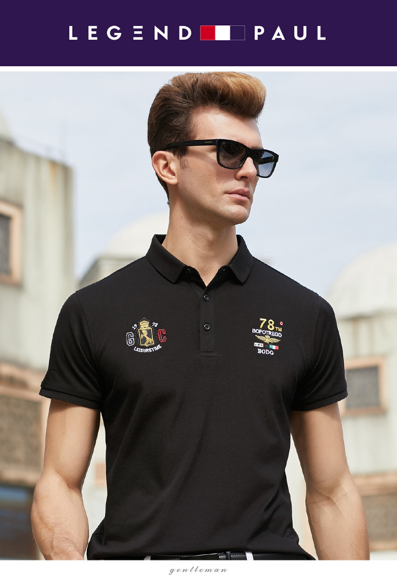 传奇保罗 Шелковая футболка с коротким рукавом, дышащая трендовая футболка polo, с вышивкой
