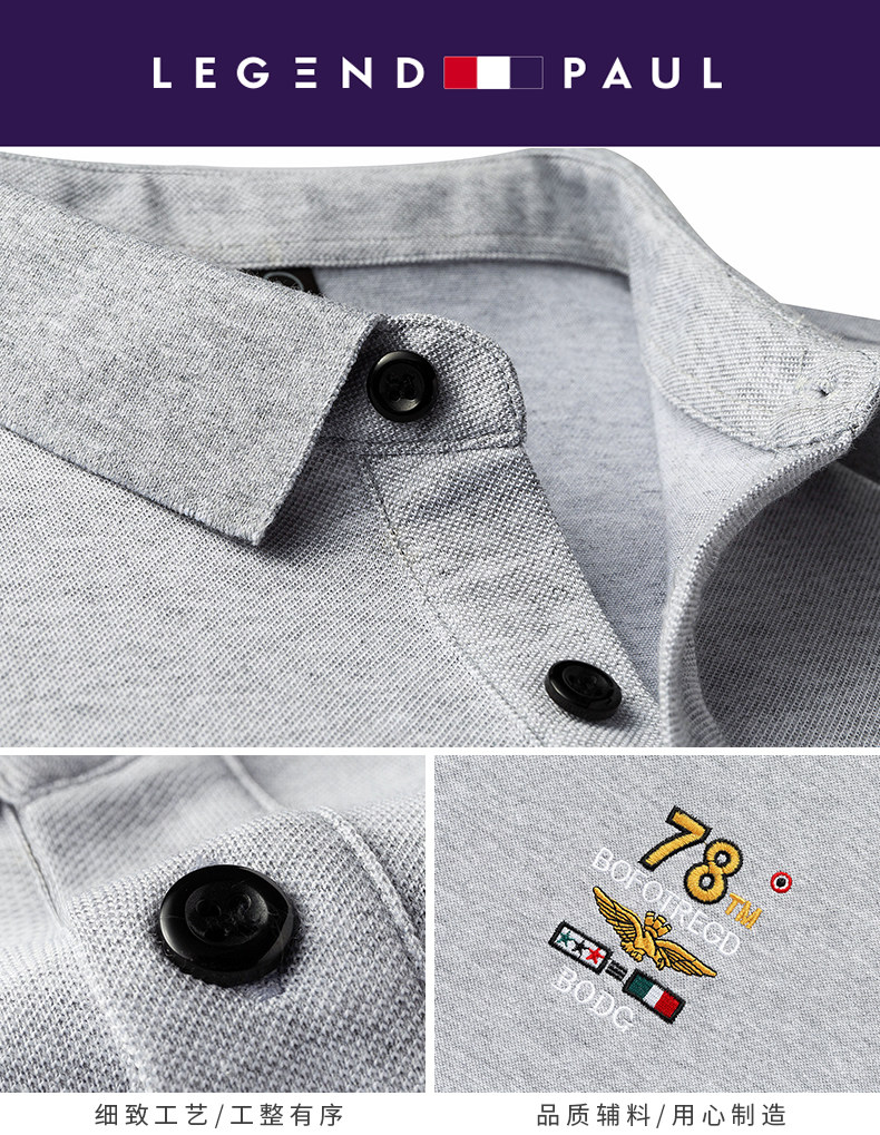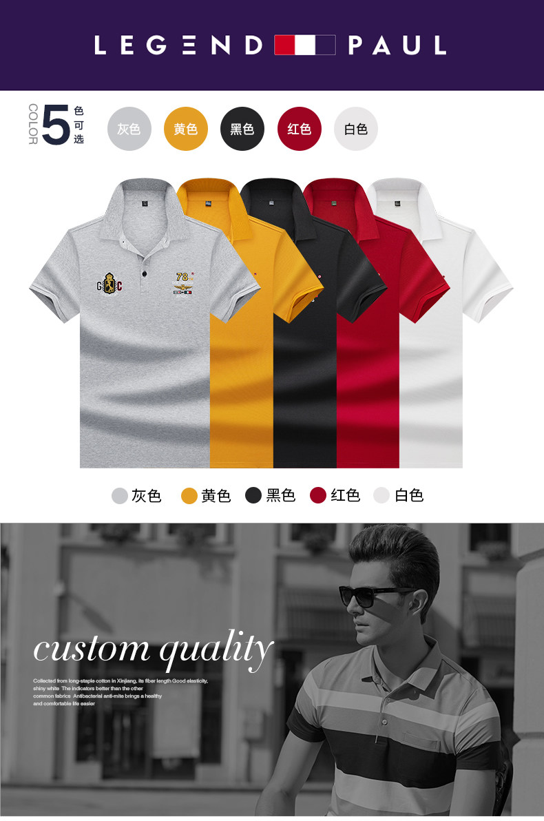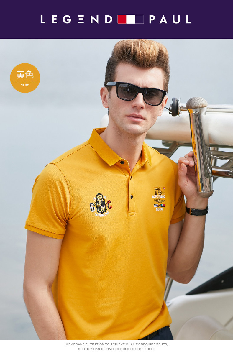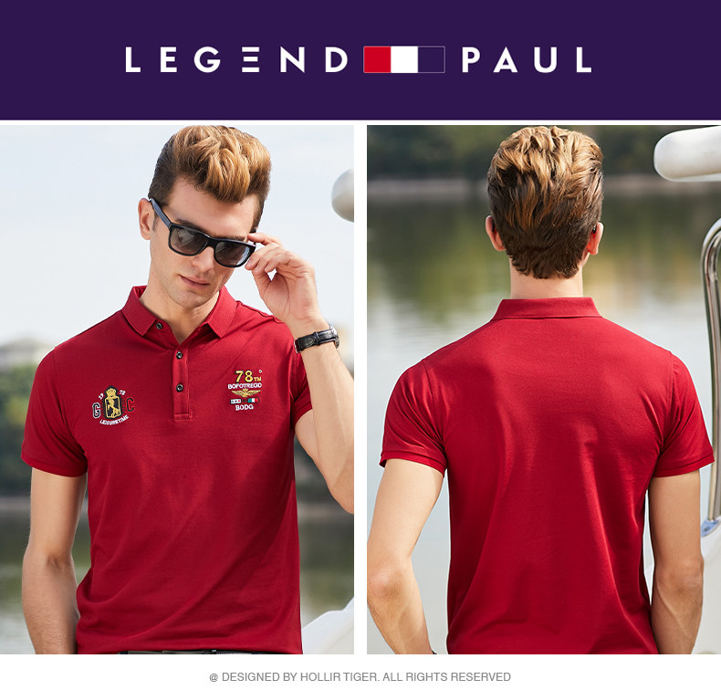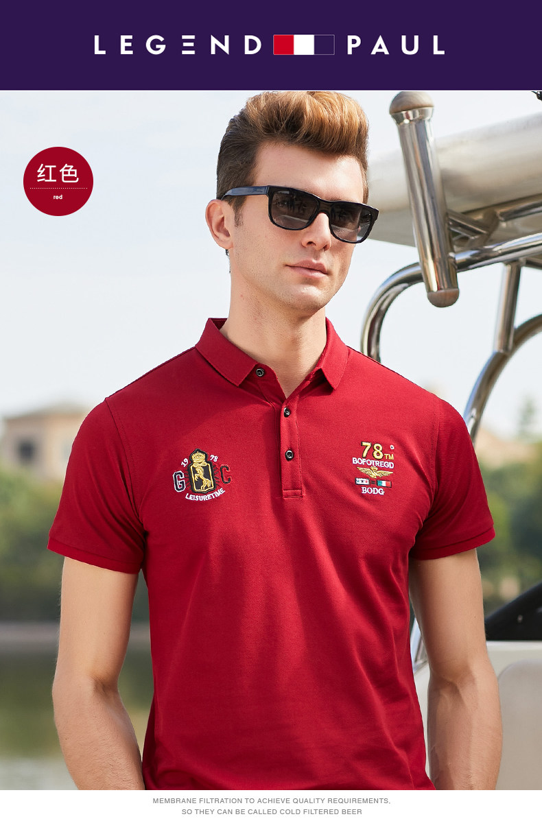 传奇保罗 Шелковая футболка с коротким рукавом, дышащая трендовая футболка polo, с вышивкой