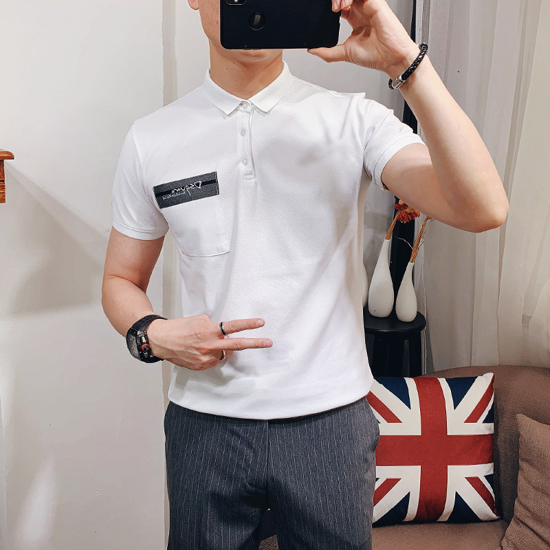 Однотонная трендовая тонкая футболка polo для отдыха, короткий рукав, облегающий крой, в корейском стиле