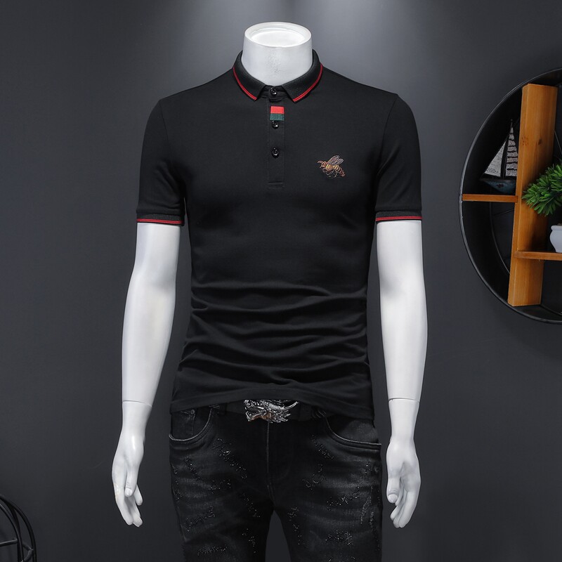 Летняя одежда, хлопковая футболка polo, европейский стиль, с вышивкой, короткий рукав