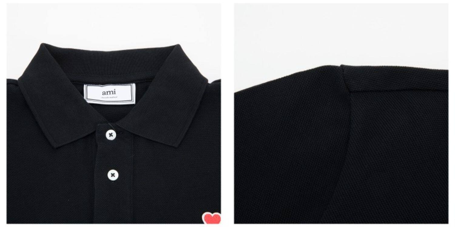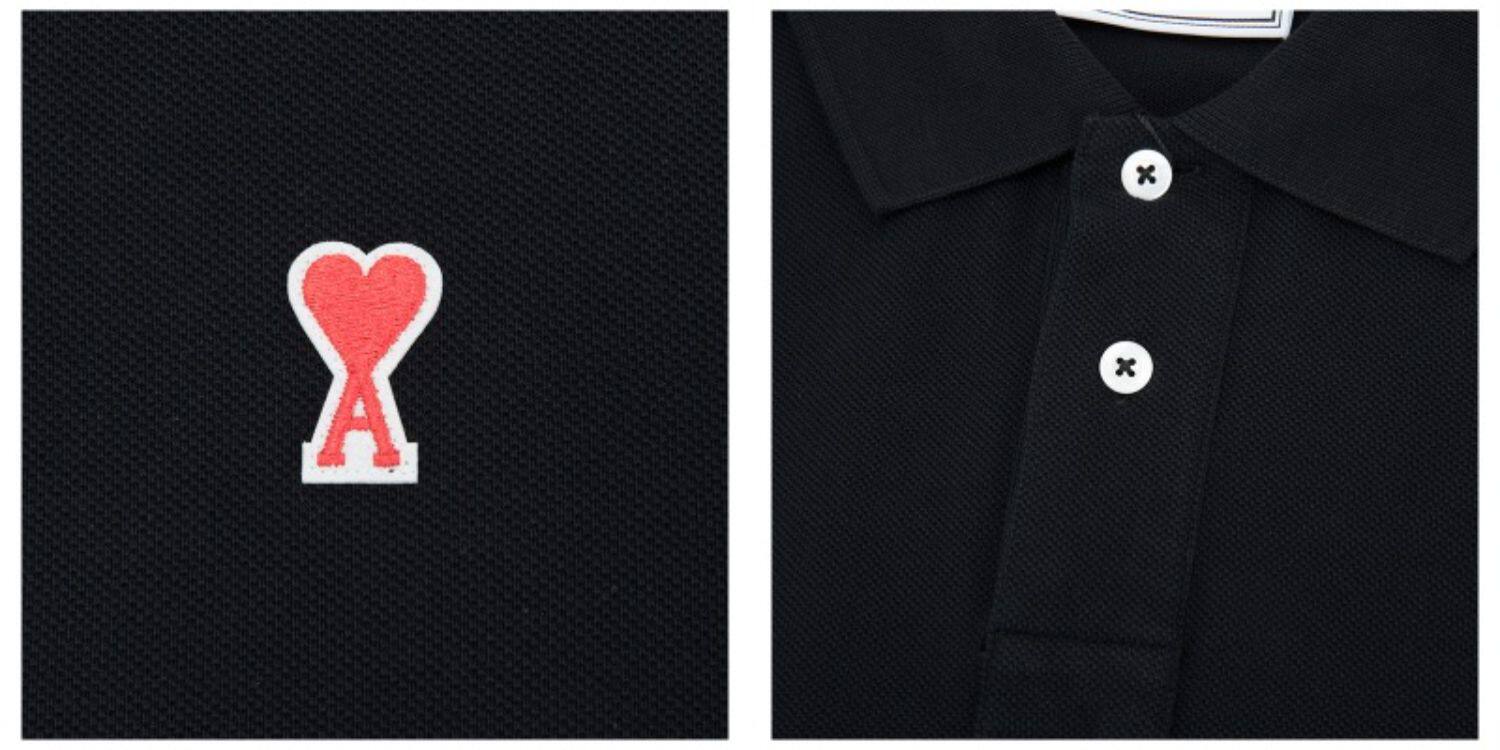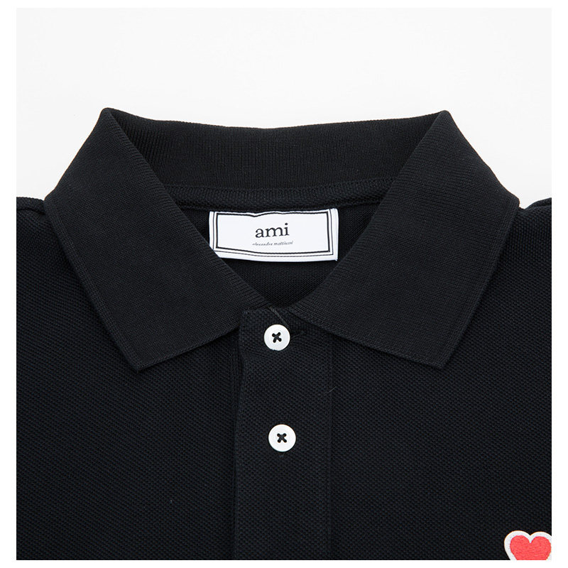 Ами Александр Маттюсси Черное классическое украшение логотипа Мужская рубашка поло