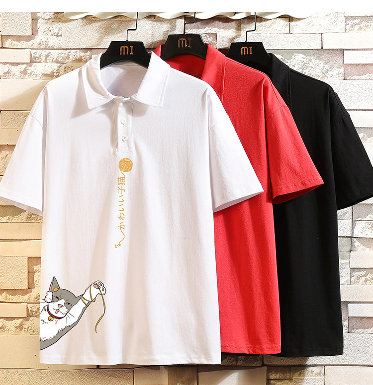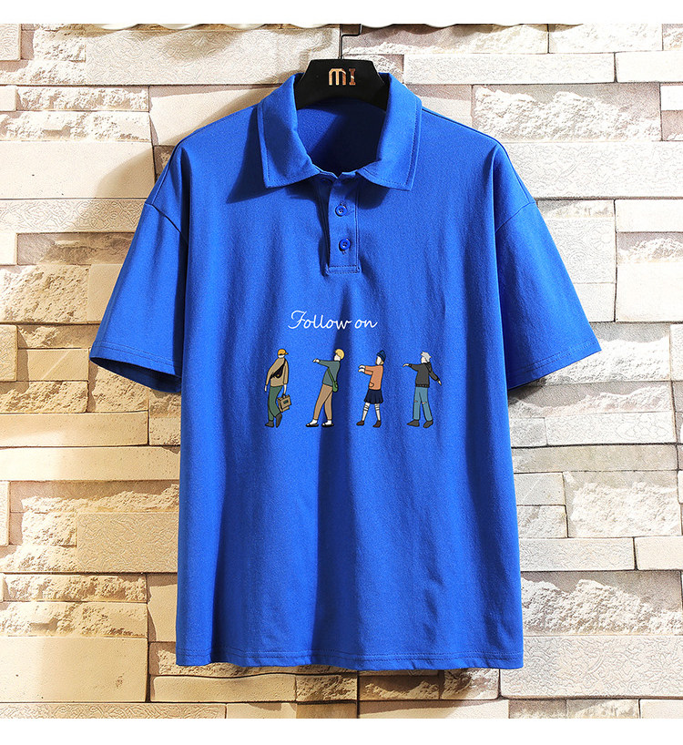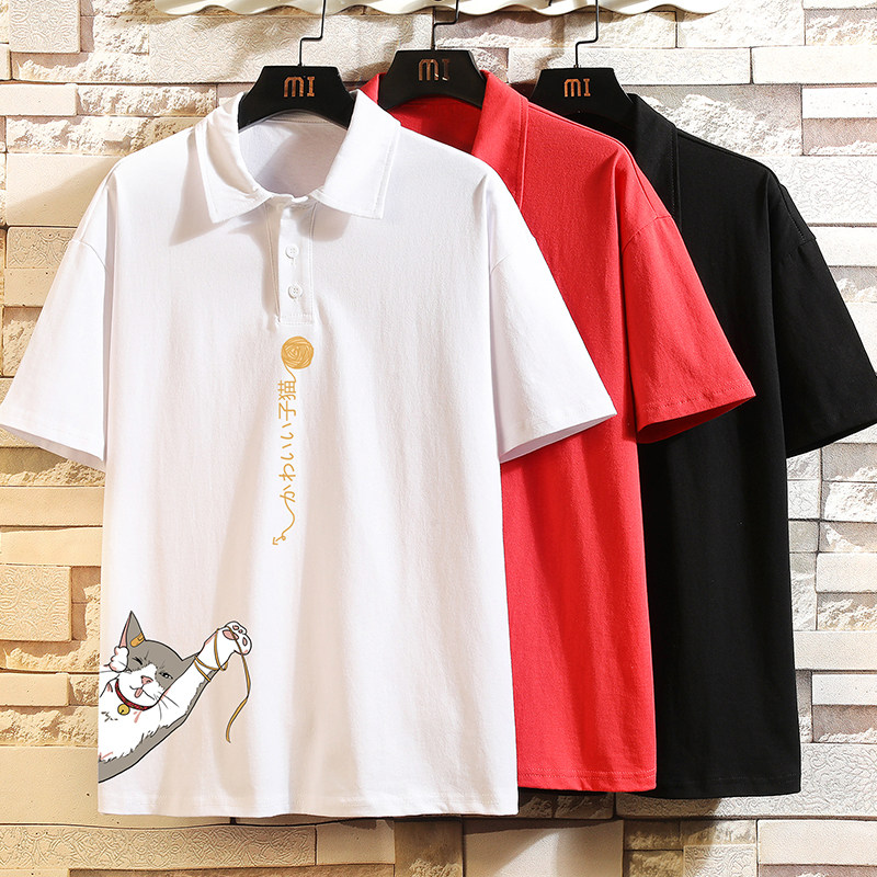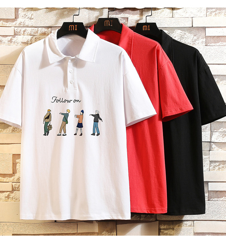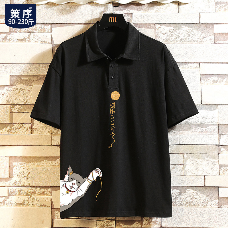 Хлопковая трендовая футболка polo, короткий рукав, в корейском стиле, большой размер