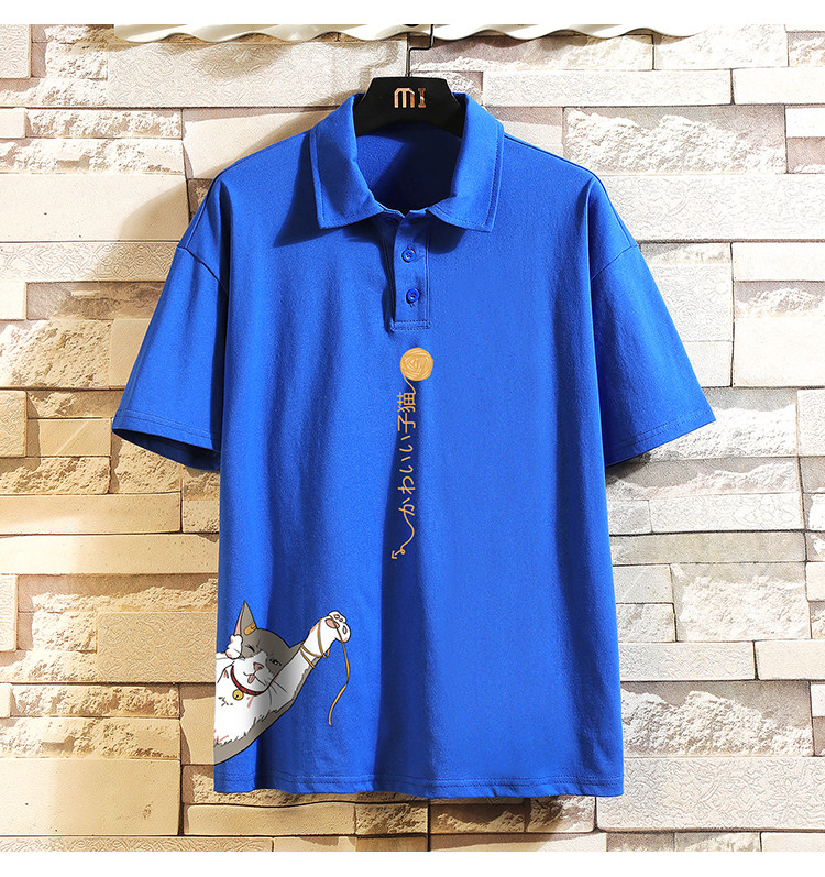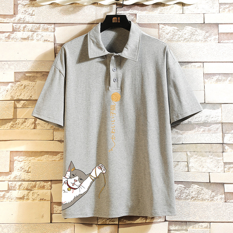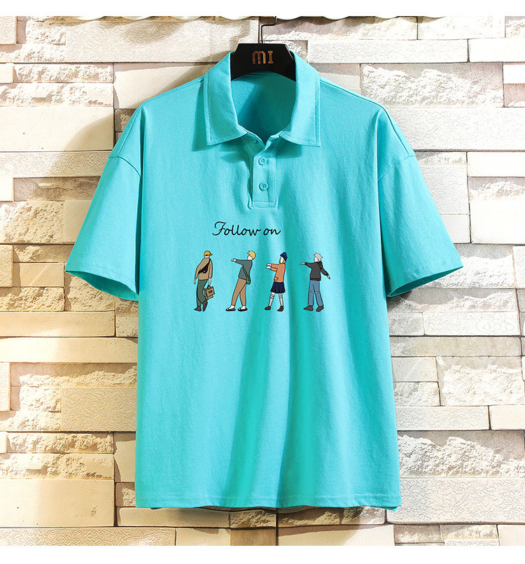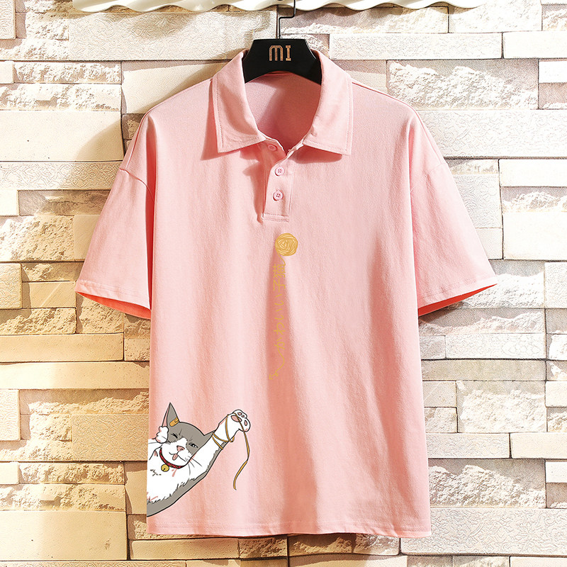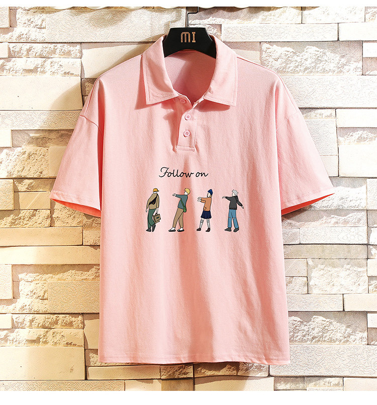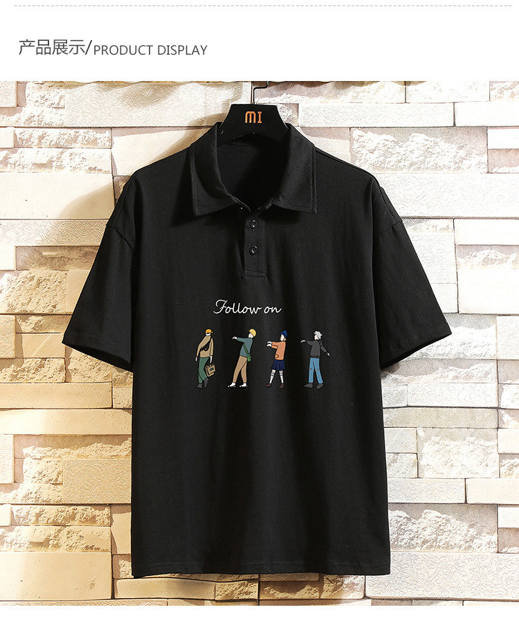 Хлопковая трендовая футболка polo, короткий рукав, в корейском стиле, большой размер