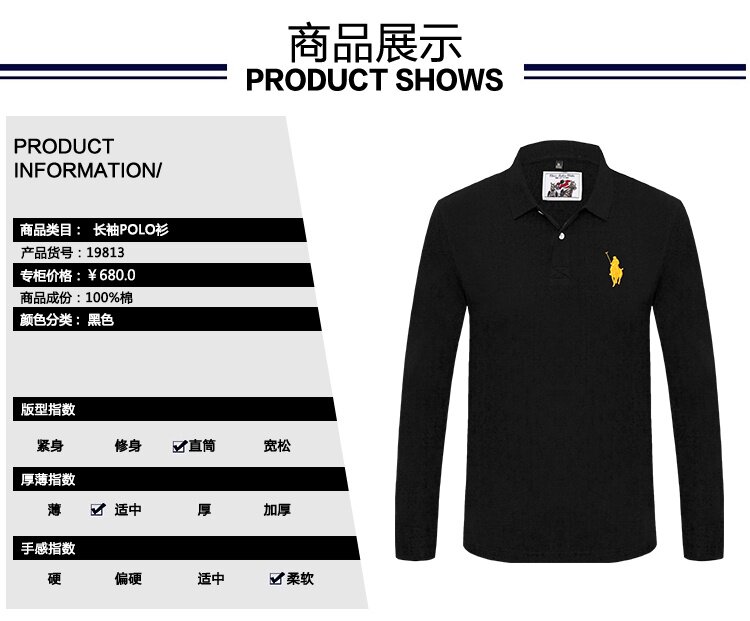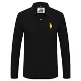 Хлопковая черная футболка polo для отдыха, лонгслив, с вышивкой