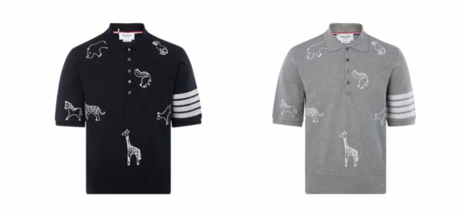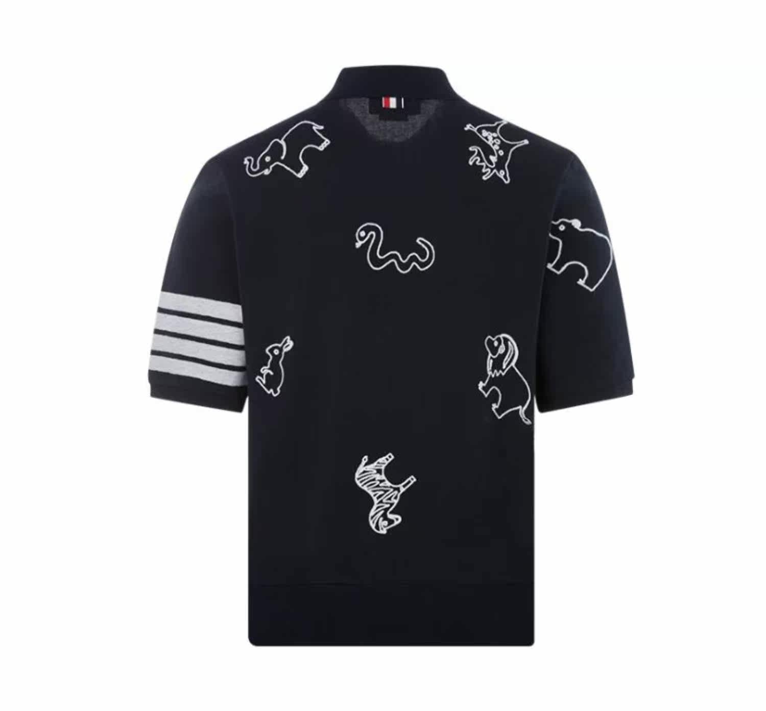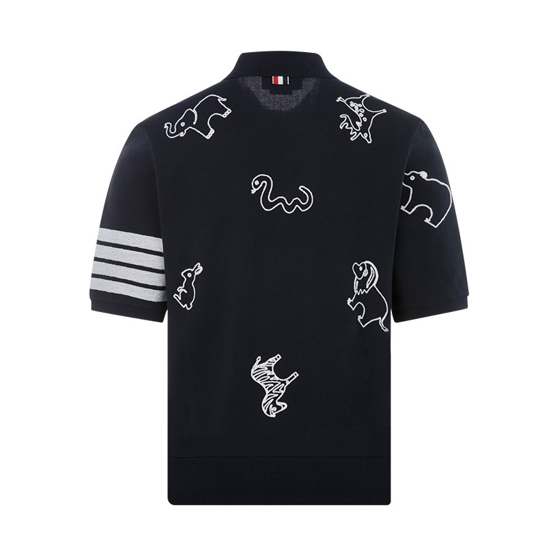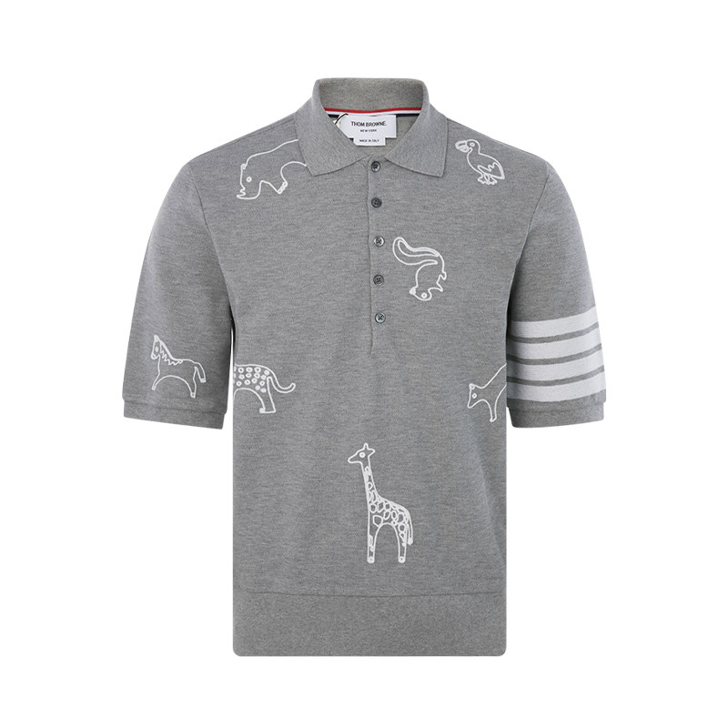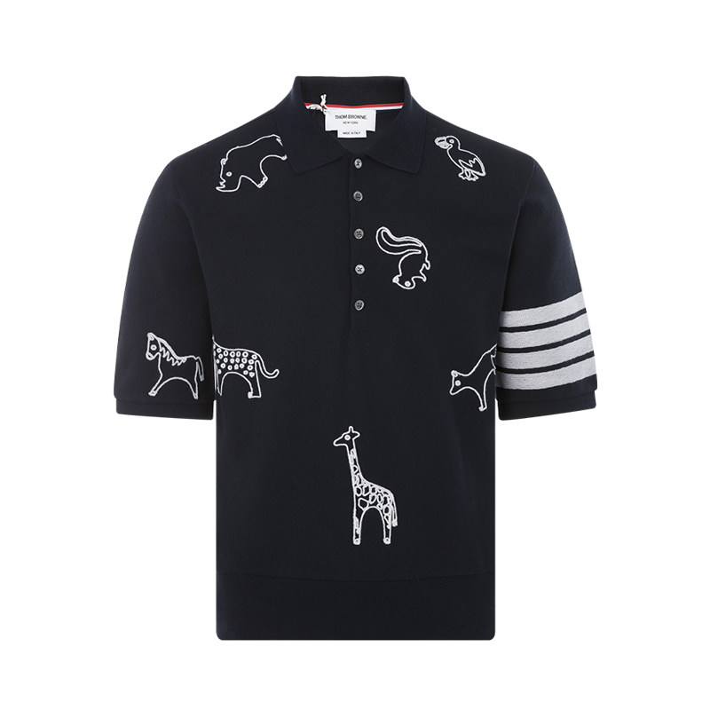 Thom Browne Simple Cotton Animal Pattern Printing Men's Casual Polo рубашка