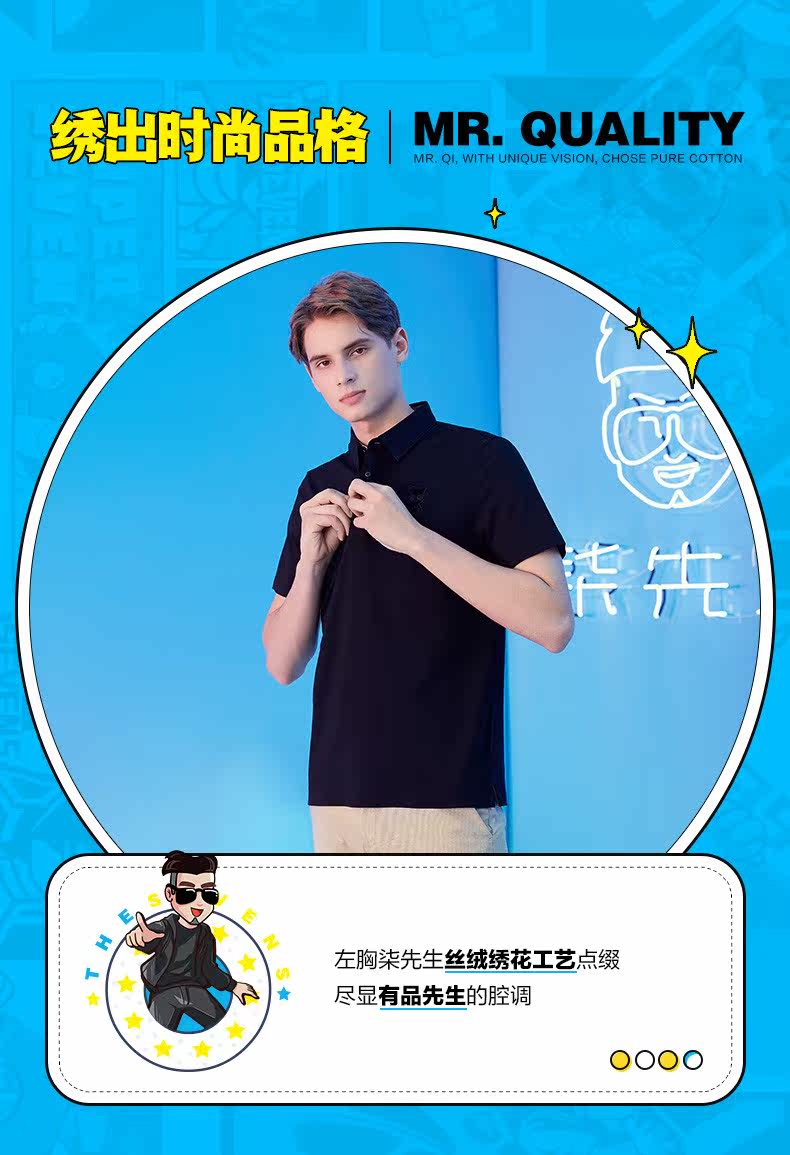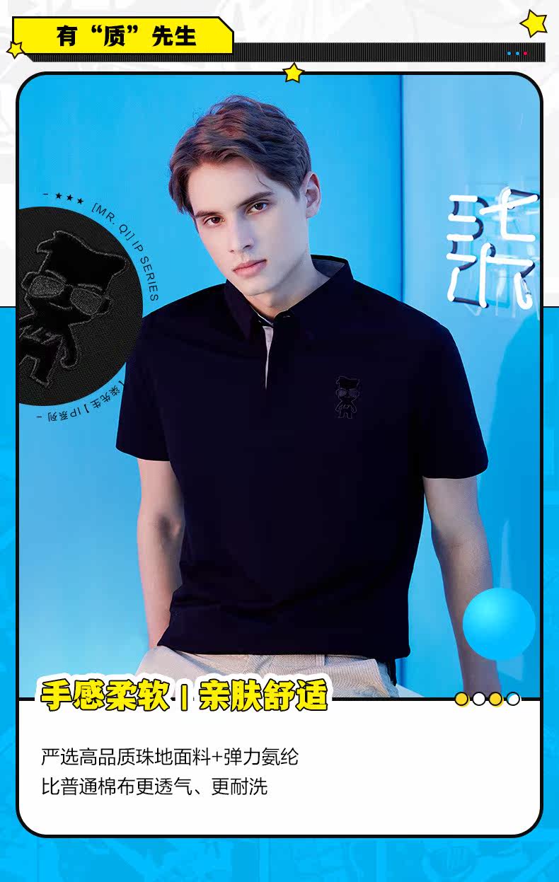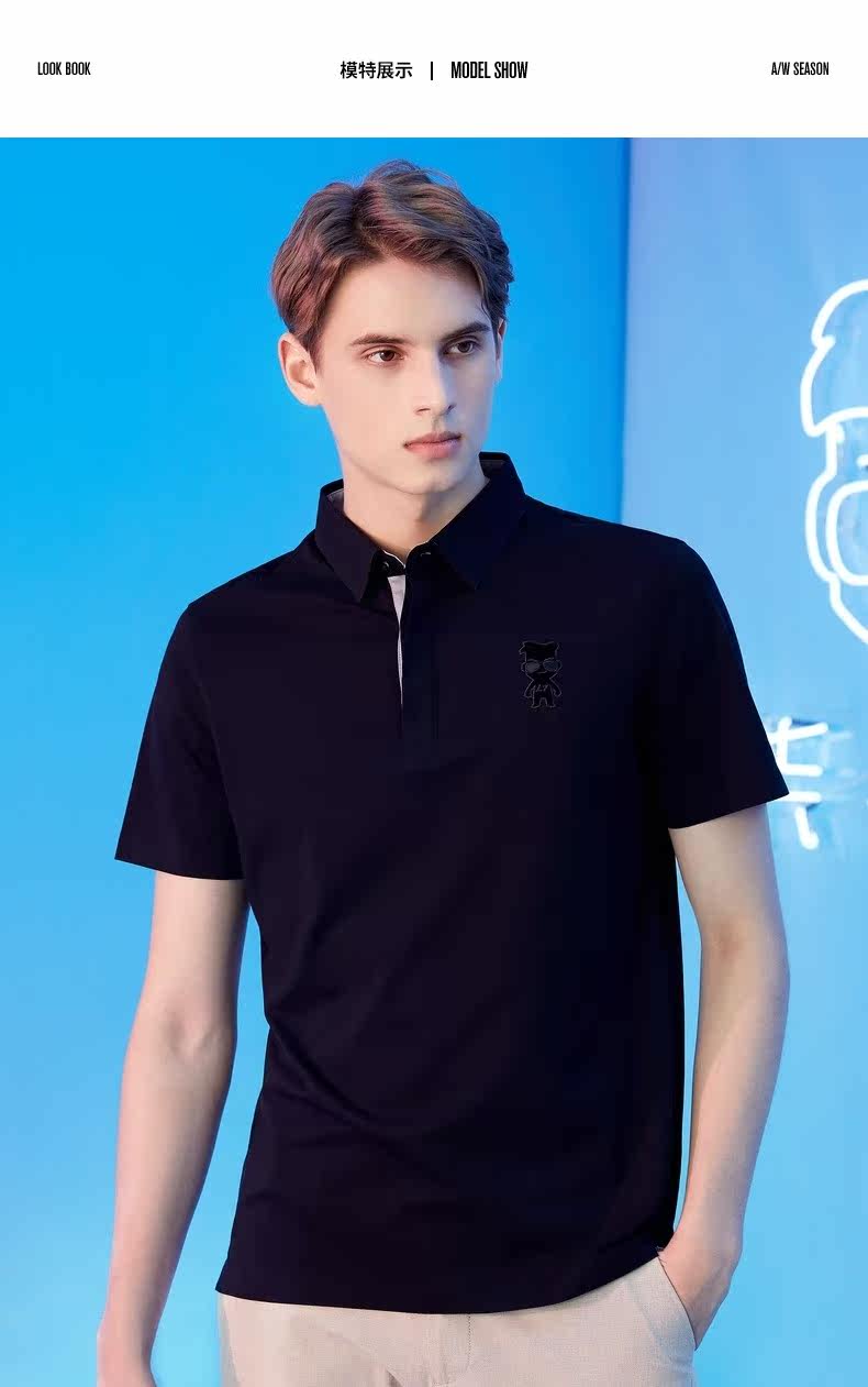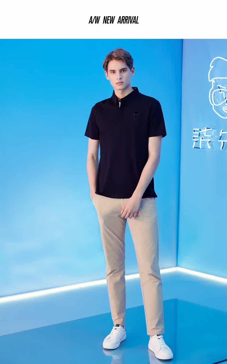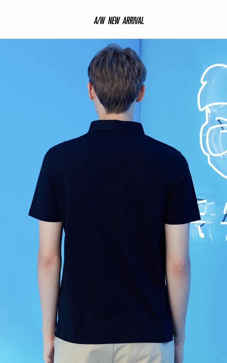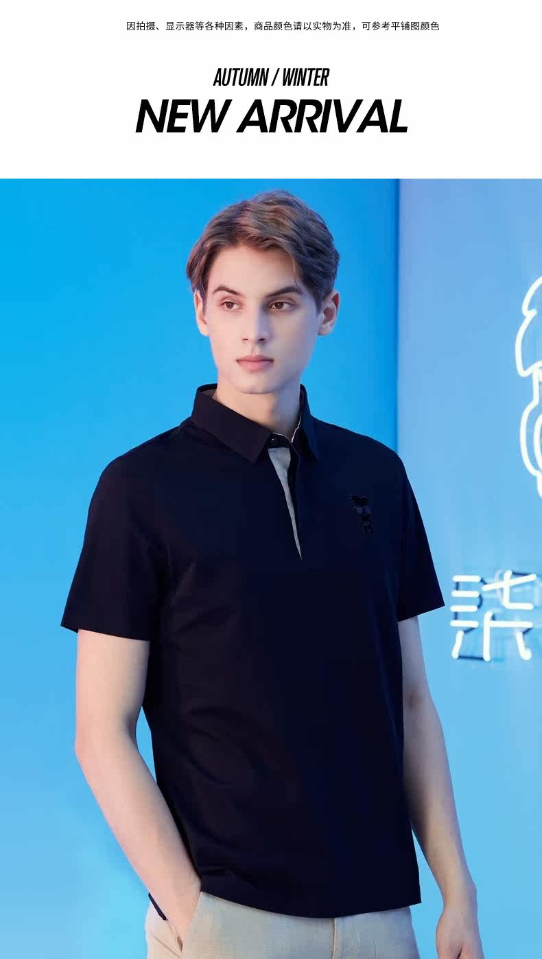 [Мистер. Qi Joint Model] Брендовая мужская рубашка-поло Qi, мужская 21 летняя новая однотонная дышащая повседневная рубашка-поло