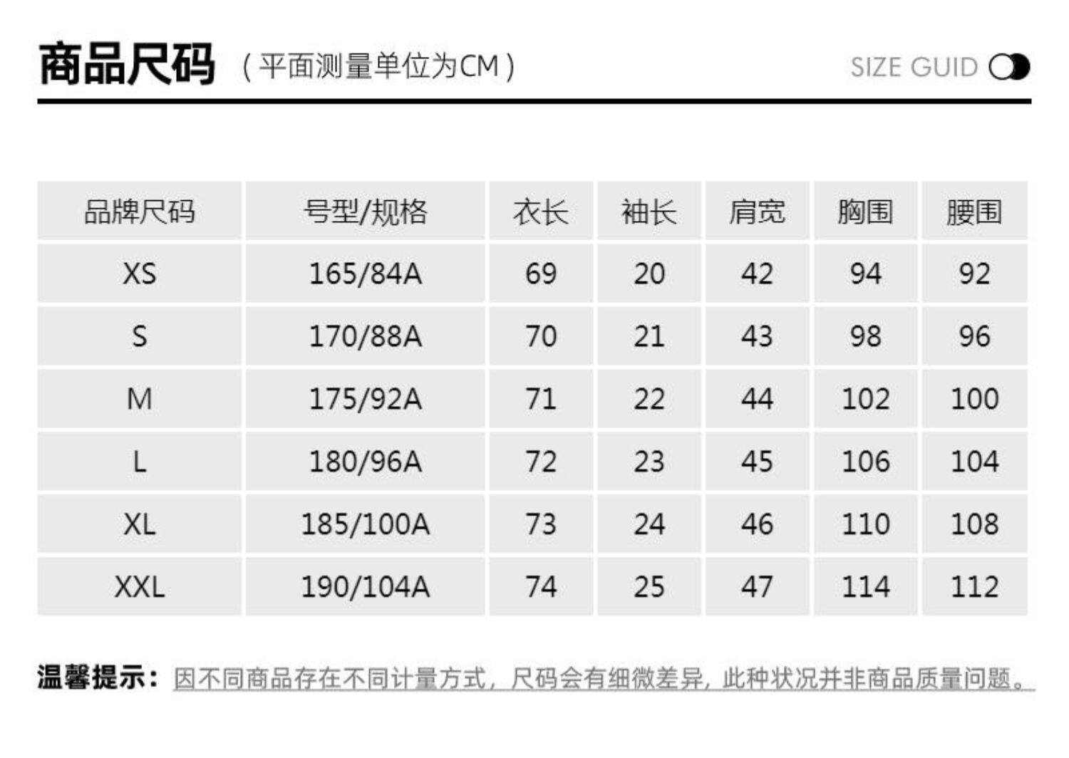- = 190/108B/XXXL 185/104B/2XL 185/100A/XL 180/96A/L
