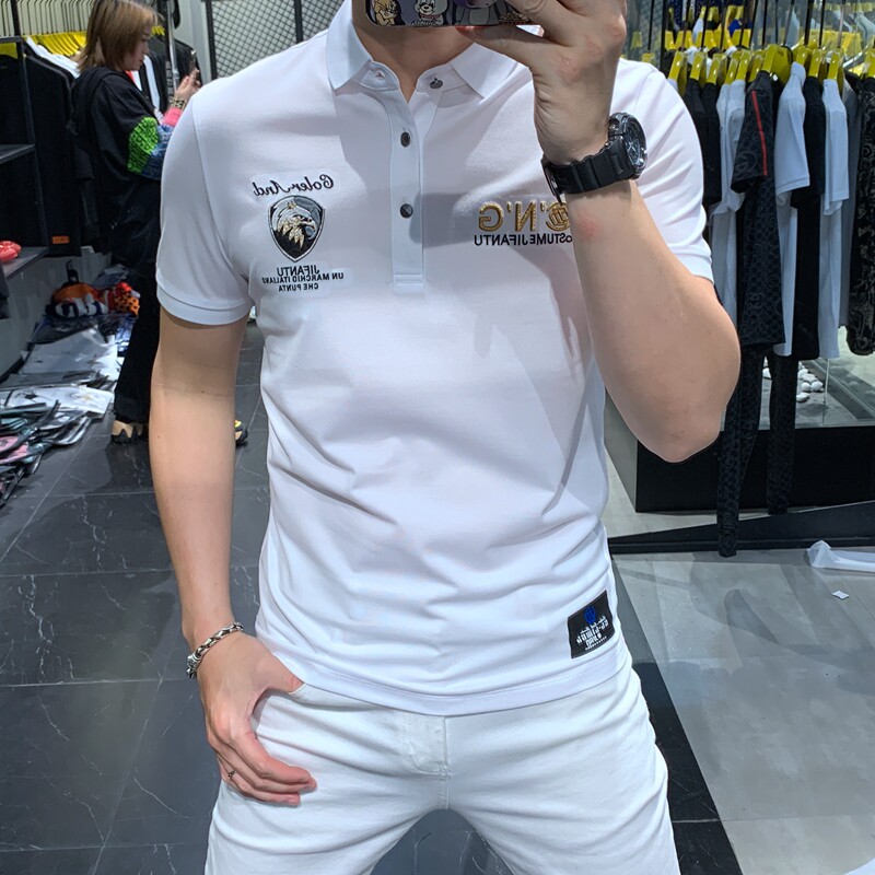 Футболка с коротким рукавом, летняя футболка polo, европейский стиль, с вышивкой