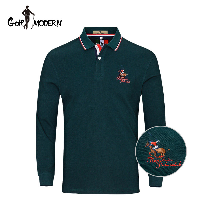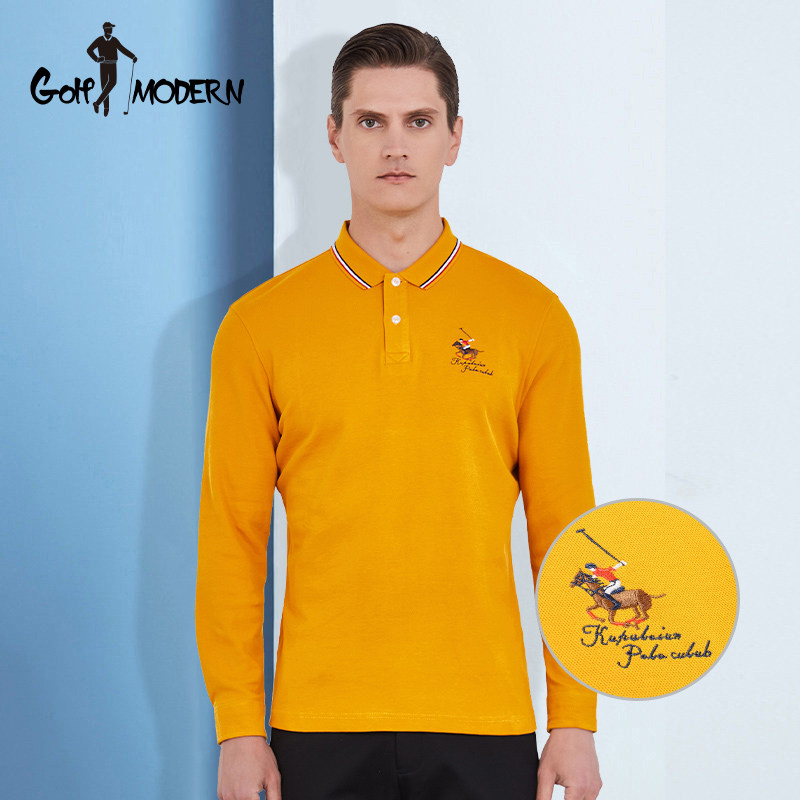 GOLF MODERN, весенне-осенняя футболка с длинными рукавами, мужская рубашка-поло среднего возраста с воротником, мужская рубашка для гольфа из Синьцзяна, длинноволокнистый хлопок