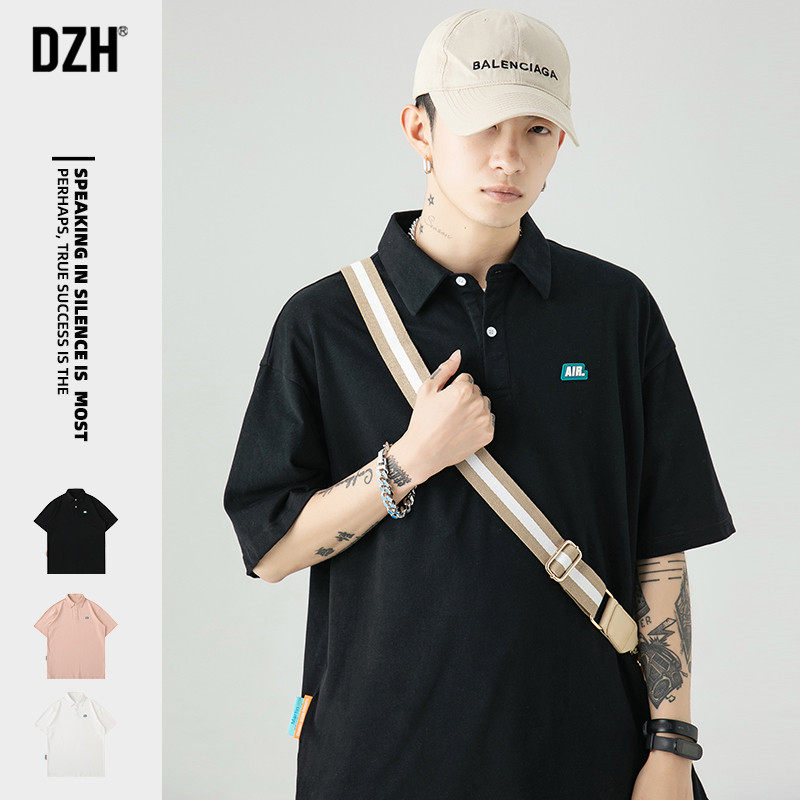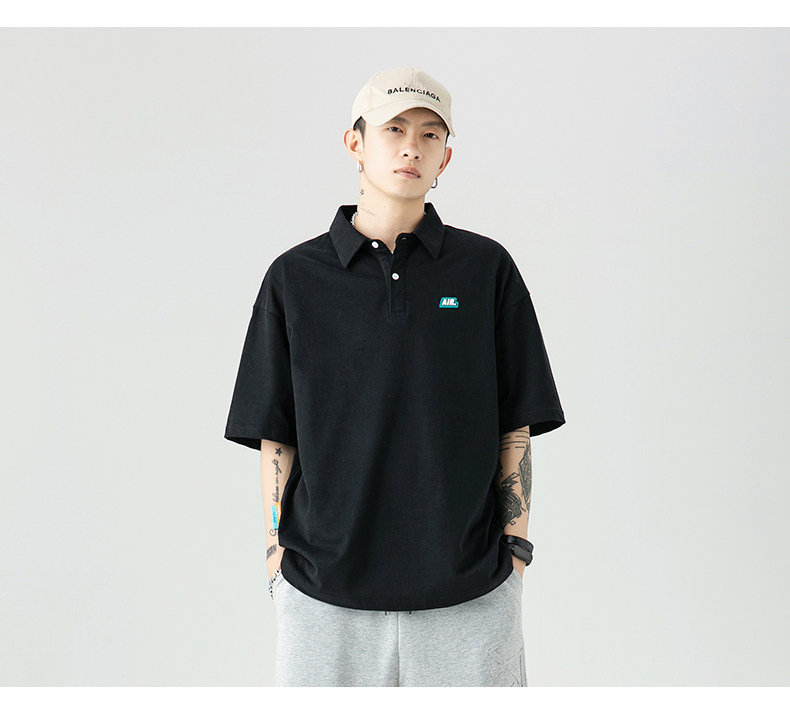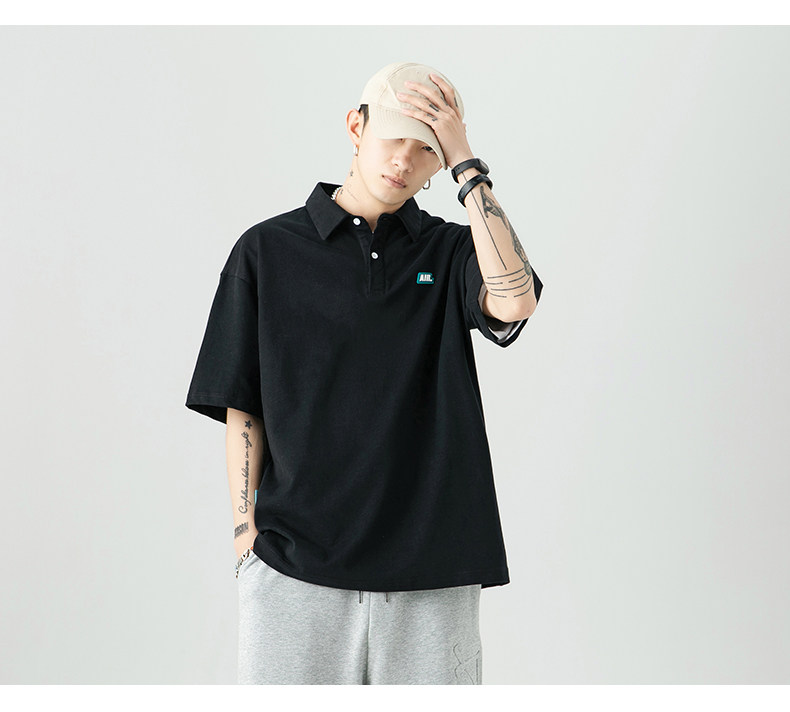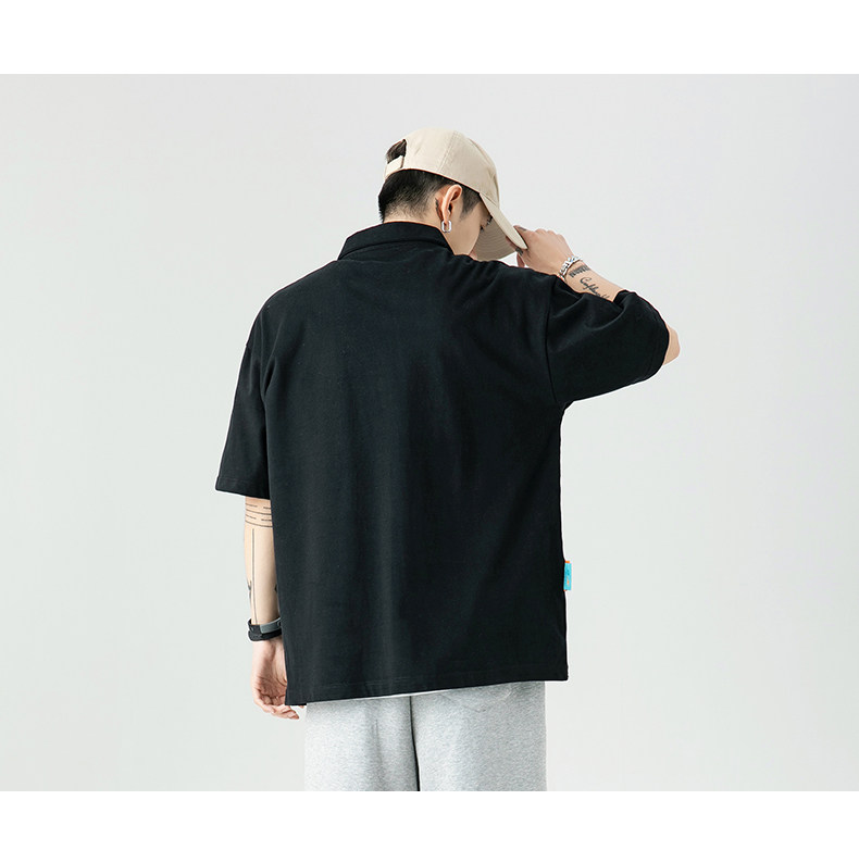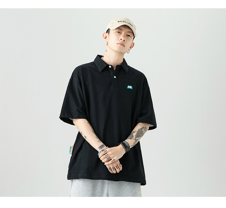 Tide, черная летняя японская хлопковая брендовая трендовая универсальная футболка polo, короткий рукав, оверсайз
