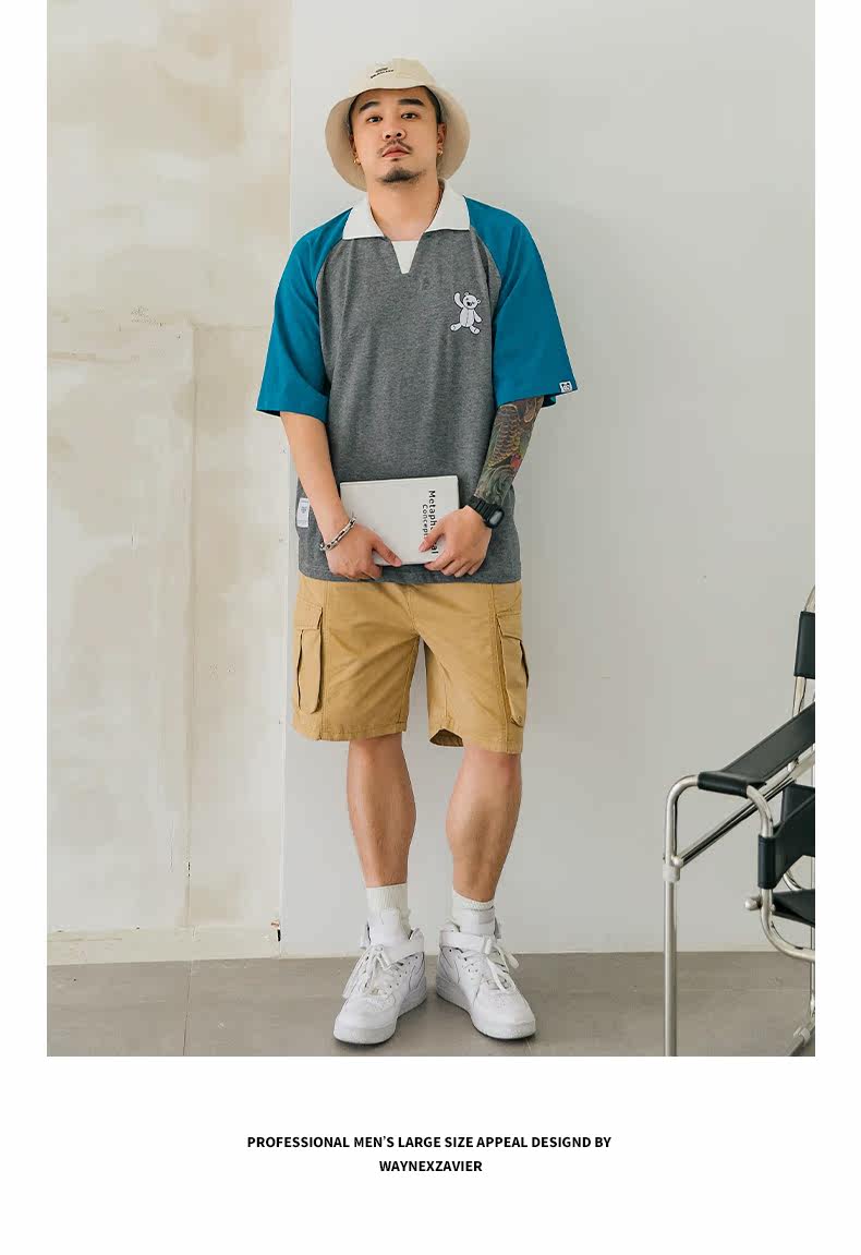 Мультяшный комплект, футболка polo, большой размер