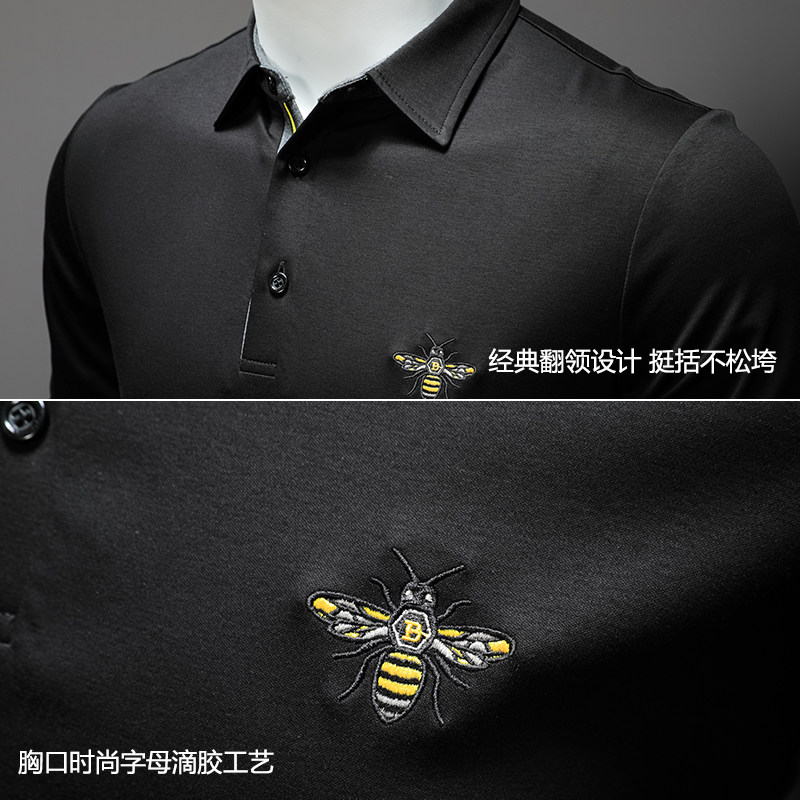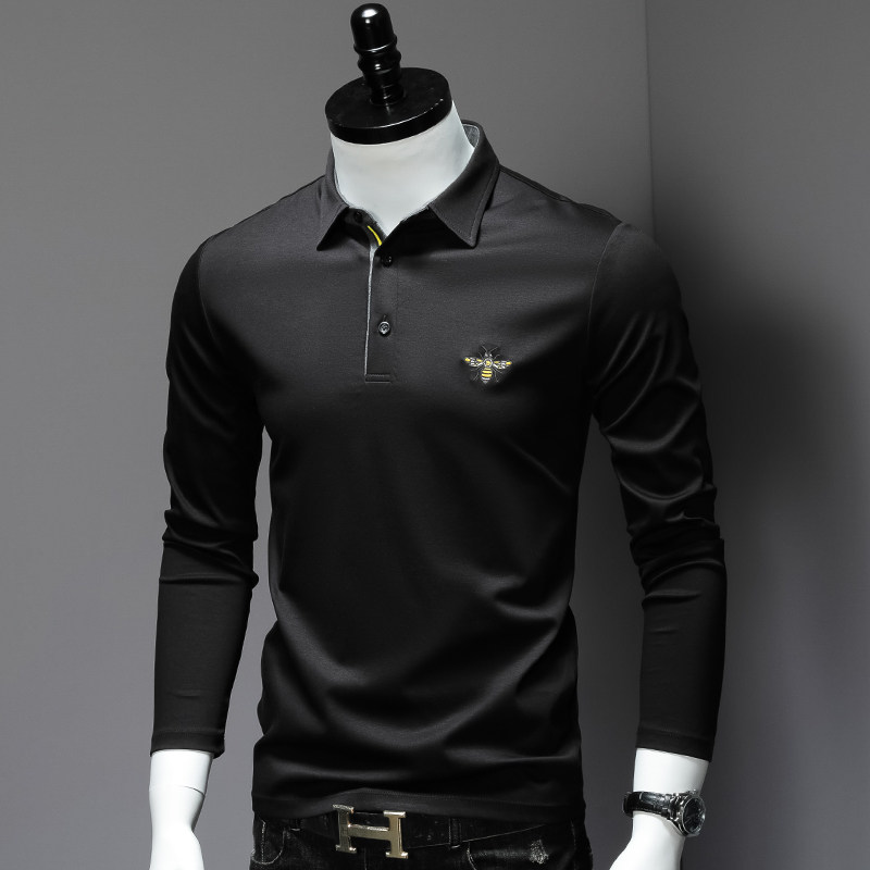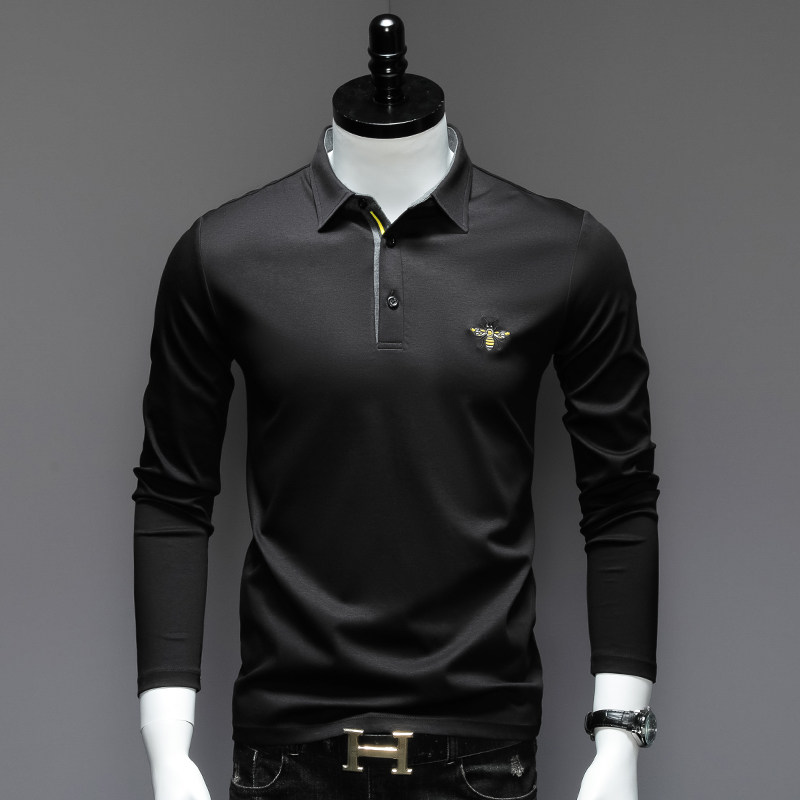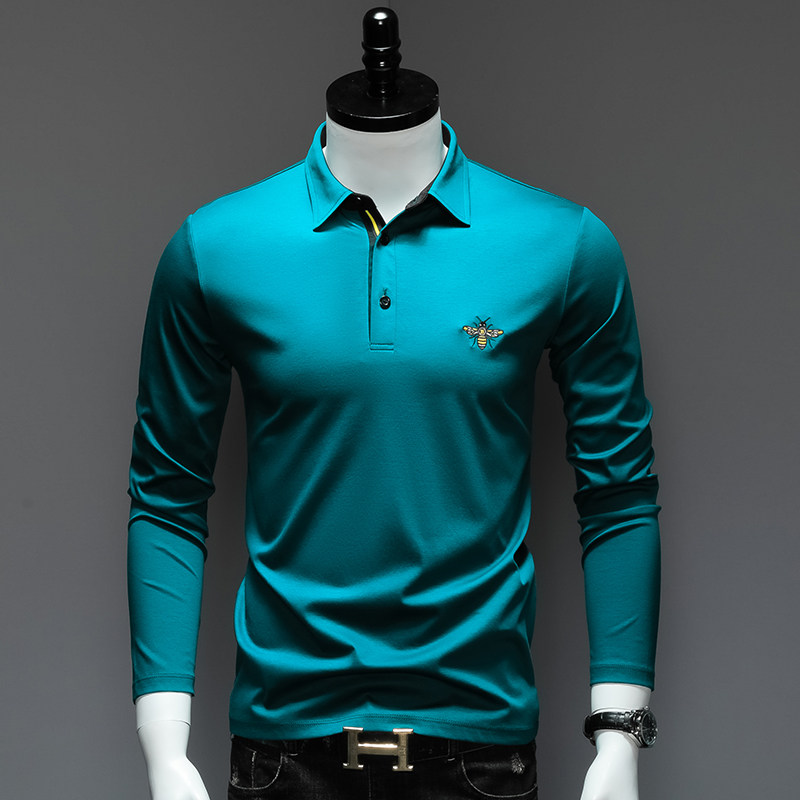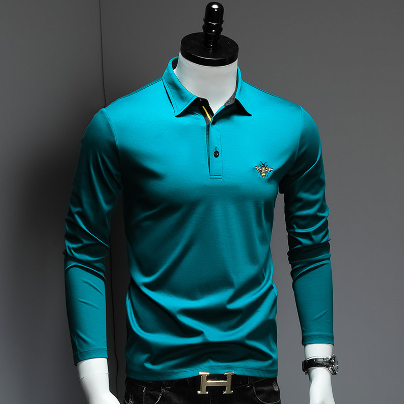 Мужской осенний хлопковый лонгслив, базовая приятная телу футболка polo, облегающий крой, с вышивкой