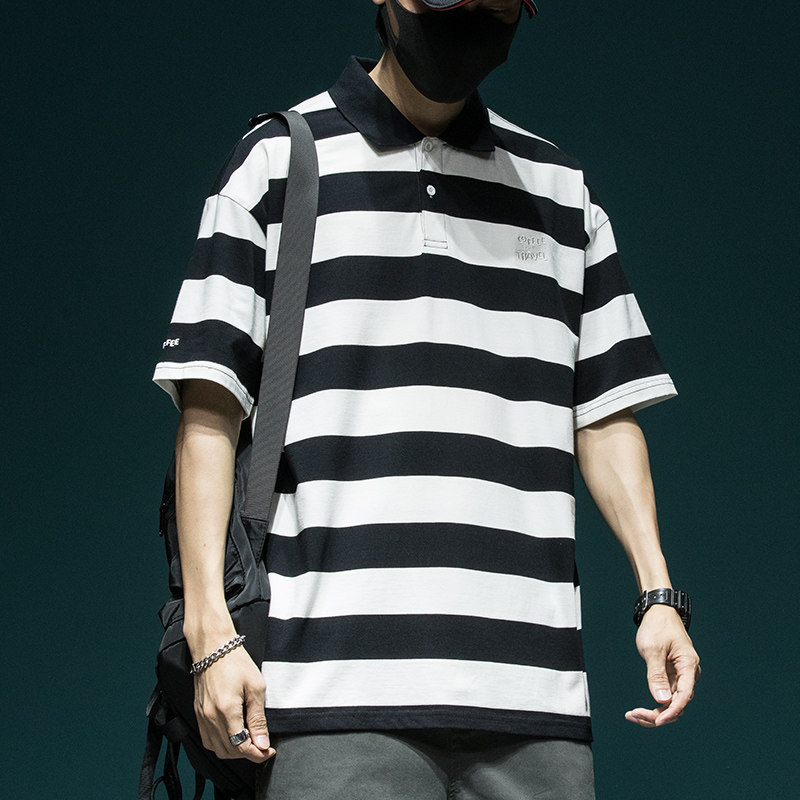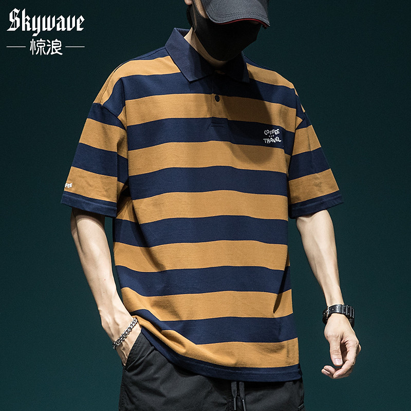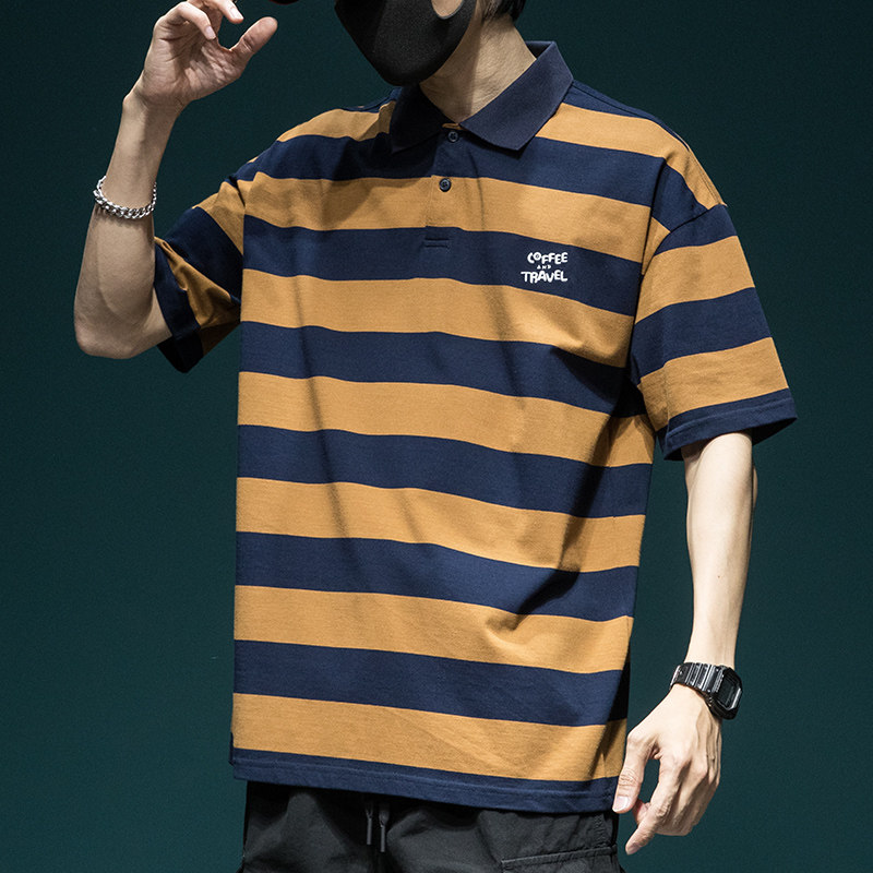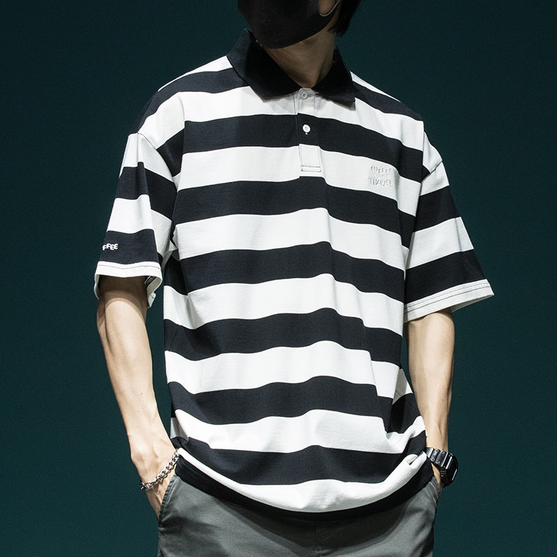 Мужская летняя хлопковая трендовая футболка polo, оверсайз