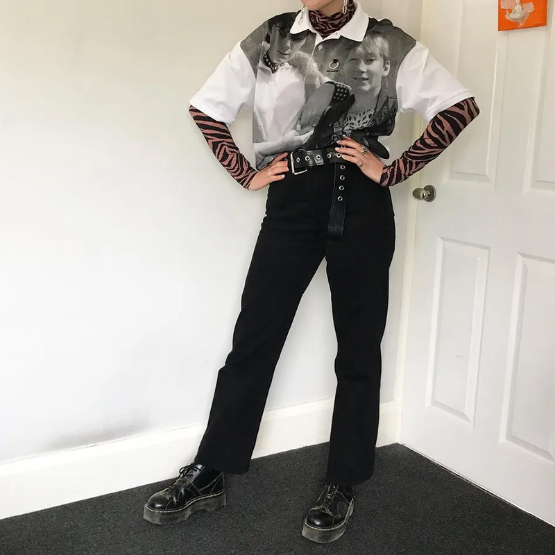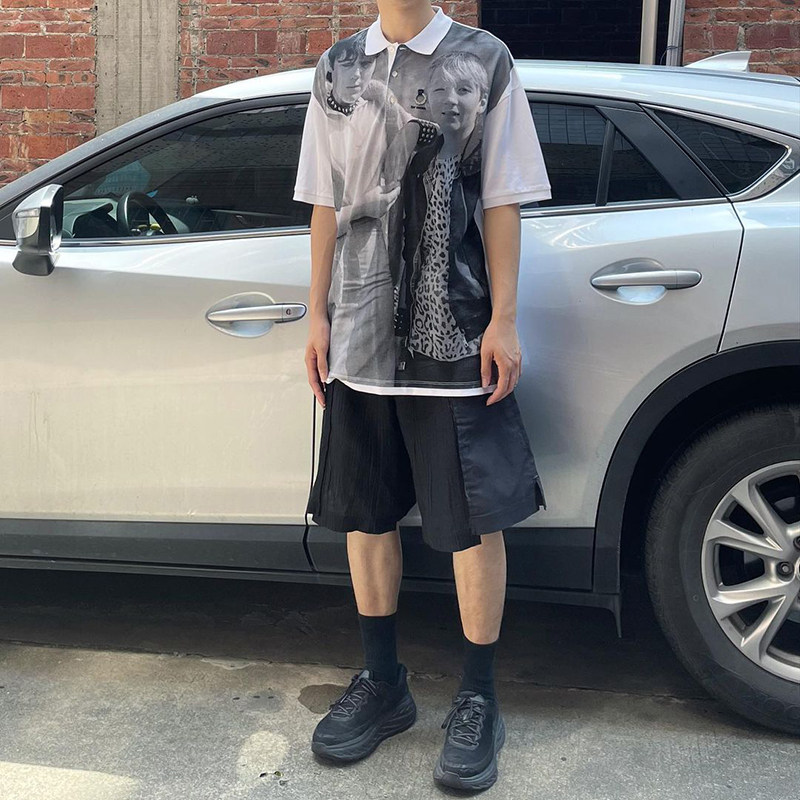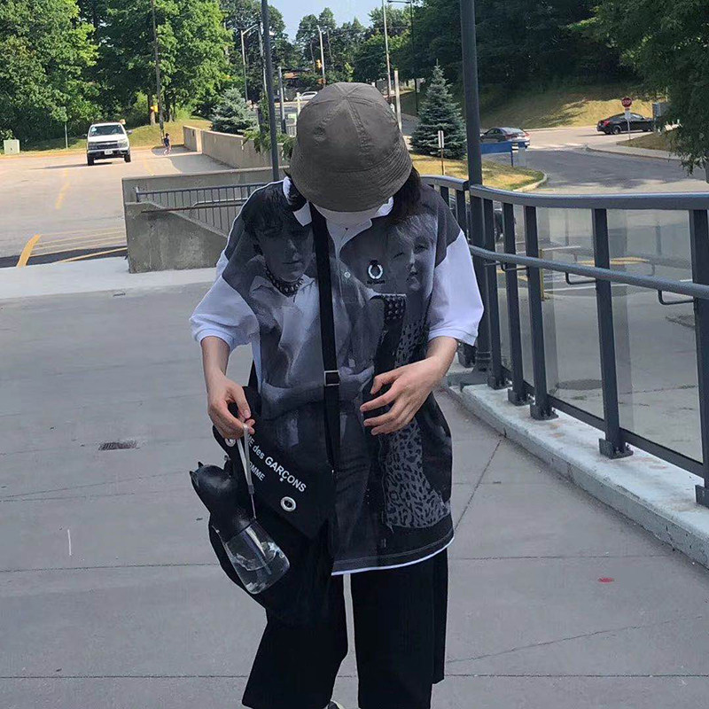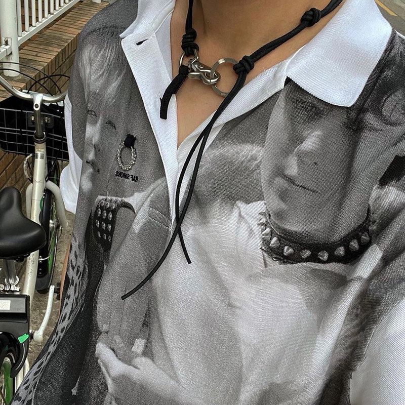 RAF 19FW Simons Punk Metal Subculture Portrait Printing свободная половина рубашки поло