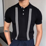 Модная черная футболка polo, европейский стиль, короткий рукав, с рукавом