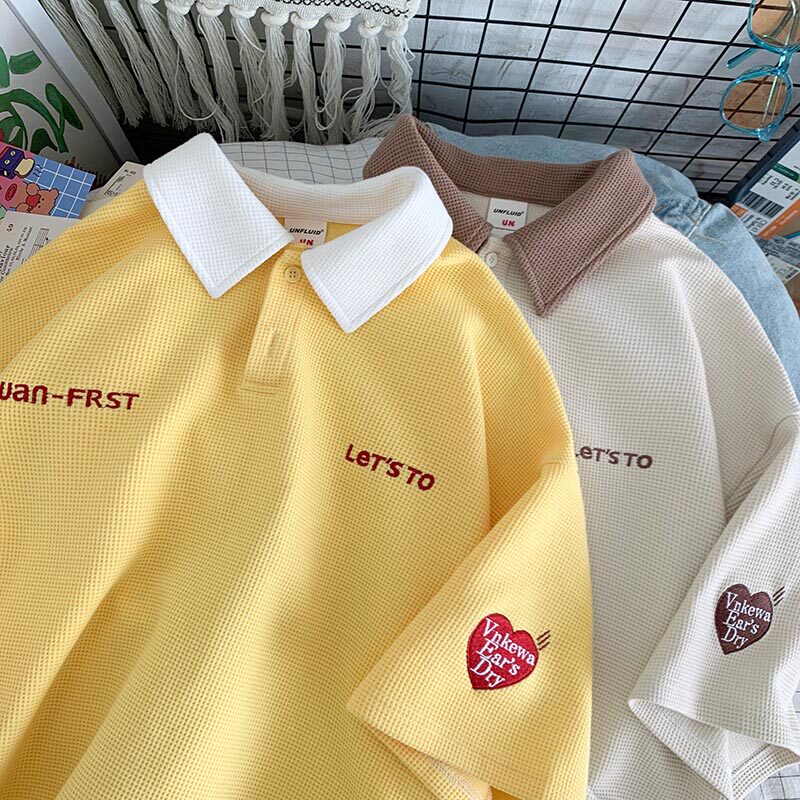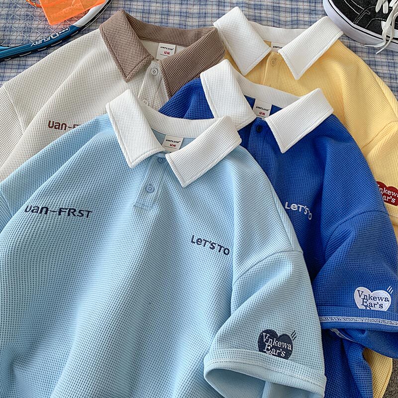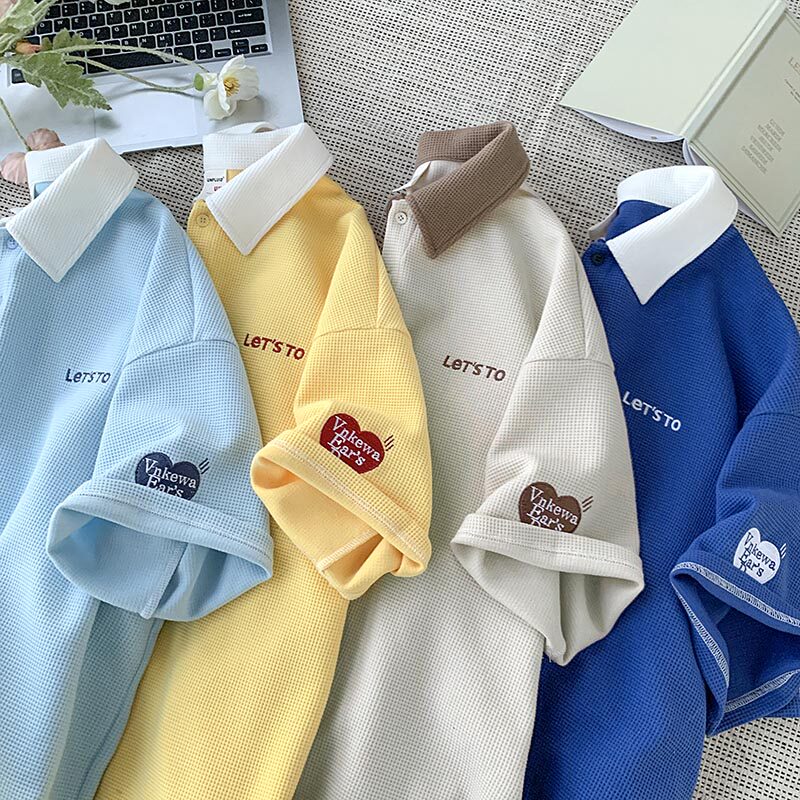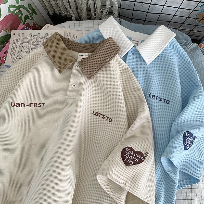 Tide, синяя футболка polo, рубашка, футболка с коротким рукавом, оверсайз, с вышивкой
