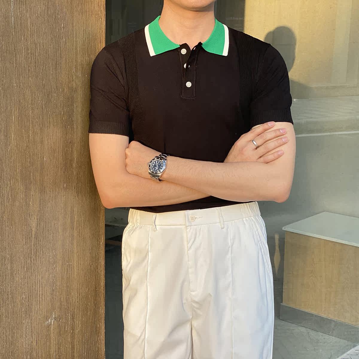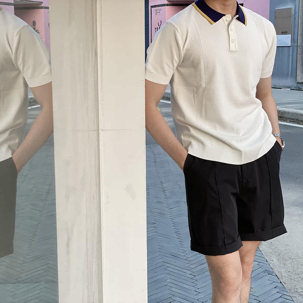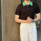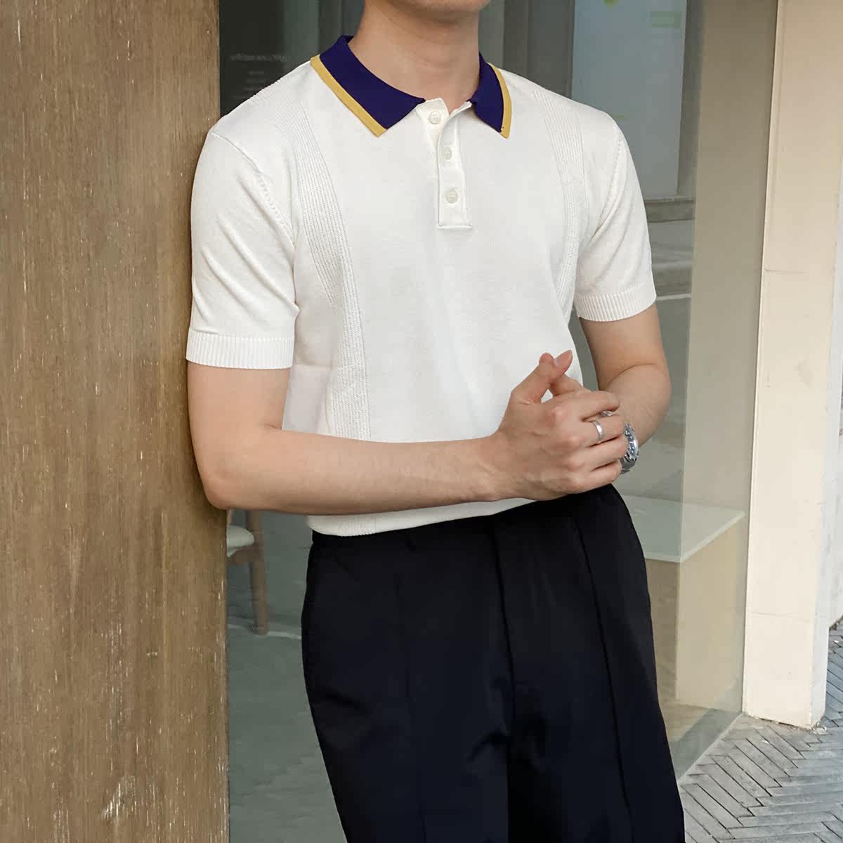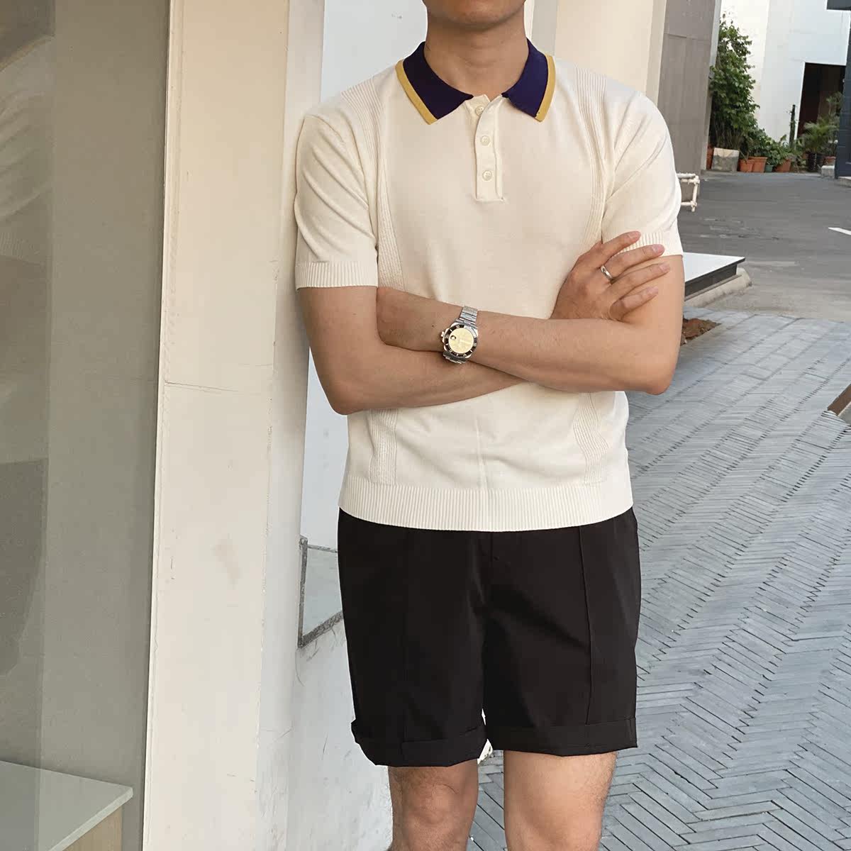 Шелковая летняя одежда, воротник, трикотажная футболка polo для отдыха, короткий рукав, в корейском стиле