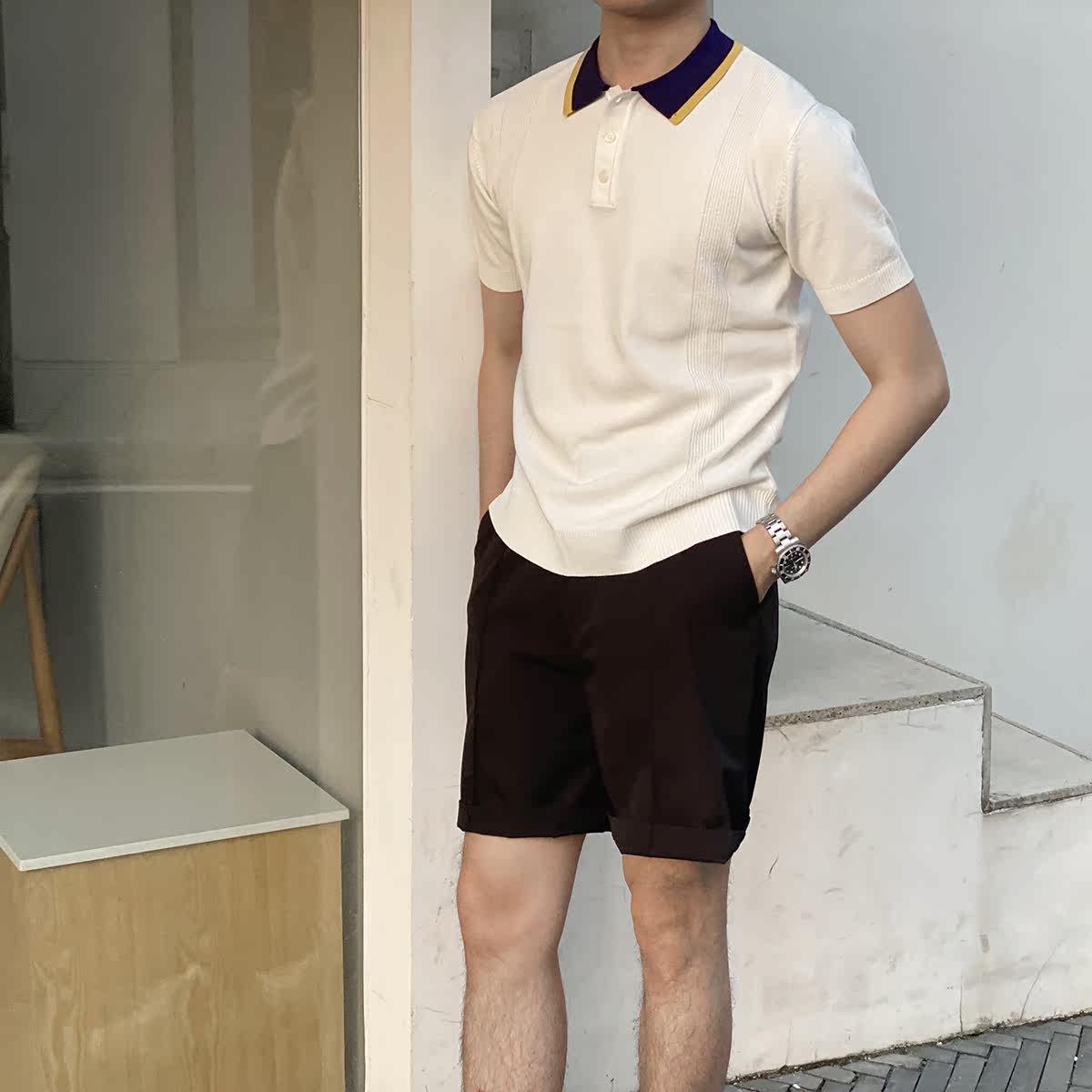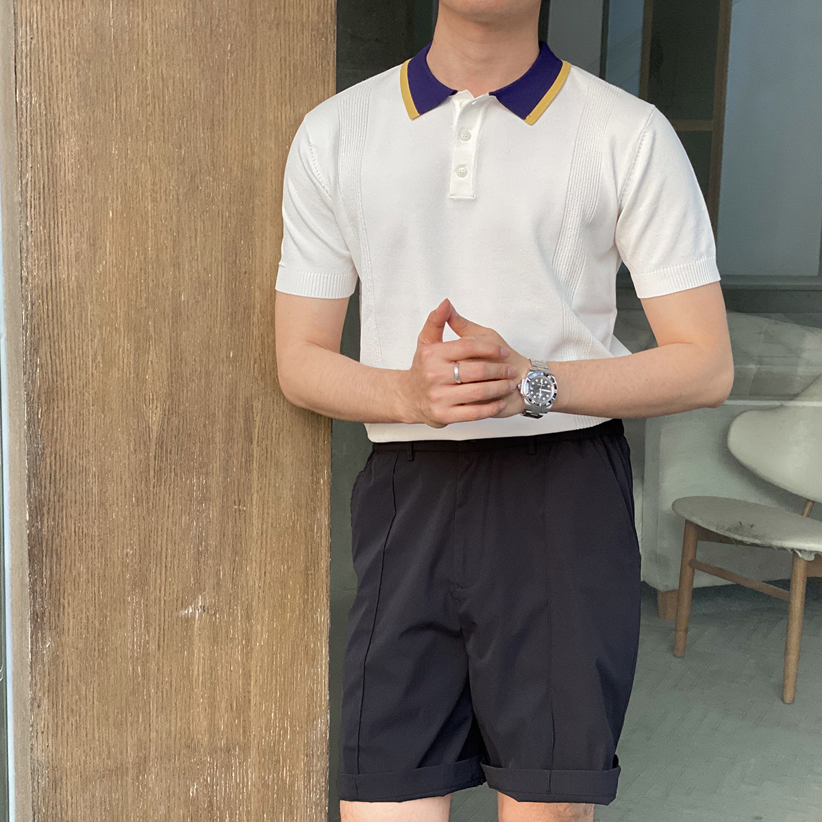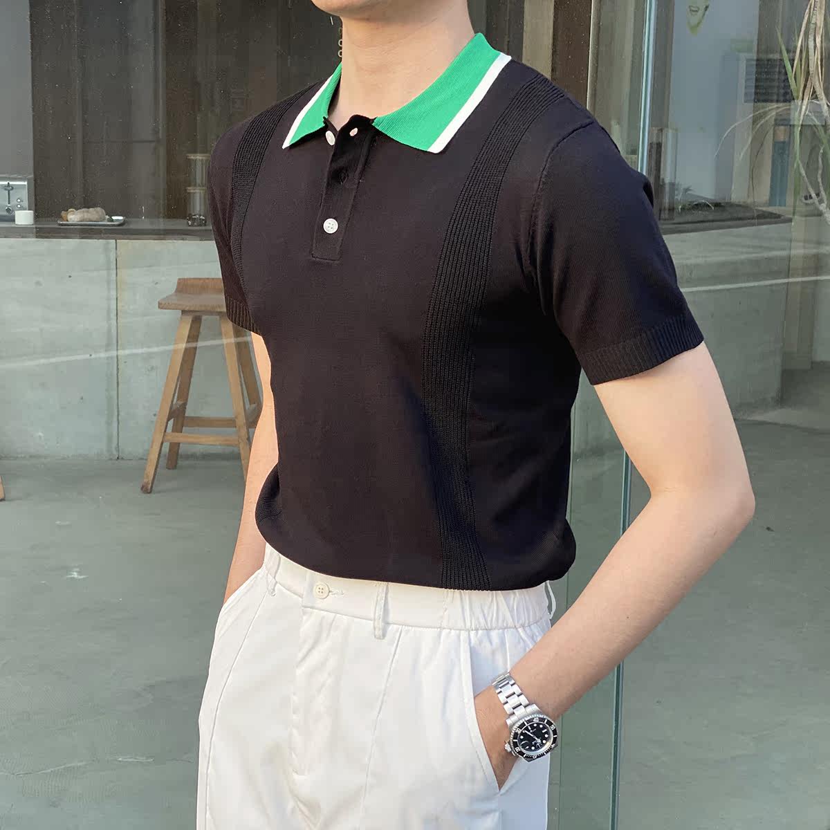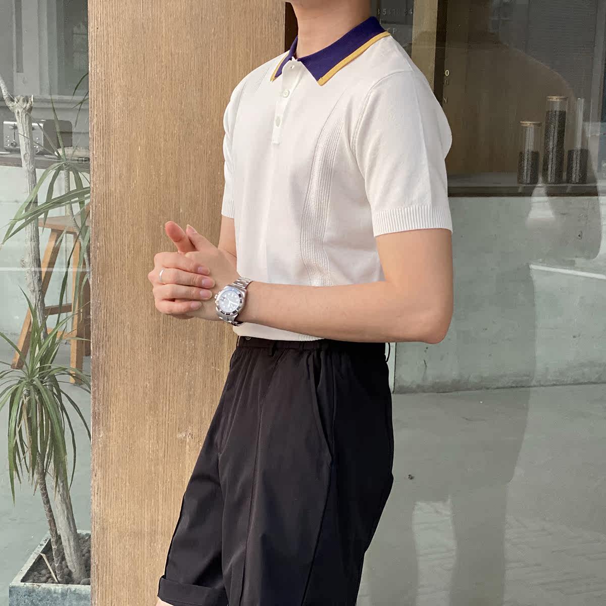 Шелковая летняя одежда, воротник, трикотажная футболка polo для отдыха, короткий рукав, в корейском стиле