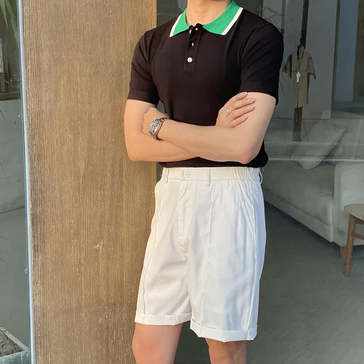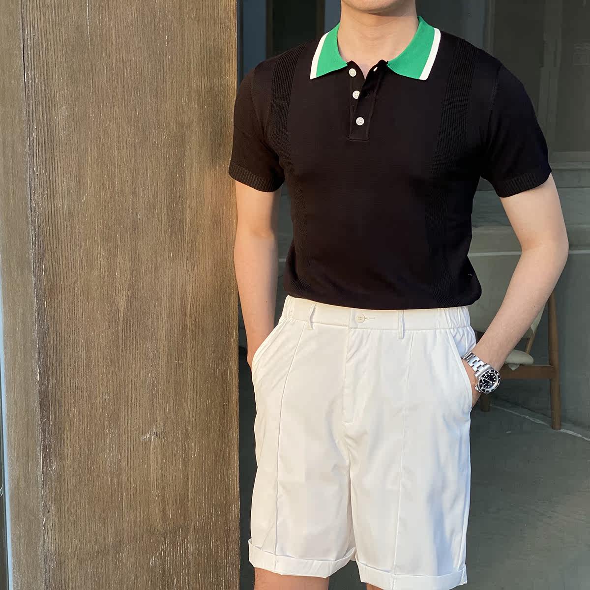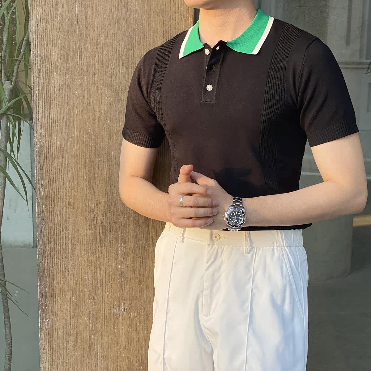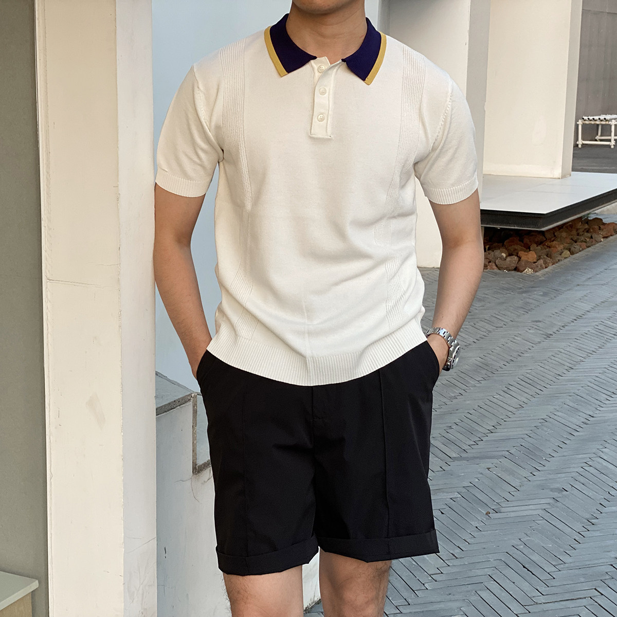 Шелковая летняя одежда, воротник, трикотажная футболка polo для отдыха, короткий рукав, в корейском стиле