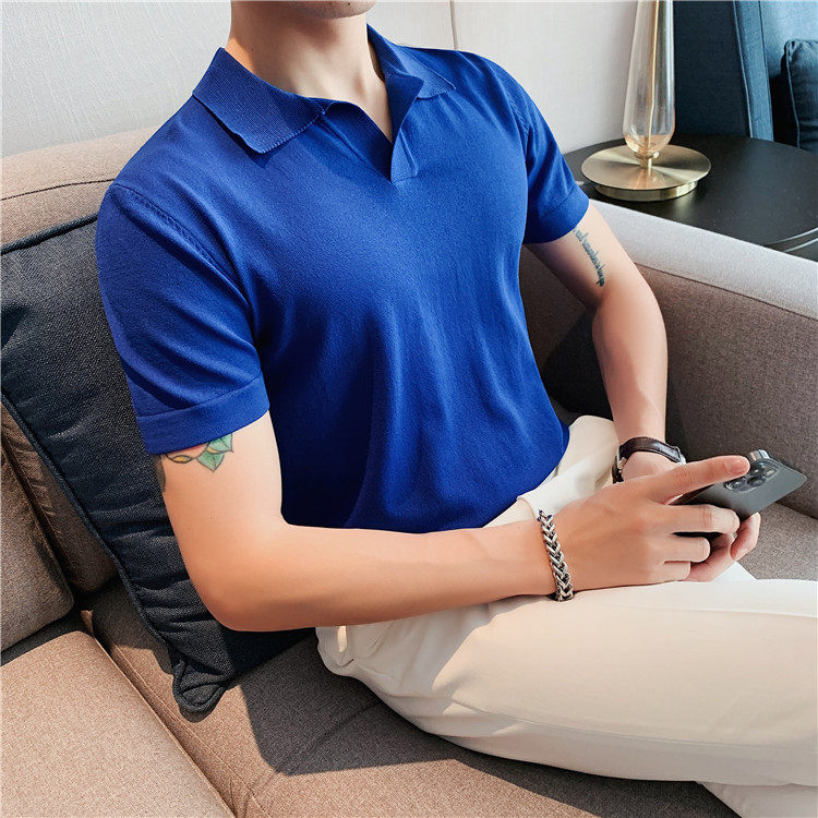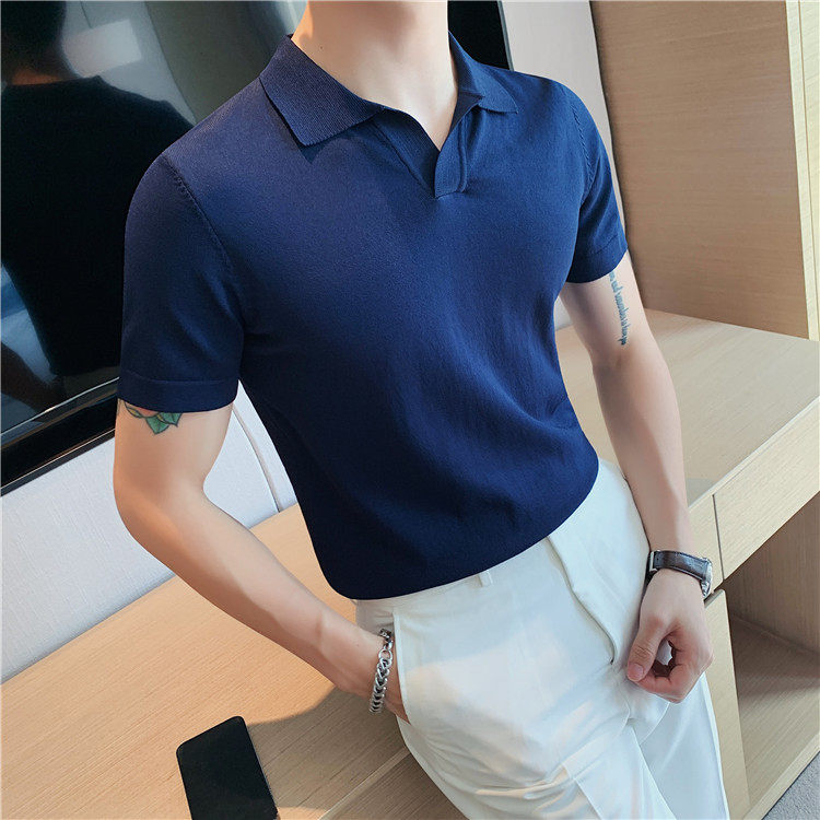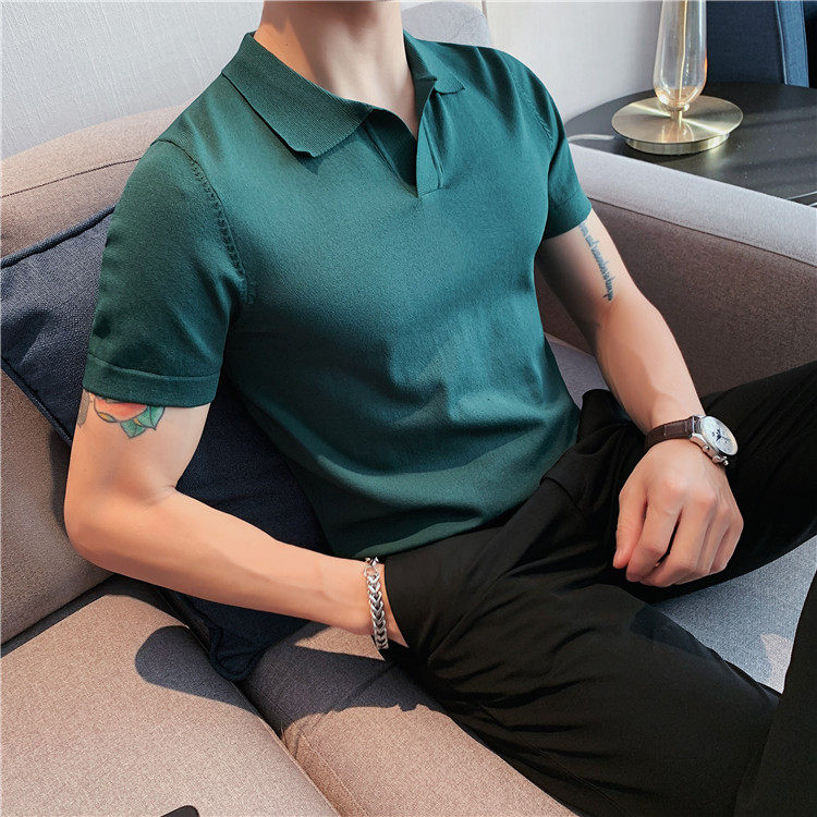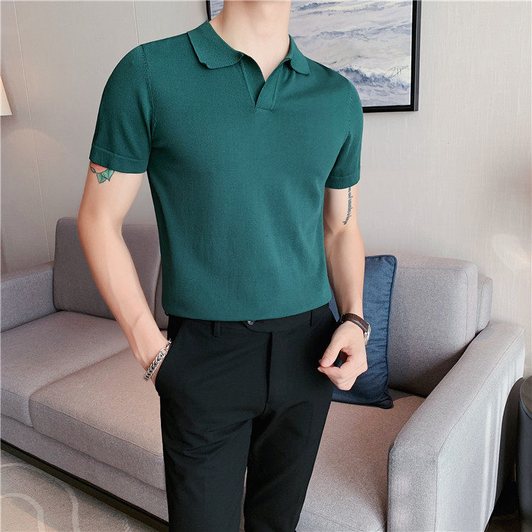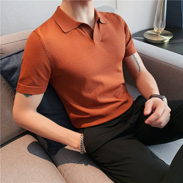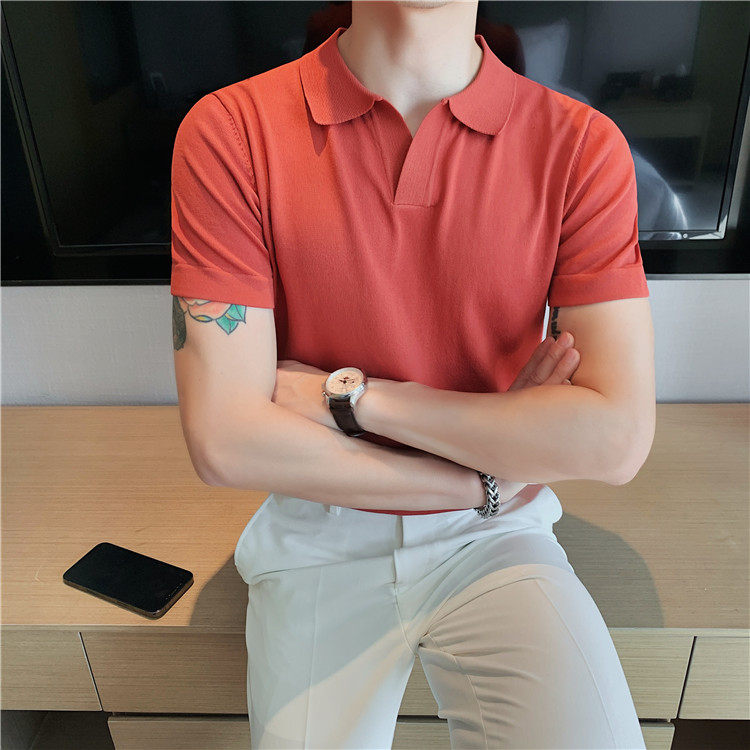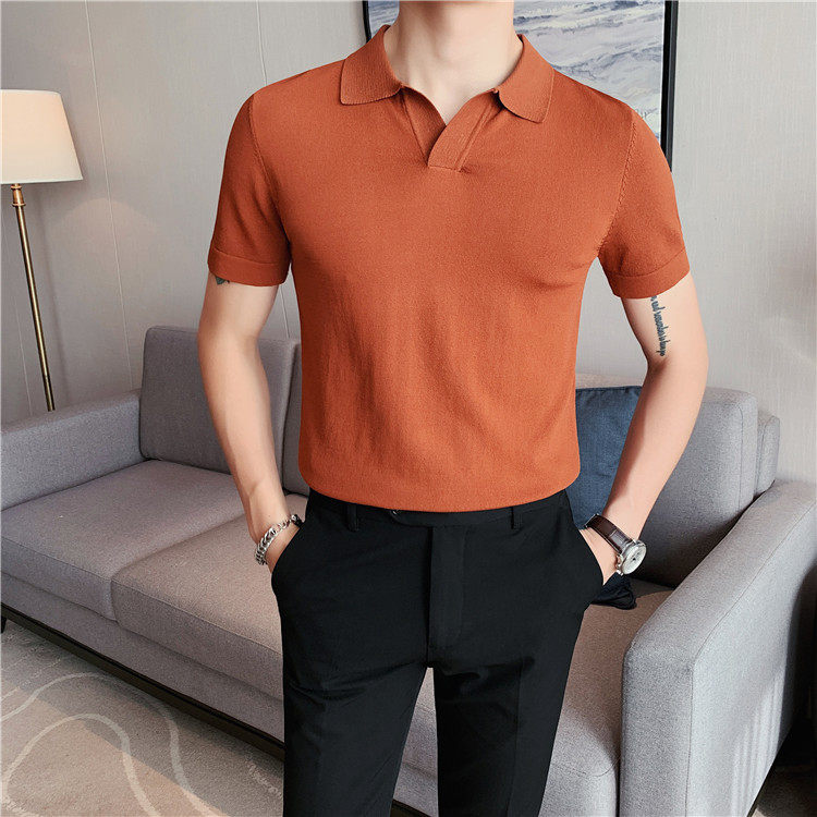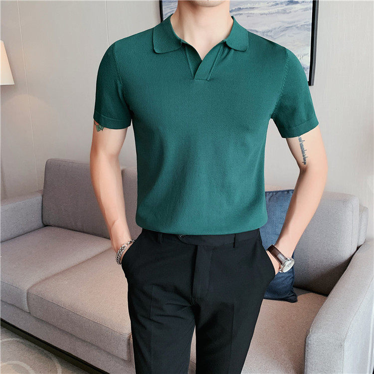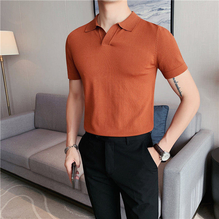 Элитная футболка polo, шелковая трикотажная футболка с коротким рукавом, облегающий крой