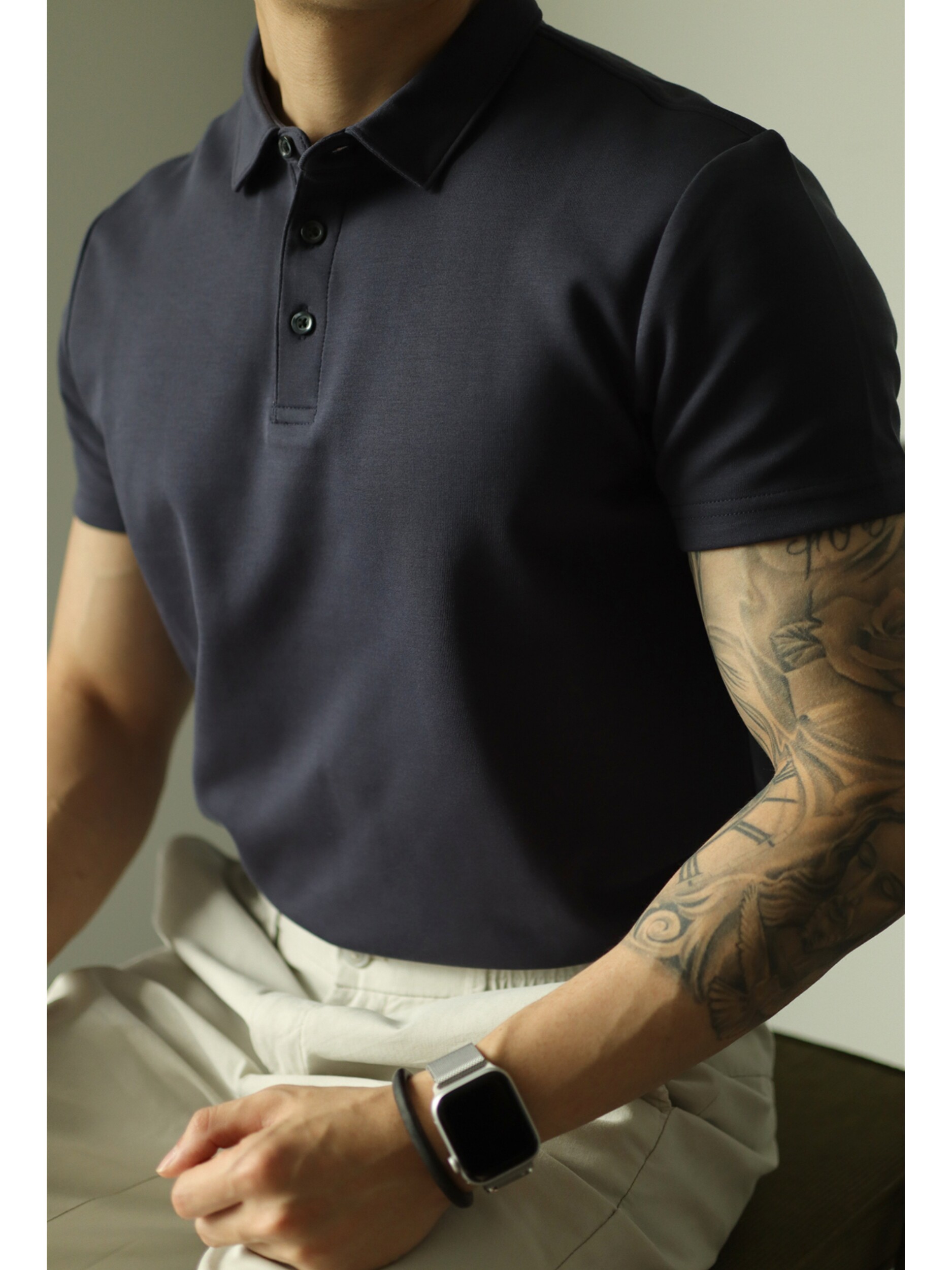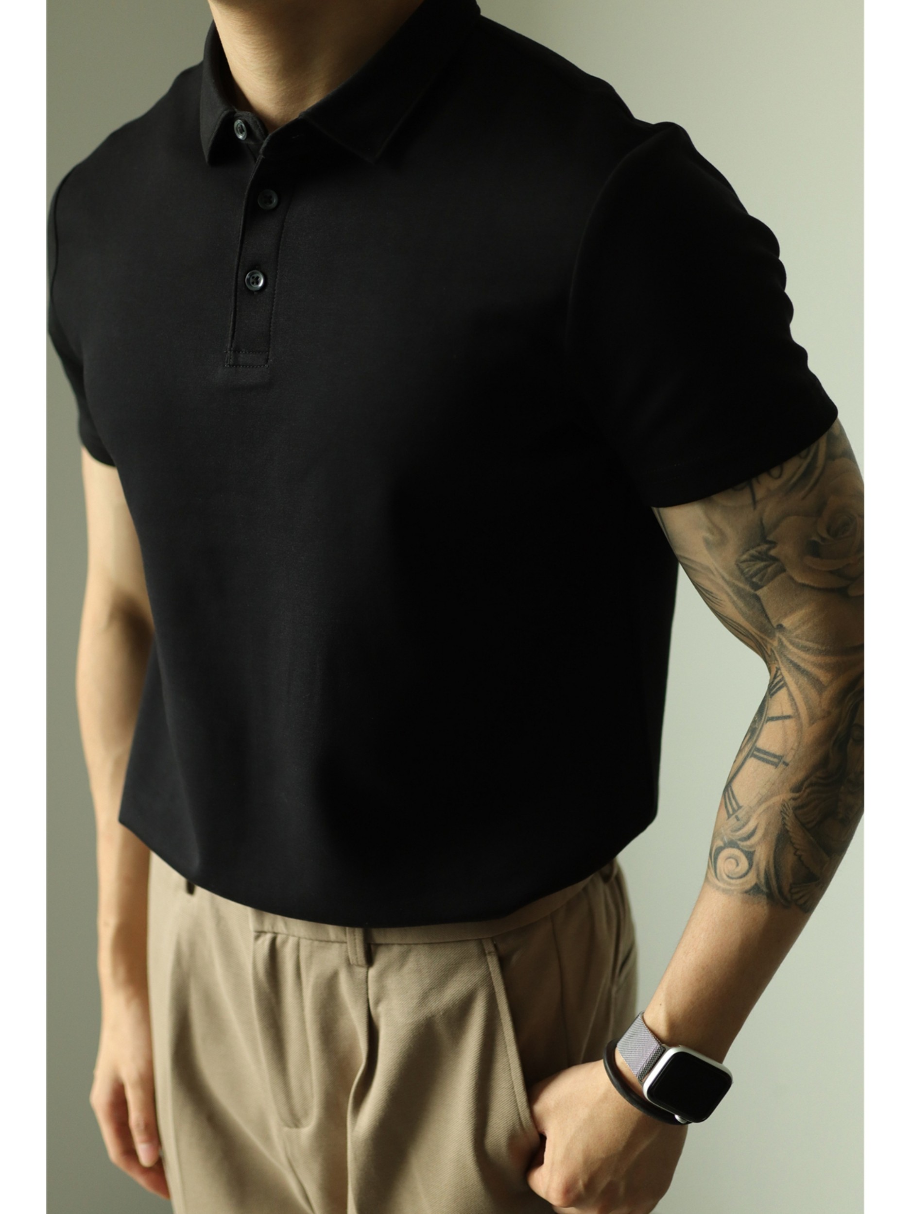 YUXIAN Yu Xian 𫔮Двусторонняя хлопковая однотонная рубашка ПОЛО с воздушным слоем с лацканами, легкая деловая мужская повседневная рубашка с короткими рукавами для взрослых, весна и лето