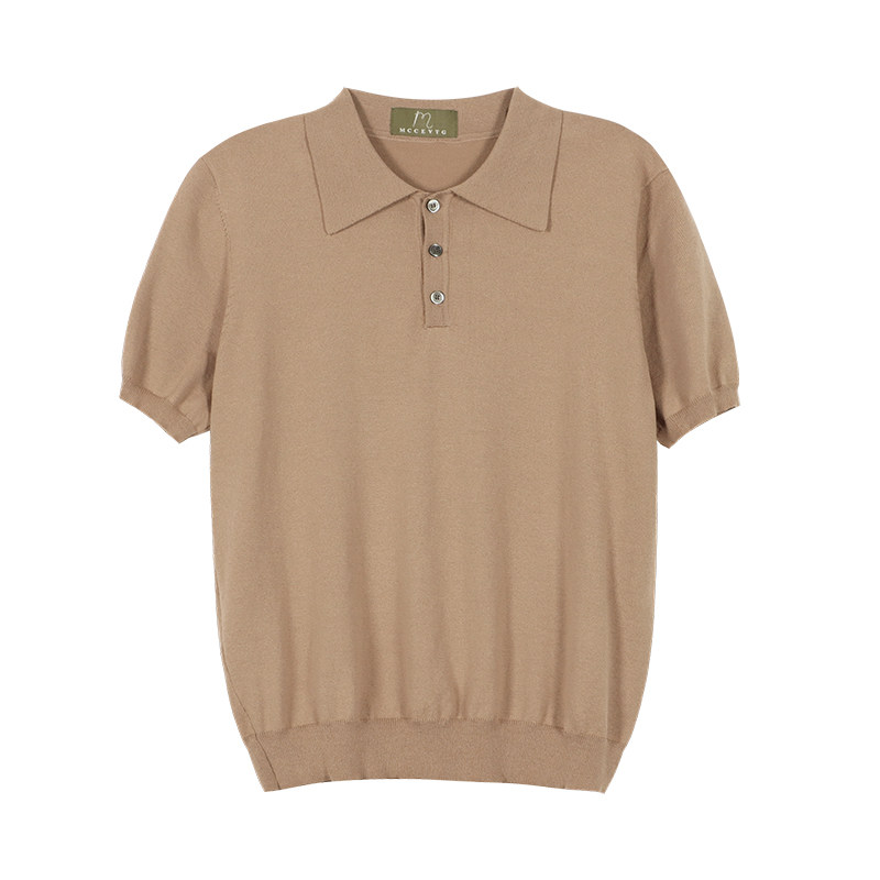 Бархатная хлопковая ретро трикотажная футболка polo, облегающий крой, изысканный стиль