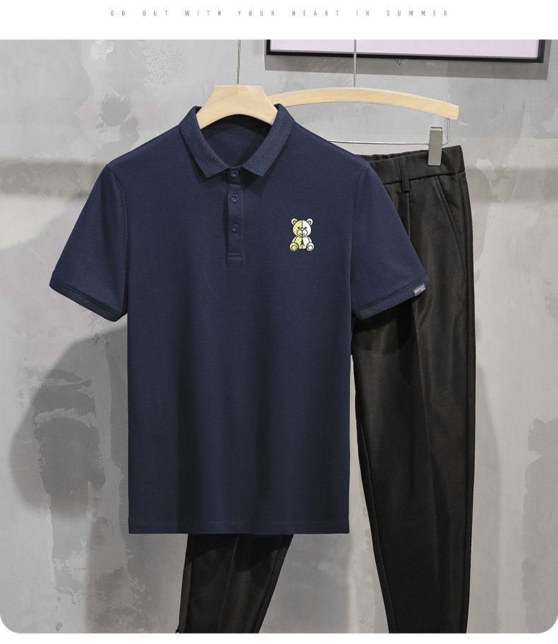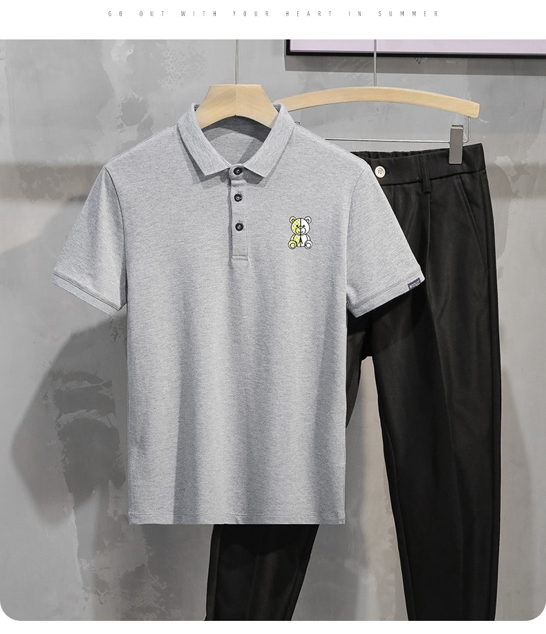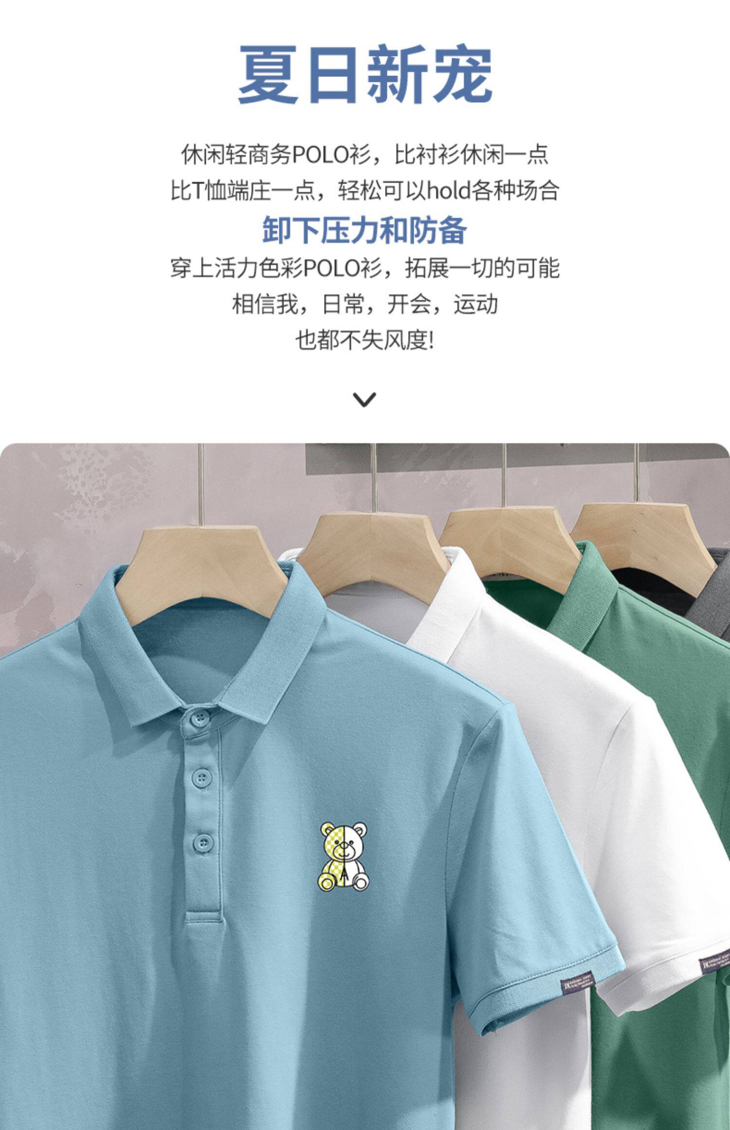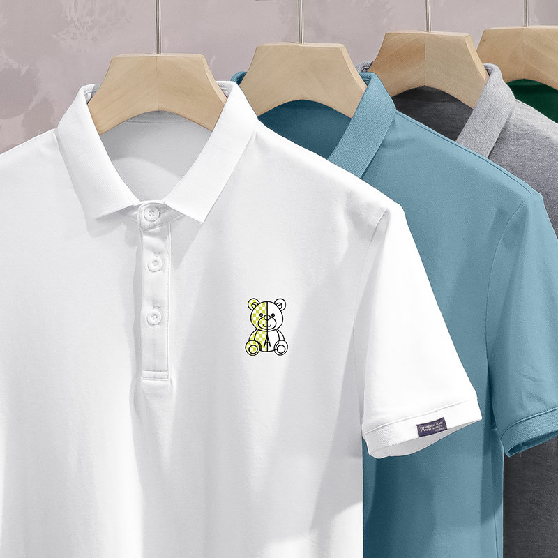 Tide, летняя белая трендовая футболка polo, с медвежатами, высокий воротник