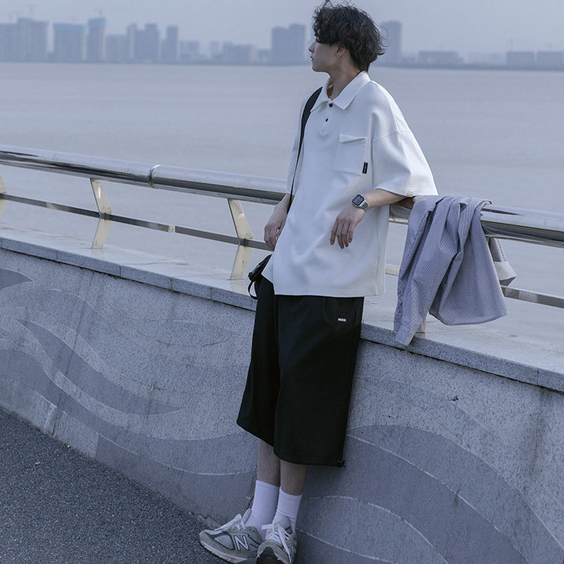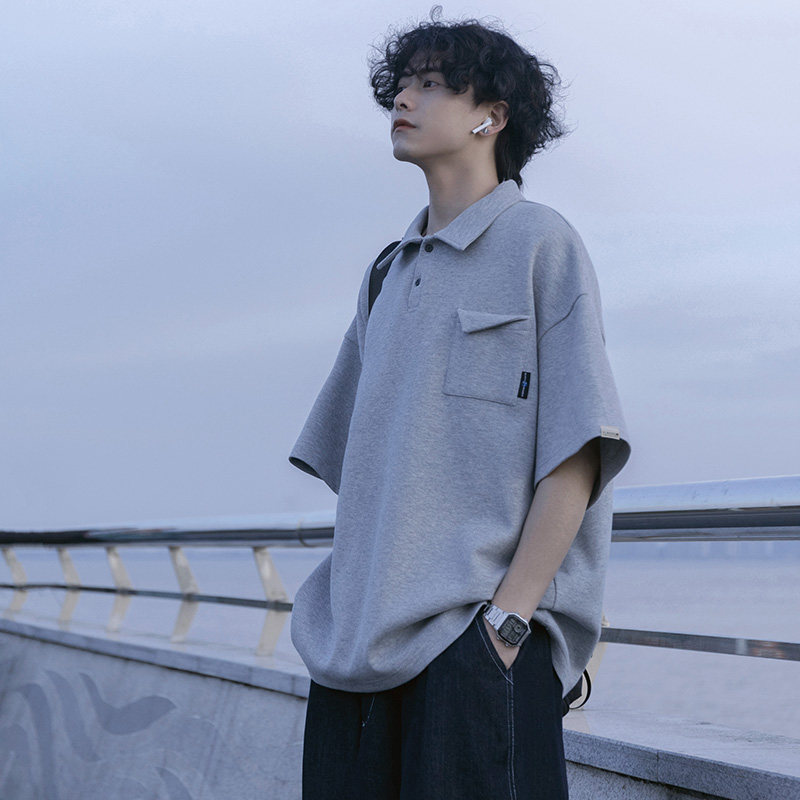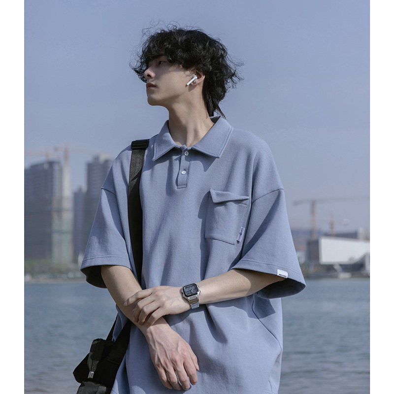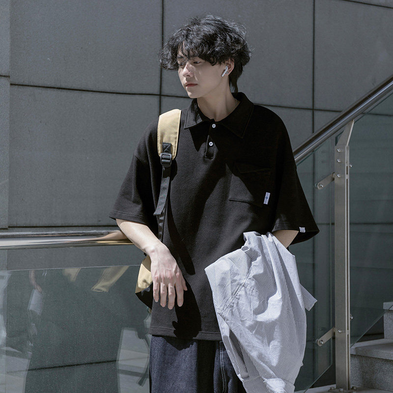 Японская футболка polo, летняя трендовая рубашка, оверсайз, высокий воротник