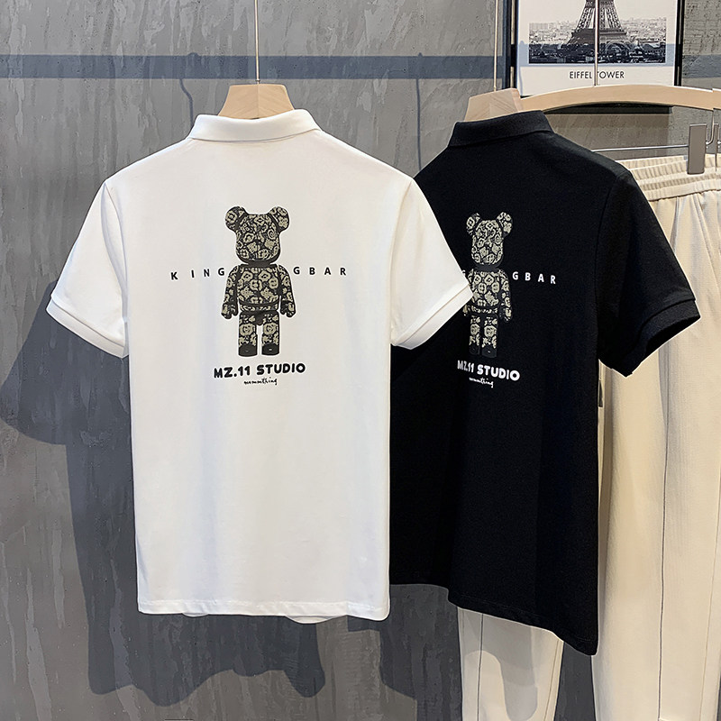 Летняя футболка с коротким рукавом, футболка polo, Гонконг, с медвежатами, с вышивкой