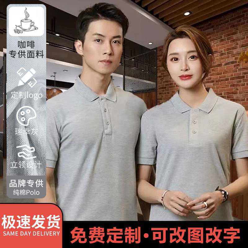 Хлопковая кофейная футболка polo для работы, делается под заказ, с печатью вашего логотипа, короткий рукав