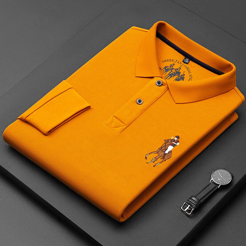Демисезонная футболка polo, элитный хлопковый лонгслив, с вышивкой