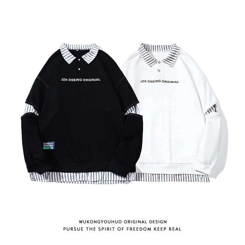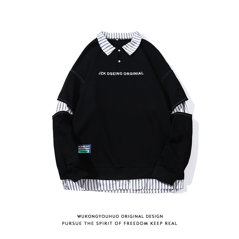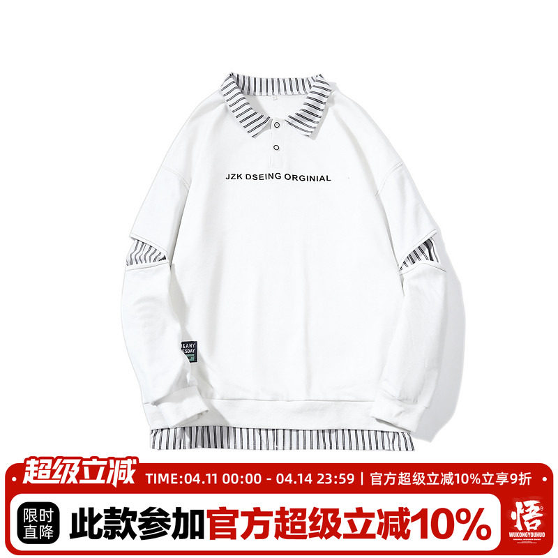悟空有货 Дизайнерский комплект, весенний свитшот, универсальный лонгслив, тренд сезона, воротник поло, оверсайз, классическая длина