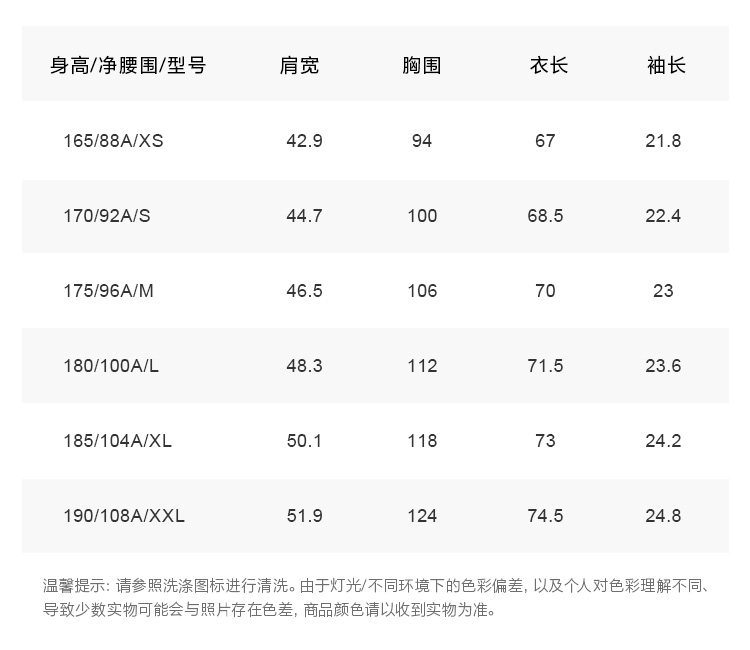 | Размер: | 165/88A/XS, 170/92A/S, 175/96A/M, 180/100A/L, 185/104A/XL, 190/108A/XXL |