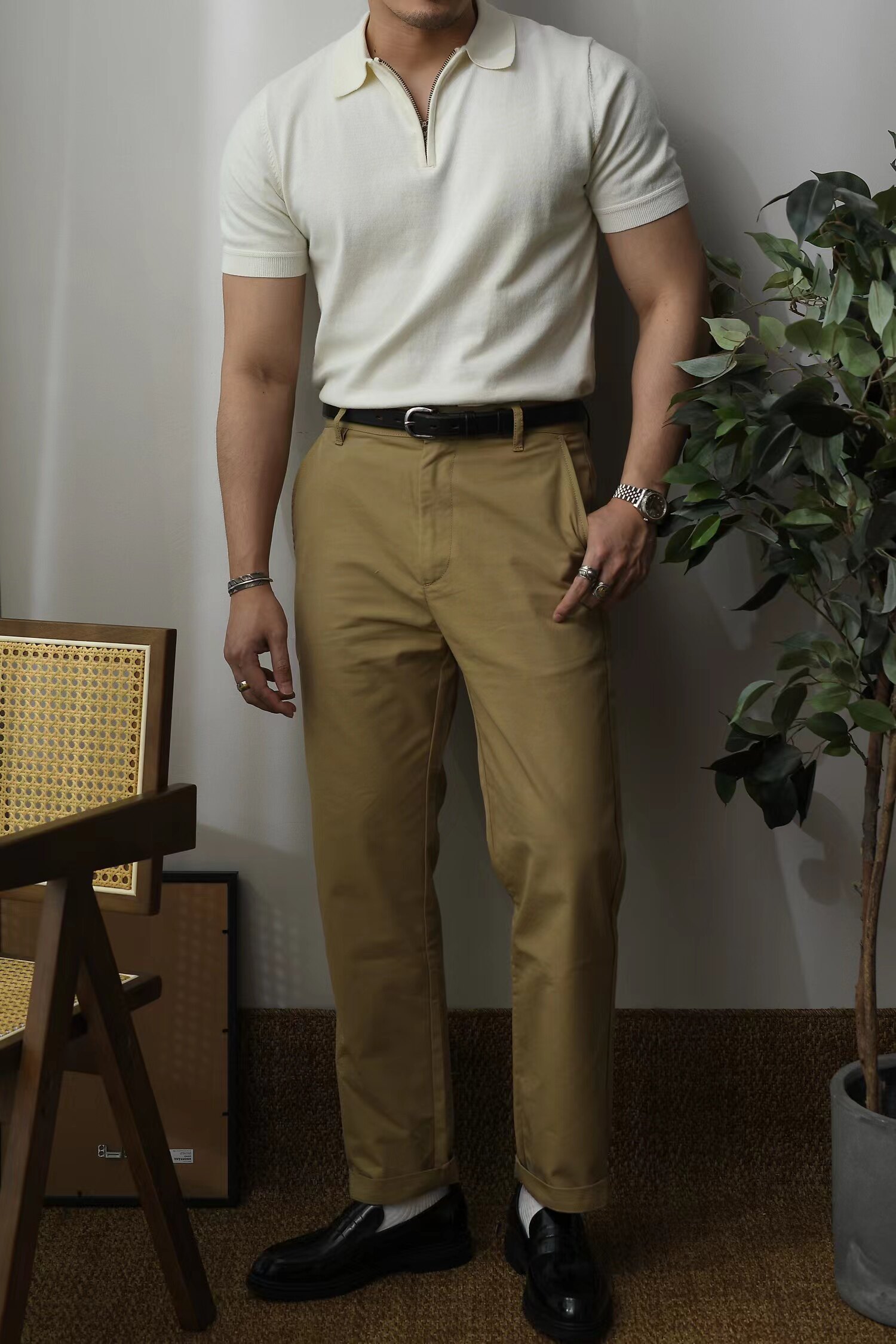 Хлопковая хаки летняя футболка polo для работы, в американском стиле