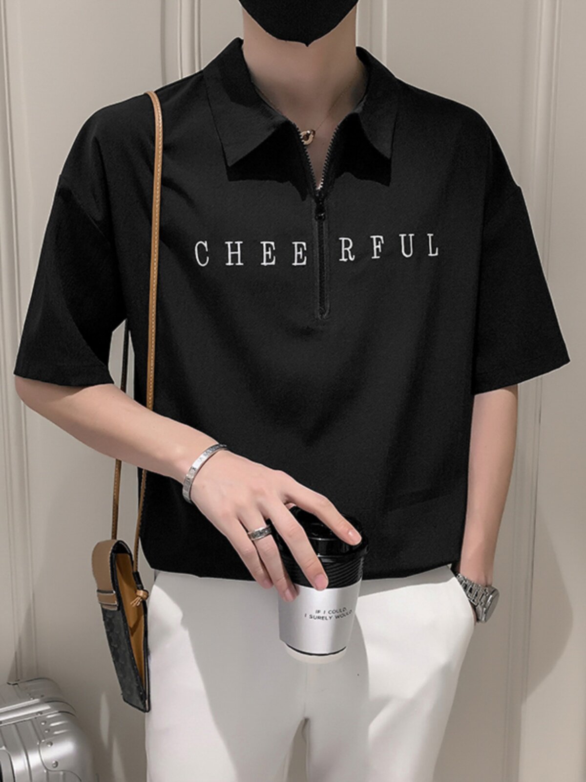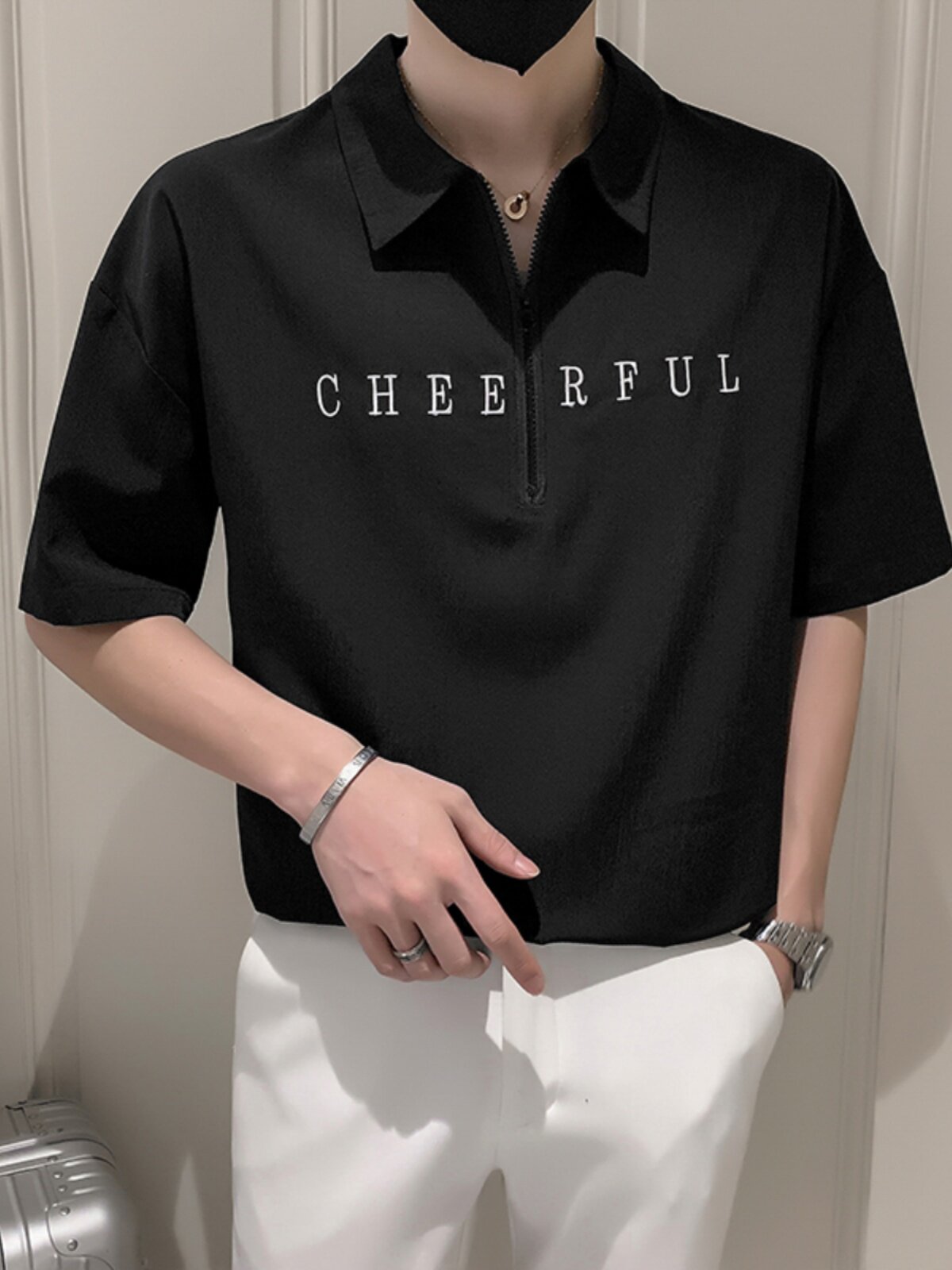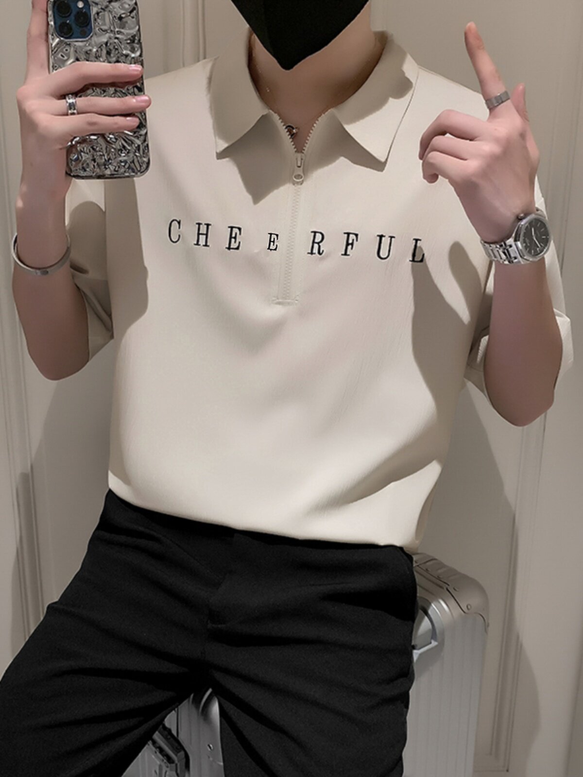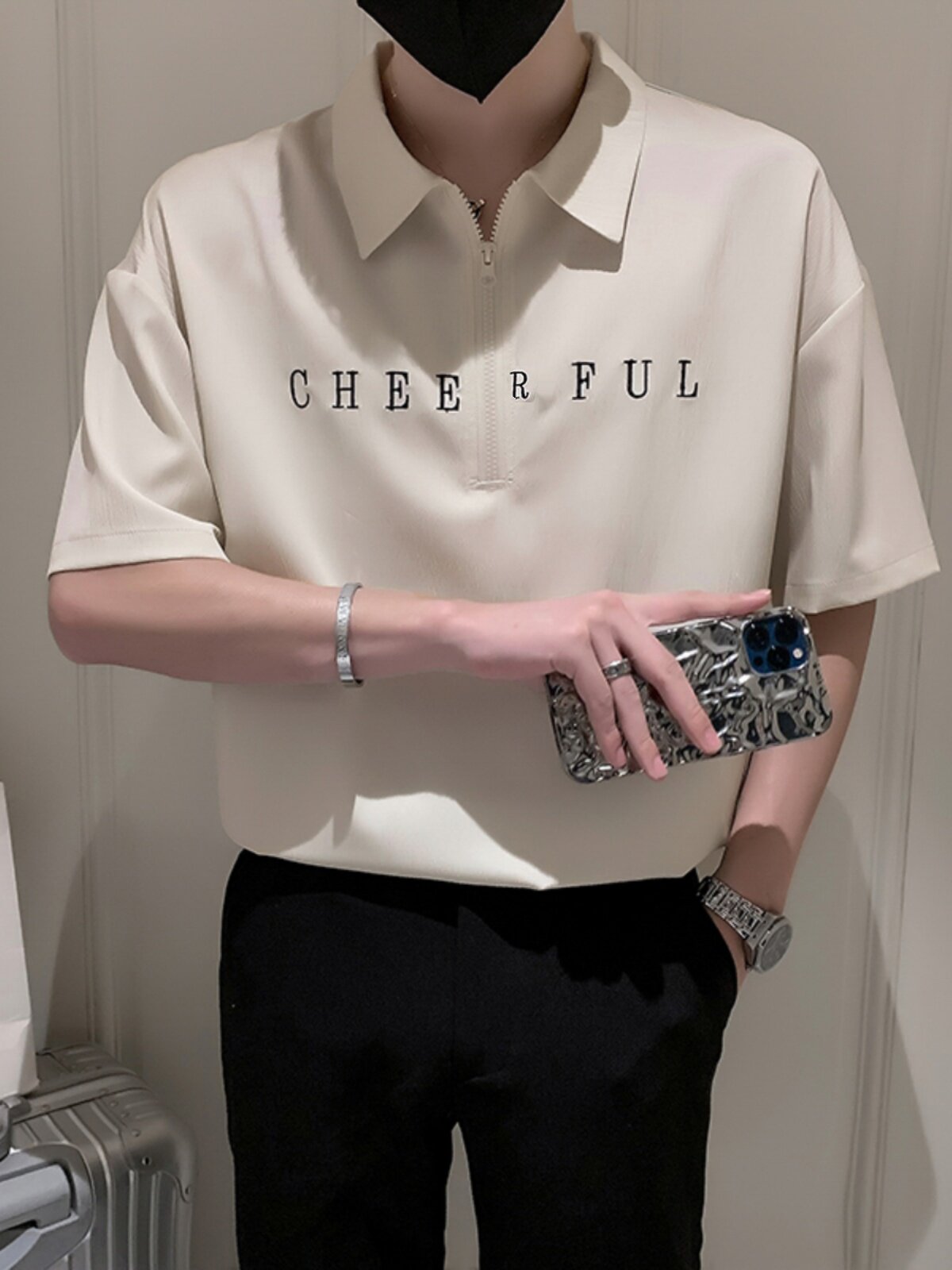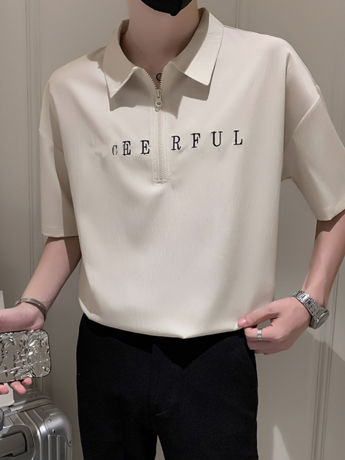 Шелковая шелковистая футболка polo с молнией, с вышивкой, на молнии