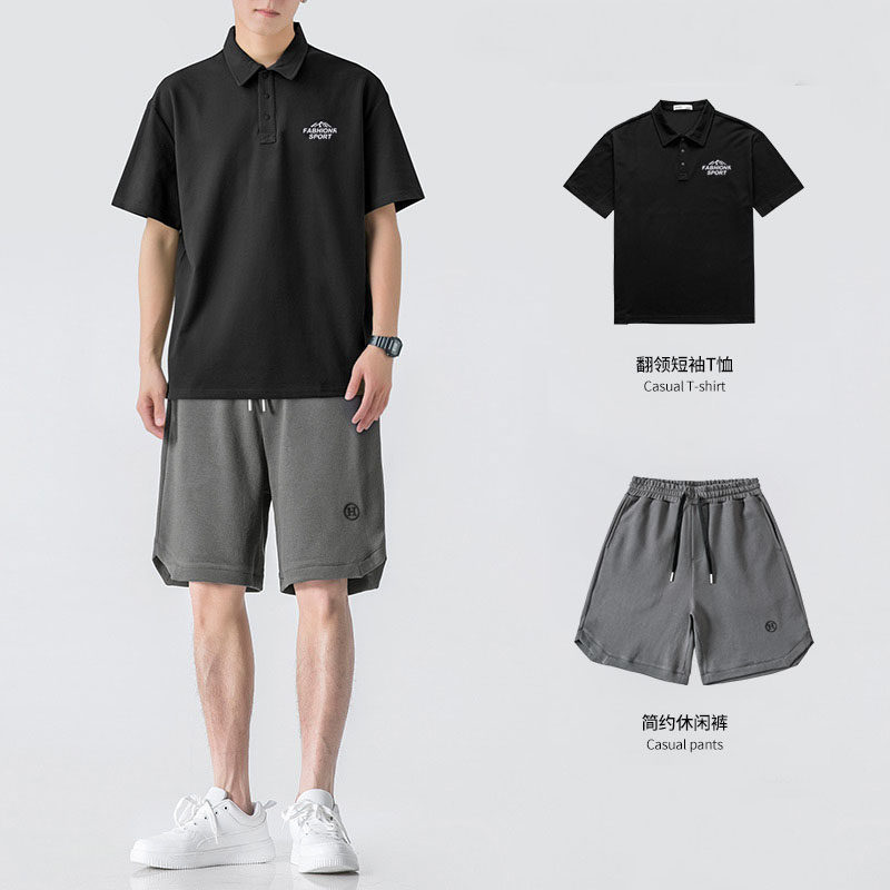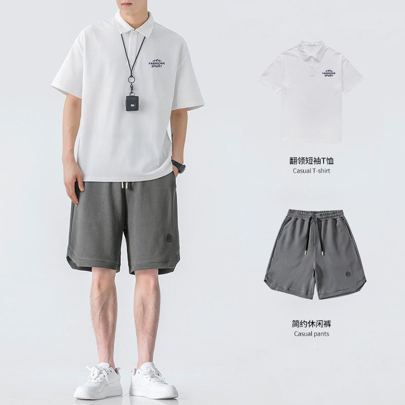 Футболка с коротким рукавом, летняя японская футболка polo, комплект, оверсайз